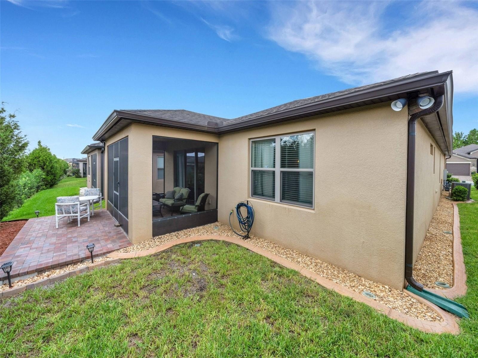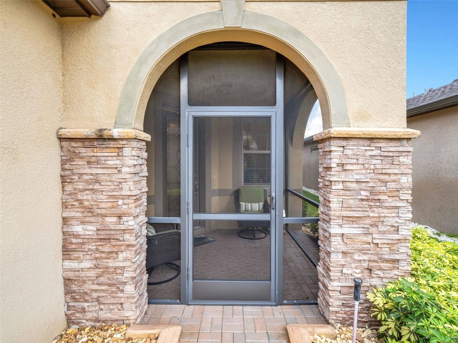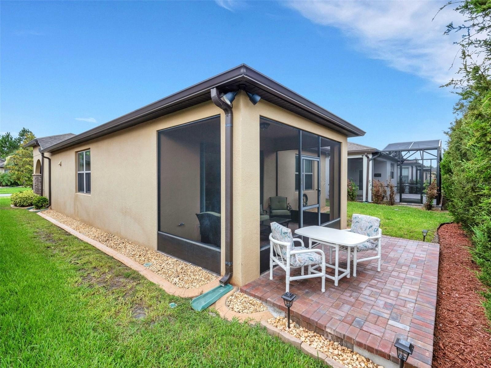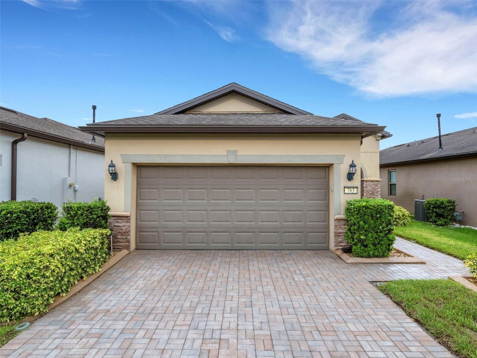 This cozy Steel Creek model located in the beautiful and desirable Del Webb Orlando 55+ community has 2 BR and 2 baths. Before entering the home notice the concrete curbing around the entire house that has been installed for ease of landscape maintenance. Stone facade, garage door keypad, the beautiful 8' leaded glass front door and rear security lights are upgrades that were installed when the home was built. The front entryway has been screened and provides a restful area to enjoy passing the time. Once inside the foyer, you can appreciate the open floorplan. Nestled in the front section of the room is a kitchen nook, which could also be used as a small office or sitting area. The solid wood cabinets are complete with granite countertops and are complimented by the stainless steel appliances, including a NATURAL GAS range. A large island provides space for that quick breakfast or for serving space for a larger meal. The great room and dining area are located off the kitchen near the back. Outside, through the triple sliding glass door is a peaceful screened lanai, complimented with a paver patio, that offers a place for morning coffee or simply relaxing. The owner’s suite is located in the rear of the home and features an on-suite with large walk-in closet, granite countertops, a linen closet and a large shower. The second bedroom and bath are located near the front of the home boasting privacy for guests. The second bathroom has been upgraded to a walk-in shower. When the power goes out, the 22K GENERAC GENERATOR kicks on and keeps the household running! The $277 monthly Del Webb HOA fee includes yard maintenance and exclusive access to resident-owned 30,000+ SF Montecito clubhouse and amenities. $425 semi-annual HOA fee provides 24x7 staffed security gate and master association-owned private road maintenance. Adjacent to recently renovated 18-hole White Heron Golf Club. DEL WEBB ORLANDO is a 55+ community with a tavern, indoor walking track, indoor and outdoor pools and spas and fitness center. Outdoor activities include tennis, bocce, basketball and pickleball. Miles of biking and walking trails within Ridgewood Lakes gated community. Located conveniently to shopping at Posner Park (4 miles), Disney World, Universal Studios, Orlando & Central FL entertainment nearby. Easy access to I-4, medical facilities, airports & Sunrail Station. Advent Health hospital is 3 miles away.
