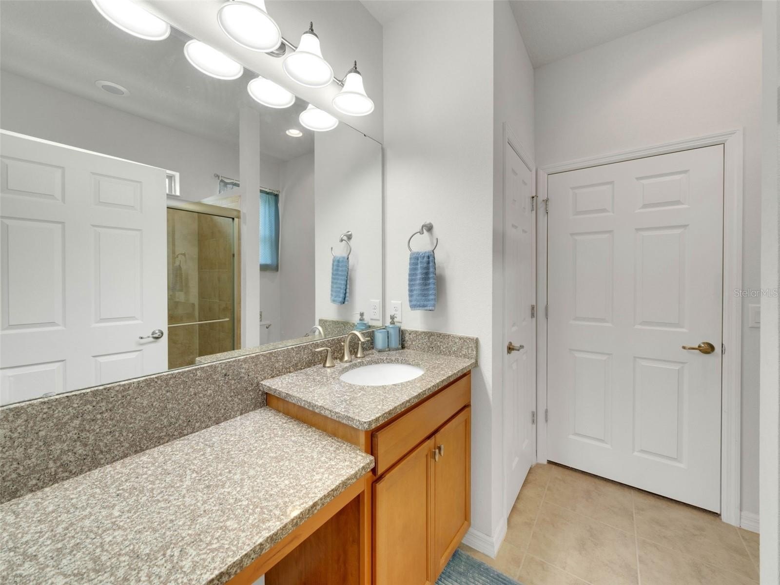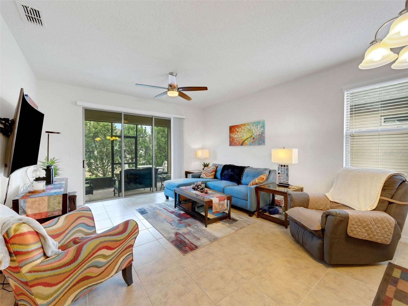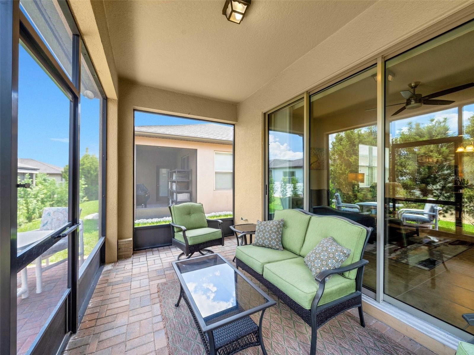 This cozy Steel Creek model located in the beautiful and desirable Del Webb Orlando 55+ community has 2 BR and 2 baths. Before entering the home notice the concrete curbing around the entire house that has been installed for ease of landscape maintenance. Stone facade, garage door keypad, the beautiful 8' leaded glass front door and rear security lights are upgrades that were installed when the home was built. The front entryway has been screened and provides a restful area to enjoy passing the time. Once inside the foyer, you can appreciate the open floorplan. Nestled in the front section of the room is a kitchen nook, which could also be used as a small office or sitting area. The solid wood cabinets are complete with granite countertops and are complimented by the stainless steel appliances, including a NATURAL GAS range. A large island provides space for that quick breakfast or for serving space for a larger meal. The great room and dining area are located off the kitchen near the back. Outside, through the triple sliding glass door is a peaceful screened lanai, complimented with a paver patio, that offers a place for morning coffee or simply relaxing. The owner’s suite is located in the rear of the home and features an on-suite with large walk-in closet, granite countertops, a linen closet and a large shower. The second bedroom and bath are located near the front of the home boasting privacy for guests. The second bathroom has been upgraded to a walk-in shower. When the power goes out, the 22K GENERAC GENERATOR kicks on and keeps the household running! The $277 monthly Del Webb HOA fee includes yard maintenance and exclusive access to resident-owned 30,000+ SF Montecito clubhouse and amenities. $425 semi-annual HOA fee provides 24x7 staffed security gate and master association-owned private road maintenance. Adjacent to recently renovated 18-hole White Heron Golf Club. DEL WEBB ORLANDO is a 55+ community with a tavern, indoor walking track, indoor and outdoor pools and spas and fitness center. Outdoor activities include tennis, bocce, basketball and pickleball. Miles of biking and walking trails within Ridgewood Lakes gated community. Located conveniently to shopping at Posner Park (4 miles), Disney World, Universal Studios, Orlando & Central FL entertainment nearby. Easy access to I-4, medical facilities, airports & Sunrail Station. Advent Health hospital is 3 miles away.