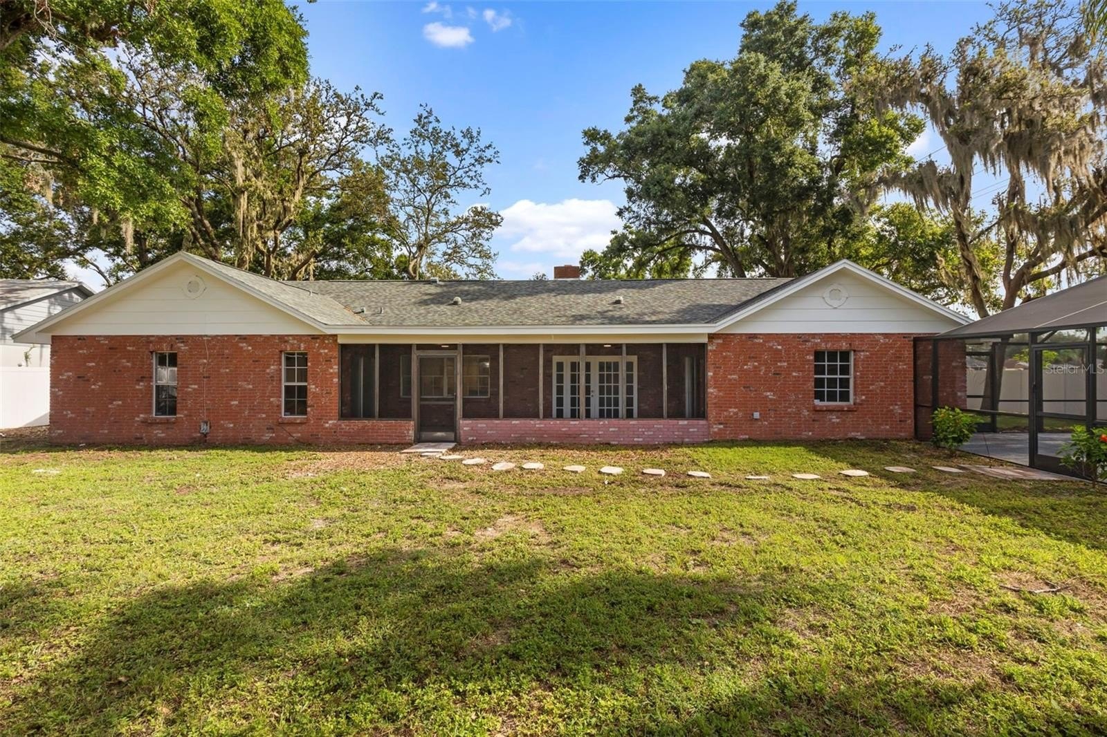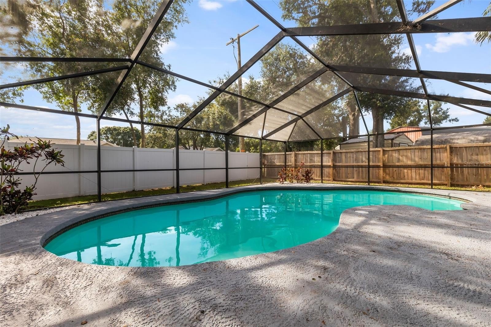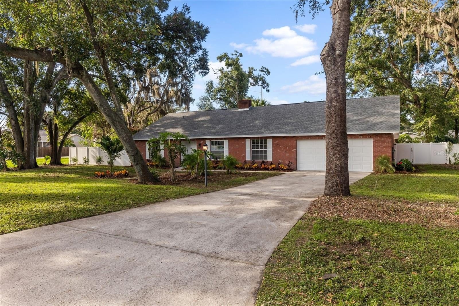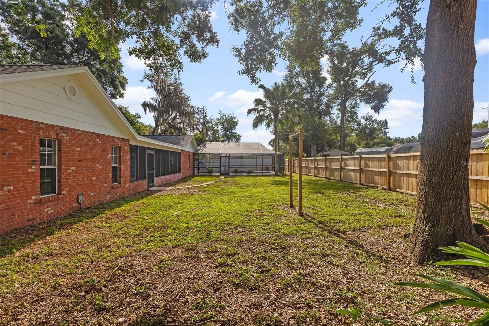 One or more photo(s) has been virtually staged. SELLER WILL PAY $6,000 TOWARDS BUYER'S CLOSING COSTS. Shaded by majestic oak trees and framed by a charming red brick exterior, this beautifully updated 4-bedroom, 2-bathroom, 2-car garage pool home in Parkwood Manor is the perfect blend of comfort, functionality, and modern style. A new roof, fresh landscaping, elegant vinyl fencing, and outdoor lighting enhance the curb appeal, setting the stage for what lies inside. As you approach the covered entryway, double front doors welcome you into a bright and inviting interior. Step into the formal dining room and first living area, where luxury vinyl flooring spans the main living spaces, complemented by fresh interior paint and upgraded 2-inch baseboards that add a refined touch throughout. Adjacent to the dining room, the renovated kitchen impresses with crisp white shaker soft-close cabinetry, quartz countertops, new stainless steel appliances, recessed lighting, and a charming eat-in breakfast space. A pantry closet offers ample storage, while a nearby laundry room provides convenient garage access. Privately positioned on one side of the home, the primary suite offers a peaceful retreat. Enjoy dual walk-in closets, modern lighting, and glass sliding doors that open directly to the screened-in outdoor living area. The ensuite bathroom has been thoughtfully upgraded with a dual sink vanity topped with quartz, a stylish new mirror, recessed lighting, and an expansive walk-in tile shower complete with dual shampoo niches and a built-in bench—combining spaciousness with spa-like comfort and sophistication. At the heart of the home, the family room boasts soaring cathedral ceilings with rustic wood beams, skylights, a cozy brick wood-burning fireplace, custom built-in shelving with quartz countertops, and French doors that lead to the showstopping outdoor space. On the opposite side of the home, a split-bedroom layout offers three generously sized guest bedrooms. The third bedroom features private outdoor access, ideal for guests or multigenerational living. This side of the home also features abundant storage closet space, providing convenience and organization. The second full bathroom has been tastefully renovated with a dual sink vanity, quartz countertops, updated tilework, and recessed lighting, serving the secondary bedrooms with both style and practicality. Step outside through the French doors and into your expansive screened-in patio—a versatile space perfect for entertaining or relaxing in the shade. Beyond, a paved walkway leads to your oversized backyard oasis, complete with lush mature trees and a screen-enclosed pool featuring newly installed screens and room to personalize your dream outdoor lifestyle. No HOA/CDD. Notable upgrades include: new HVAC (2025), new roof, vinyl fencing, fresh interior/exterior paint, new appliances, new lighting fixtures, updated bathrooms, and energy-efficient features throughout. Located just minutes from I-75, this home offers easy access to local nature escapes including Lithia Springs Park (13 minutes) and Alafia River State Park (22 minutes), along with an abundance of nearby shopping, dining, and recreation options. This Parkwood Manor gem offers modern updates, thoughtful design, and the perfect layout for comfortable Florida living—inside and out. For a virtual tour, click the provided link and experience the beauty of this remarkable property.