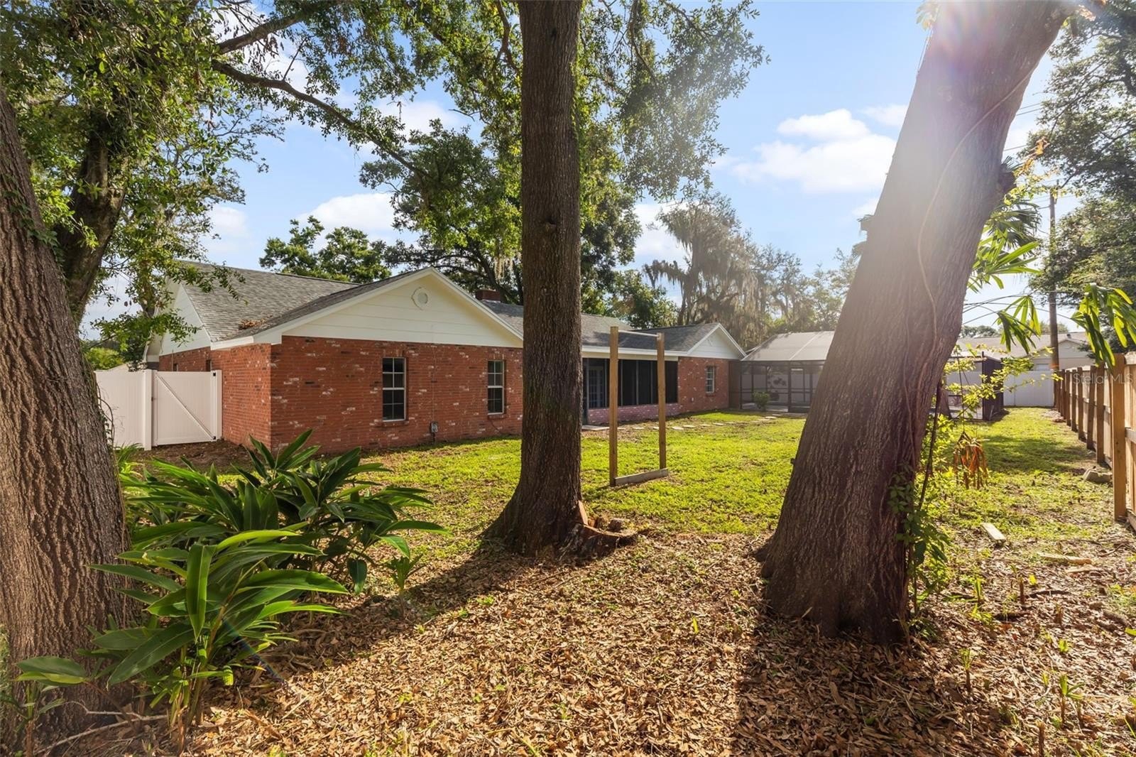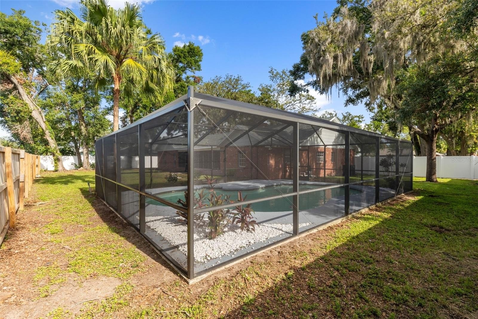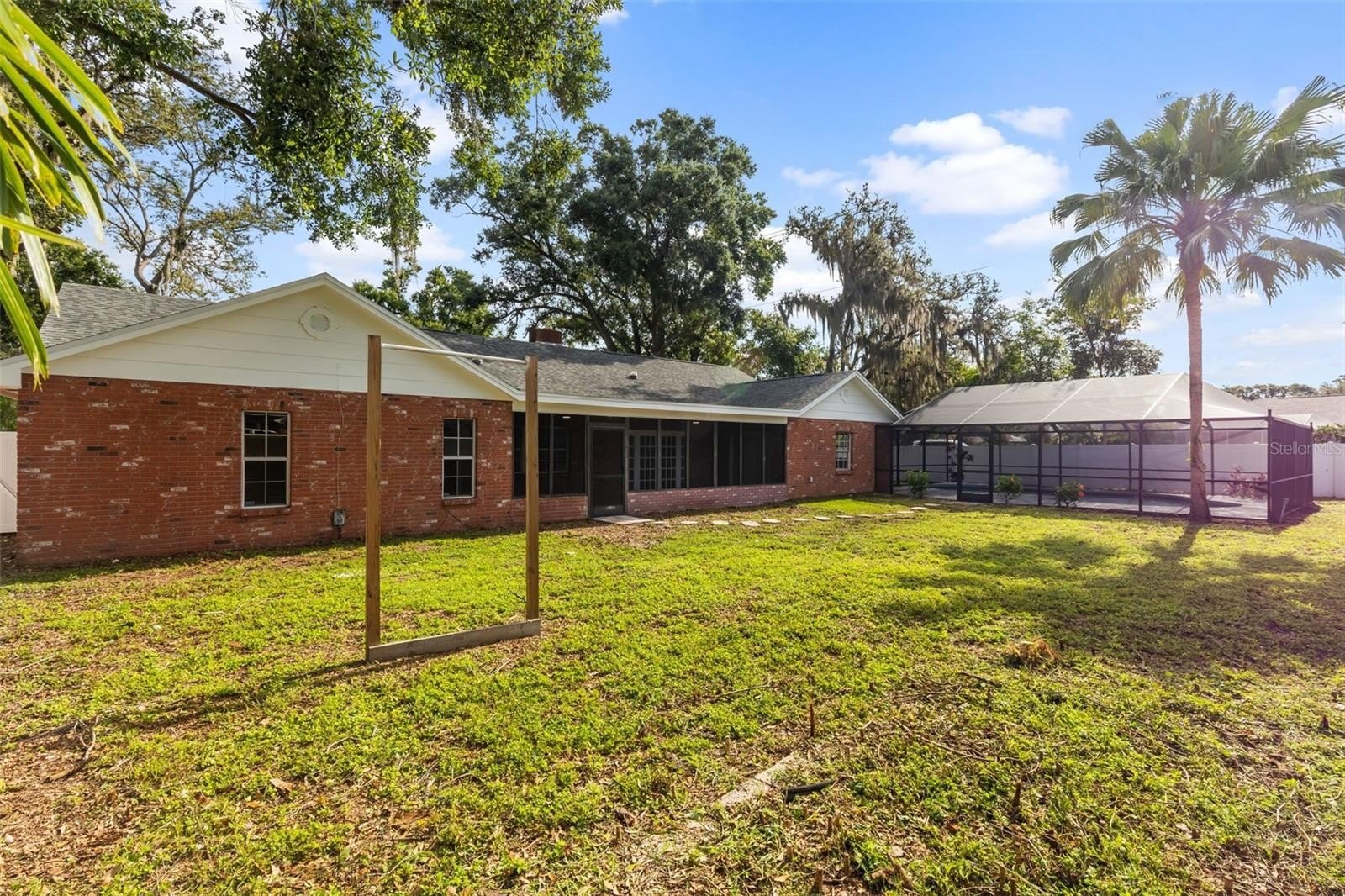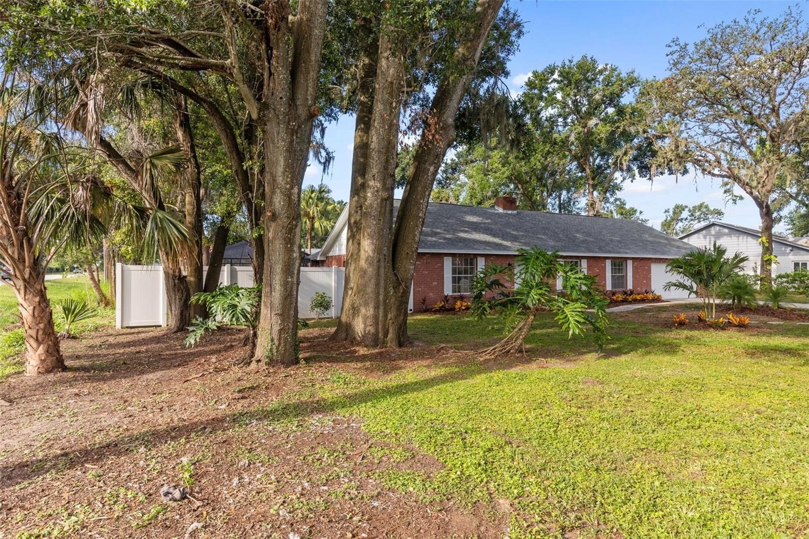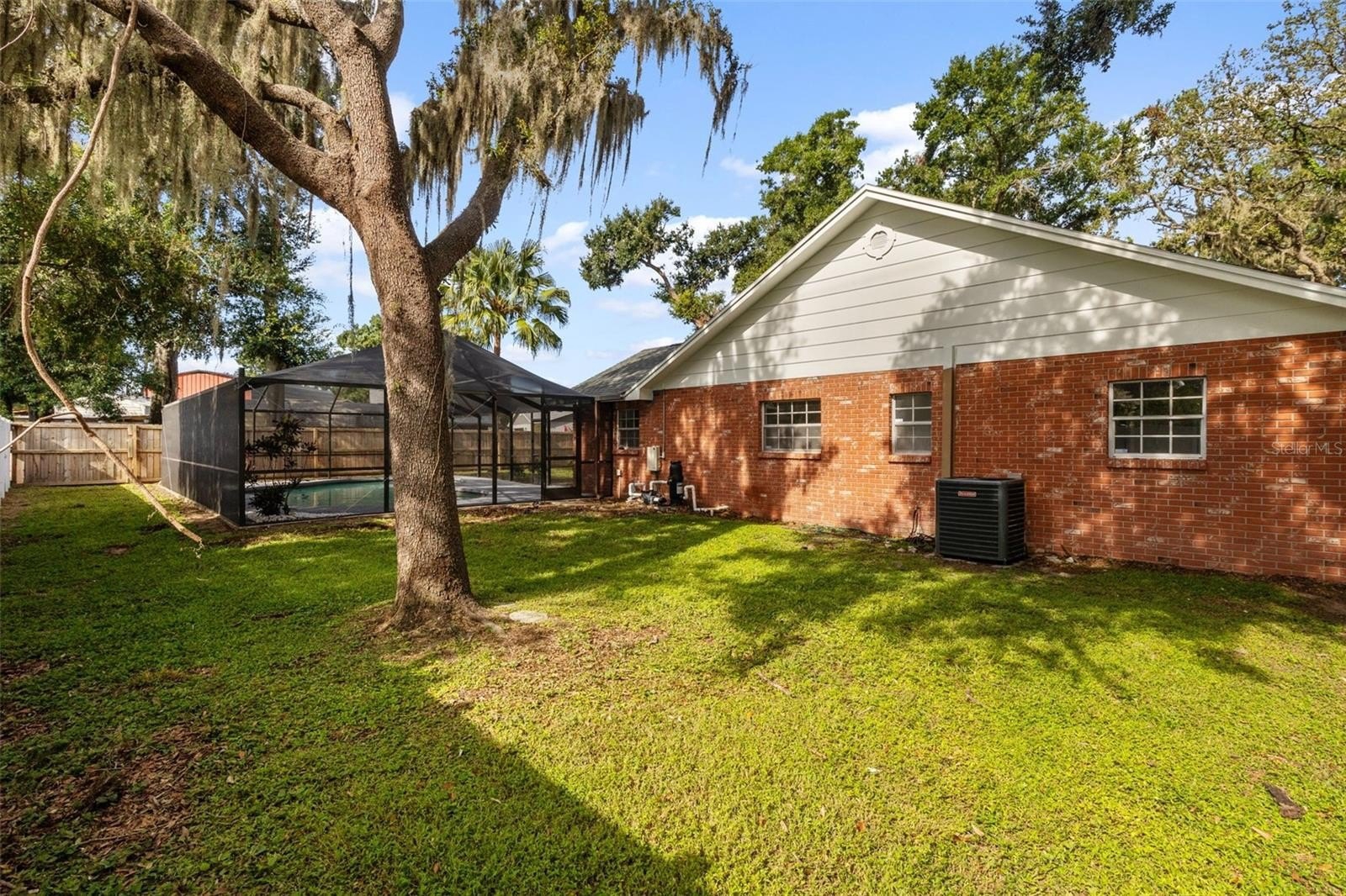 One or more photo(s) has been virtually staged. SELLER WILL PAY $6,000 TOWARDS BUYER'S CLOSING COSTS. Shaded by majestic oak trees and framed by a charming red brick exterior, this beautifully updated 4-bedroom, 2-bathroom, 2-car garage pool home in Parkwood Manor is the perfect blend of comfort, functionality, and modern style. A new roof, fresh landscaping, elegant vinyl fencing, and outdoor lighting enhance the curb appeal, setting the stage for what lies inside. As you approach the covered entryway, double front doors welcome you into a bright and inviting interior. Step into the formal dining room and first living area, where luxury vinyl flooring spans the main living spaces, complemented by fresh interior paint and upgraded 2-inch baseboards that add a refined touch throughout. Adjacent to the dining room, the renovated kitchen impresses with crisp white shaker soft-close cabinetry, quartz countertops, new stainless steel appliances, recessed lighting, and a charming eat-in breakfast space. A pantry closet offers ample storage, while a nearby laundry room provides convenient garage access. Privately positioned on one side of the home, the primary suite offers a peaceful retreat. Enjoy dual walk-in closets, modern lighting, and glass sliding doors that open directly to the screened-in outdoor living area. The ensuite bathroom has been thoughtfully upgraded with a dual sink vanity topped with quartz, a stylish new mirror, recessed lighting, and an expansive walk-in tile shower complete with dual shampoo niches and a built-in bench—combining spaciousness with spa-like comfort and sophistication. At the heart of the home, the family room boasts soaring cathedral ceilings with rustic wood beams, skylights, a cozy brick wood-burning fireplace, custom built-in shelving with quartz countertops, and French doors that lead to the showstopping outdoor space. On the opposite side of the home, a split-bedroom layout offers three generously sized guest bedrooms. The third bedroom features private outdoor access, ideal for guests or multigenerational living. This side of the home also features abundant storage closet space, providing convenience and organization. The second full bathroom has been tastefully renovated with a dual sink vanity, quartz countertops, updated tilework, and recessed lighting, serving the secondary bedrooms with both style and practicality. Step outside through the French doors and into your expansive screened-in patio—a versatile space perfect for entertaining or relaxing in the shade. Beyond, a paved walkway leads to your oversized backyard oasis, complete with lush mature trees and a screen-enclosed pool featuring newly installed screens and room to personalize your dream outdoor lifestyle. No HOA/CDD. Notable upgrades include: new HVAC (2025), new roof, vinyl fencing, fresh interior/exterior paint, new appliances, new lighting fixtures, updated bathrooms, and energy-efficient features throughout. Located just minutes from I-75, this home offers easy access to local nature escapes including Lithia Springs Park (13 minutes) and Alafia River State Park (22 minutes), along with an abundance of nearby shopping, dining, and recreation options. This Parkwood Manor gem offers modern updates, thoughtful design, and the perfect layout for comfortable Florida living—inside and out. For a virtual tour, click the provided link and experience the beauty of this remarkable property.