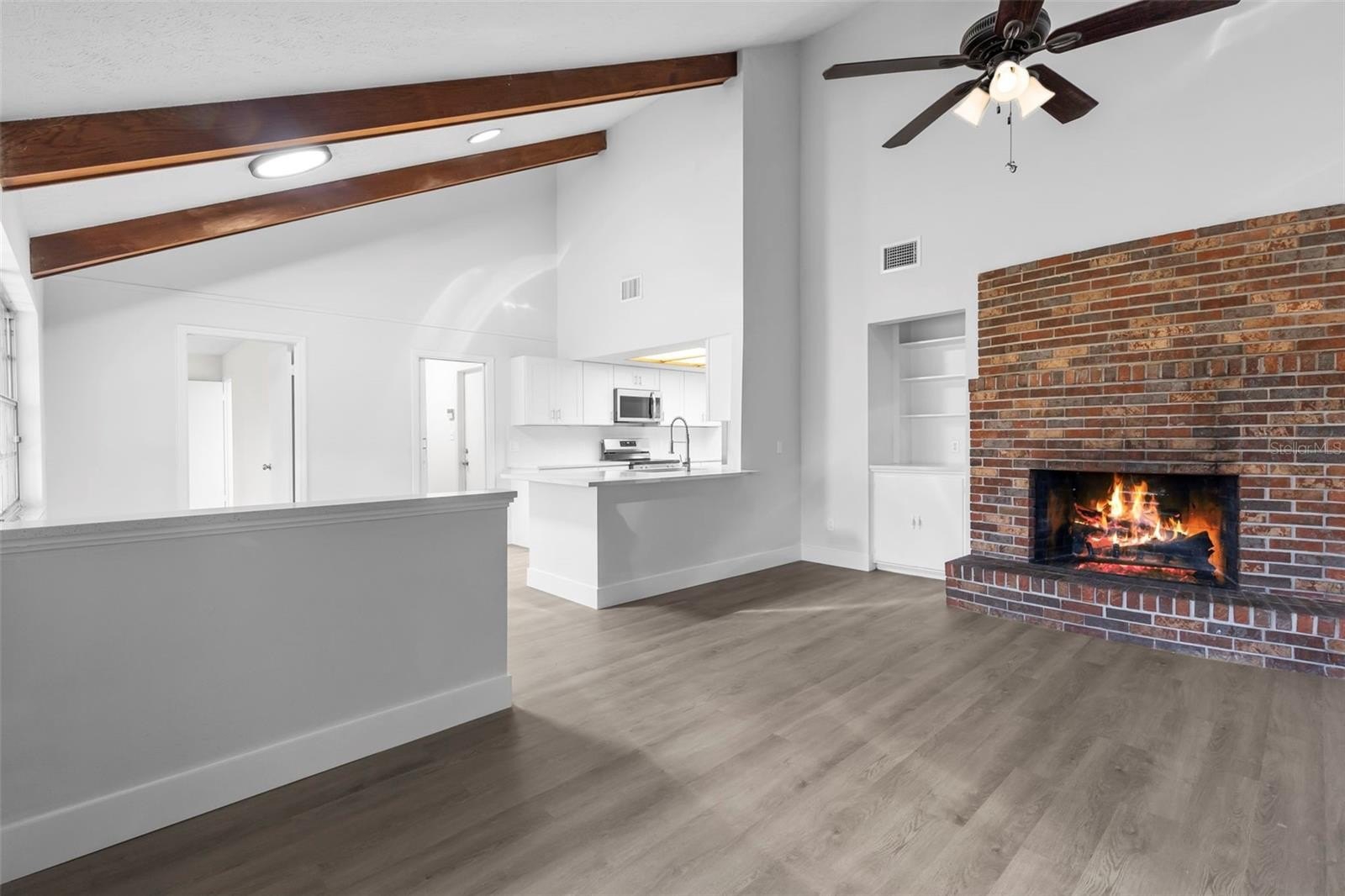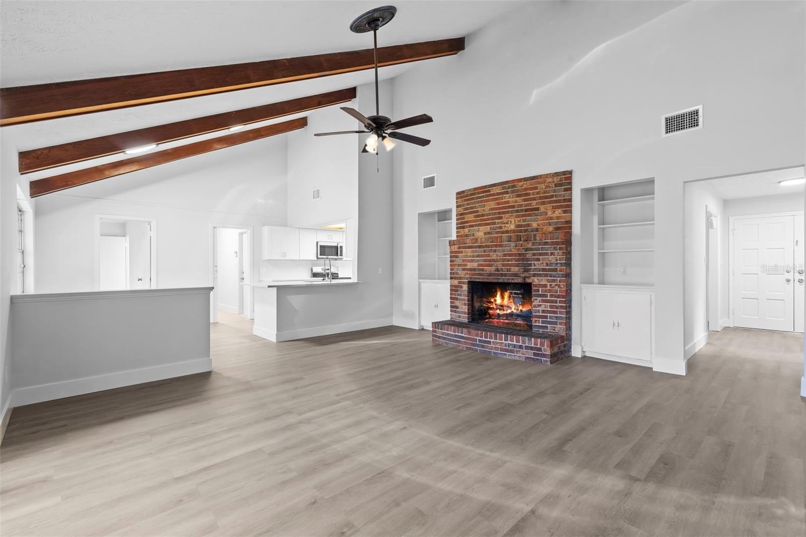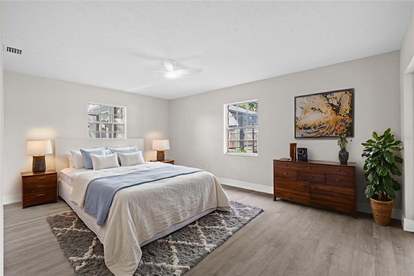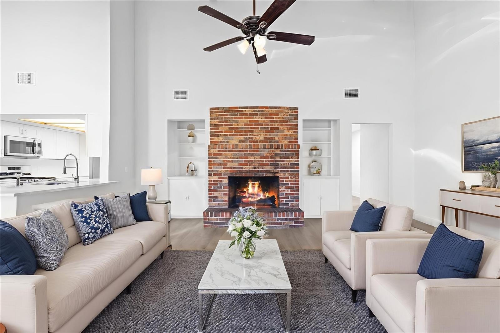 One or more photo(s) has been virtually staged. SELLER WILL PAY $6,000 TOWARDS BUYER'S CLOSING COSTS. Shaded by majestic oak trees and framed by a charming red brick exterior, this beautifully updated 4-bedroom, 2-bathroom, 2-car garage pool home in Parkwood Manor is the perfect blend of comfort, functionality, and modern style. A new roof, fresh landscaping, elegant vinyl fencing, and outdoor lighting enhance the curb appeal, setting the stage for what lies inside. As you approach the covered entryway, double front doors welcome you into a bright and inviting interior. Step into the formal dining room and first living area, where luxury vinyl flooring spans the main living spaces, complemented by fresh interior paint and upgraded 2-inch baseboards that add a refined touch throughout. Adjacent to the dining room, the renovated kitchen impresses with crisp white shaker soft-close cabinetry, quartz countertops, new stainless steel appliances, recessed lighting, and a charming eat-in breakfast space. A pantry closet offers ample storage, while a nearby laundry room provides convenient garage access. Privately positioned on one side of the home, the primary suite offers a peaceful retreat. Enjoy dual walk-in closets, modern lighting, and glass sliding doors that open directly to the screened-in outdoor living area. The ensuite bathroom has been thoughtfully upgraded with a dual sink vanity topped with quartz, a stylish new mirror, recessed lighting, and an expansive walk-in tile shower complete with dual shampoo niches and a built-in bench—combining spaciousness with spa-like comfort and sophistication. At the heart of the home, the family room boasts soaring cathedral ceilings with rustic wood beams, skylights, a cozy brick wood-burning fireplace, custom built-in shelving with quartz countertops, and French doors that lead to the showstopping outdoor space. On the opposite side of the home, a split-bedroom layout offers three generously sized guest bedrooms. The third bedroom features private outdoor access, ideal for guests or multigenerational living. This side of the home also features abundant storage closet space, providing convenience and organization. The second full bathroom has been tastefully renovated with a dual sink vanity, quartz countertops, updated tilework, and recessed lighting, serving the secondary bedrooms with both style and practicality. Step outside through the French doors and into your expansive screened-in patio—a versatile space perfect for entertaining or relaxing in the shade. Beyond, a paved walkway leads to your oversized backyard oasis, complete with lush mature trees and a screen-enclosed pool featuring newly installed screens and room to personalize your dream outdoor lifestyle. No HOA/CDD. Notable upgrades include: new HVAC (2025), new roof, vinyl fencing, fresh interior/exterior paint, new appliances, new lighting fixtures, updated bathrooms, and energy-efficient features throughout. Located just minutes from I-75, this home offers easy access to local nature escapes including Lithia Springs Park (13 minutes) and Alafia River State Park (22 minutes), along with an abundance of nearby shopping, dining, and recreation options. This Parkwood Manor gem offers modern updates, thoughtful design, and the perfect layout for comfortable Florida living—inside and out. For a virtual tour, click the provided link and experience the beauty of this remarkable property.