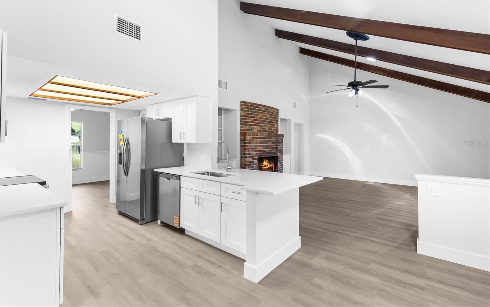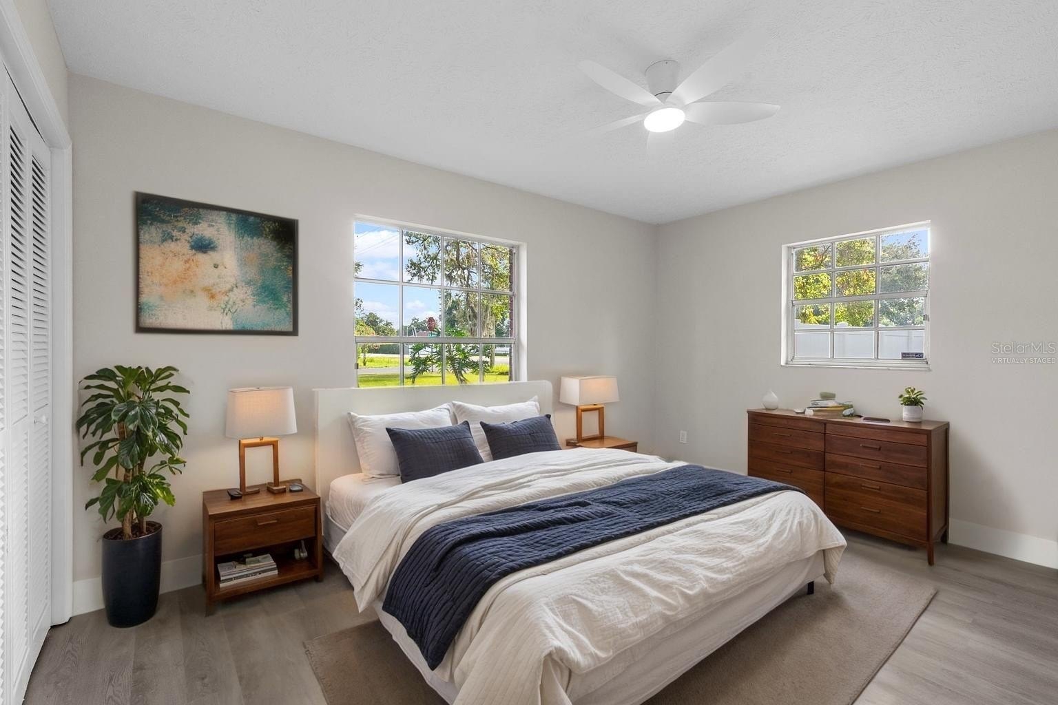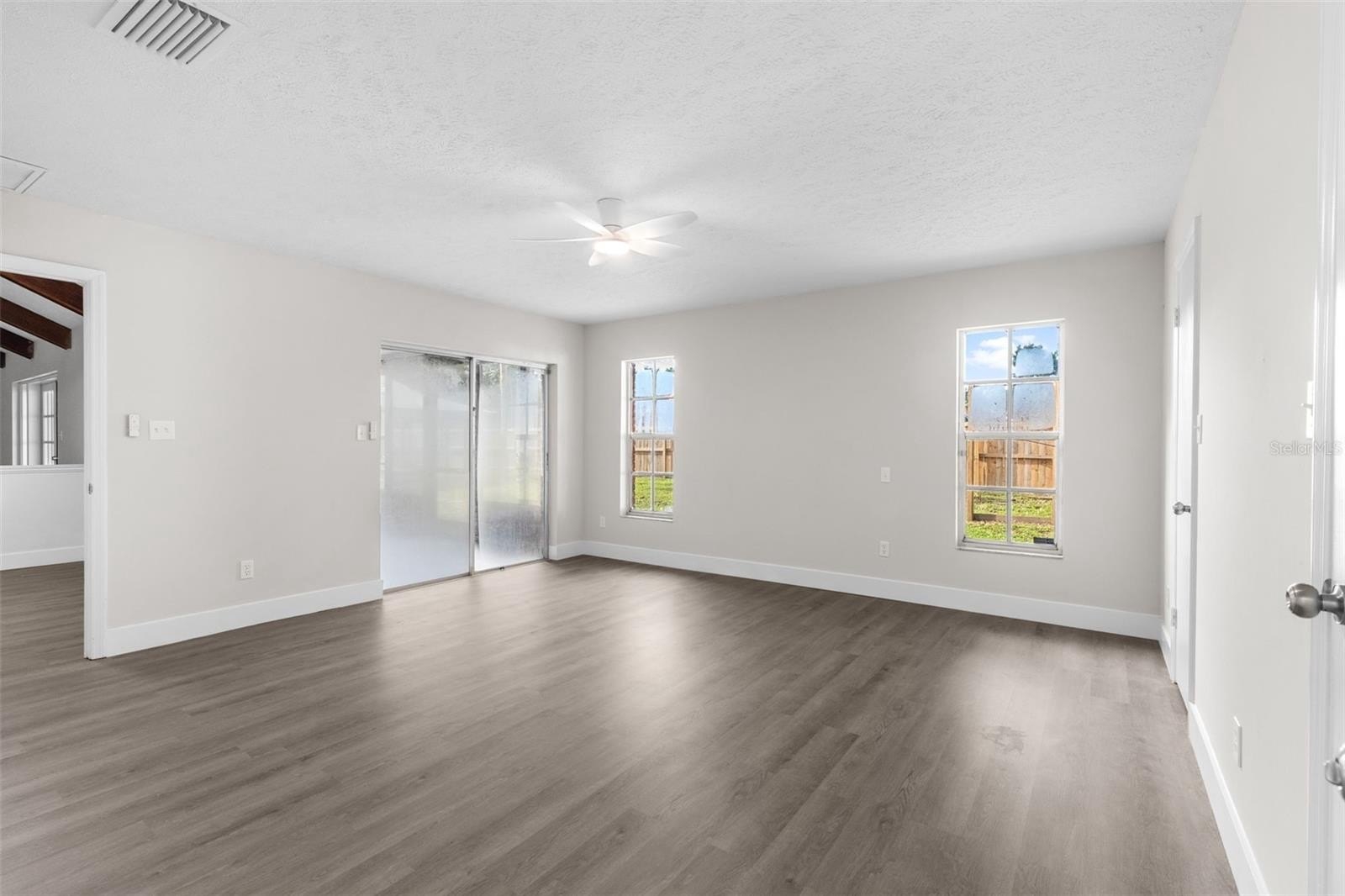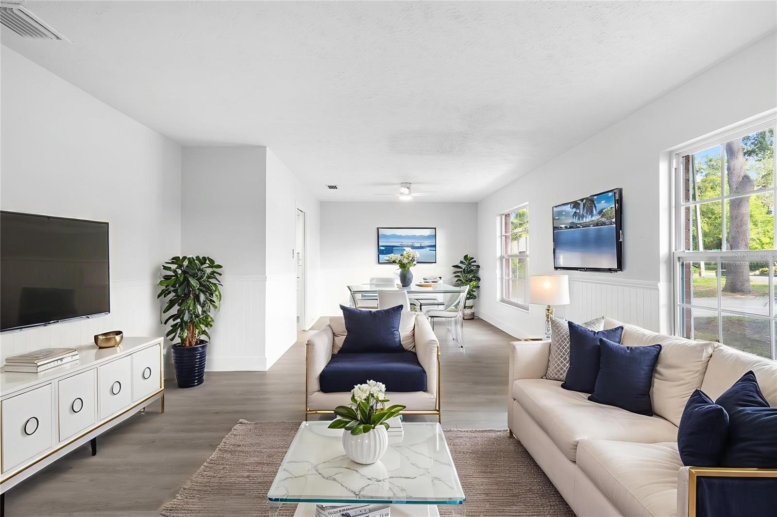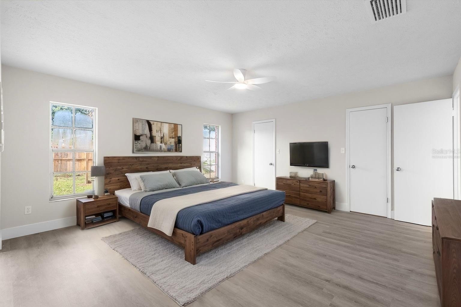 One or more photo(s) has been virtually staged. SELLER WILL PAY $6,000 TOWARDS BUYER'S CLOSING COSTS. Shaded by majestic oak trees and framed by a charming red brick exterior, this beautifully updated 4-bedroom, 2-bathroom, 2-car garage pool home in Parkwood Manor is the perfect blend of comfort, functionality, and modern style. A new roof, fresh landscaping, elegant vinyl fencing, and outdoor lighting enhance the curb appeal, setting the stage for what lies inside. As you approach the covered entryway, double front doors welcome you into a bright and inviting interior. Step into the formal dining room and first living area, where luxury vinyl flooring spans the main living spaces, complemented by fresh interior paint and upgraded 2-inch baseboards that add a refined touch throughout. Adjacent to the dining room, the renovated kitchen impresses with crisp white shaker soft-close cabinetry, quartz countertops, new stainless steel appliances, recessed lighting, and a charming eat-in breakfast space. A pantry closet offers ample storage, while a nearby laundry room provides convenient garage access. Privately positioned on one side of the home, the primary suite offers a peaceful retreat. Enjoy dual walk-in closets, modern lighting, and glass sliding doors that open directly to the screened-in outdoor living area. The ensuite bathroom has been thoughtfully upgraded with a dual sink vanity topped with quartz, a stylish new mirror, recessed lighting, and an expansive walk-in tile shower complete with dual shampoo niches and a built-in bench—combining spaciousness with spa-like comfort and sophistication. At the heart of the home, the family room boasts soaring cathedral ceilings with rustic wood beams, skylights, a cozy brick wood-burning fireplace, custom built-in shelving with quartz countertops, and French doors that lead to the showstopping outdoor space. On the opposite side of the home, a split-bedroom layout offers three generously sized guest bedrooms. The third bedroom features private outdoor access, ideal for guests or multigenerational living. This side of the home also features abundant storage closet space, providing convenience and organization. The second full bathroom has been tastefully renovated with a dual sink vanity, quartz countertops, updated tilework, and recessed lighting, serving the secondary bedrooms with both style and practicality. Step outside through the French doors and into your expansive screened-in patio—a versatile space perfect for entertaining or relaxing in the shade. Beyond, a paved walkway leads to your oversized backyard oasis, complete with lush mature trees and a screen-enclosed pool featuring newly installed screens and room to personalize your dream outdoor lifestyle. No HOA/CDD. Notable upgrades include: new HVAC (2025), new roof, vinyl fencing, fresh interior/exterior paint, new appliances, new lighting fixtures, updated bathrooms, and energy-efficient features throughout. Located just minutes from I-75, this home offers easy access to local nature escapes including Lithia Springs Park (13 minutes) and Alafia River State Park (22 minutes), along with an abundance of nearby shopping, dining, and recreation options. This Parkwood Manor gem offers modern updates, thoughtful design, and the perfect layout for comfortable Florida living—inside and out. For a virtual tour, click the provided link and experience the beauty of this remarkable property.