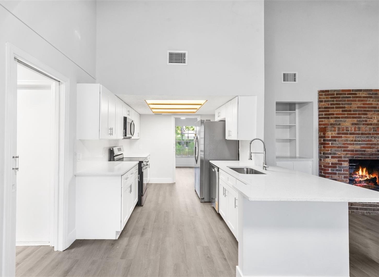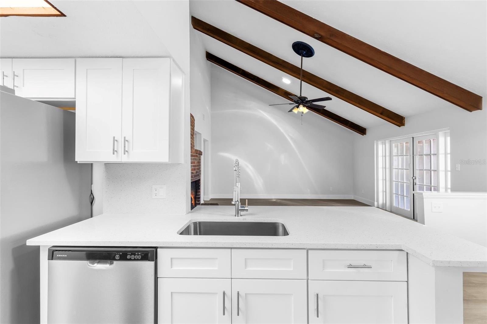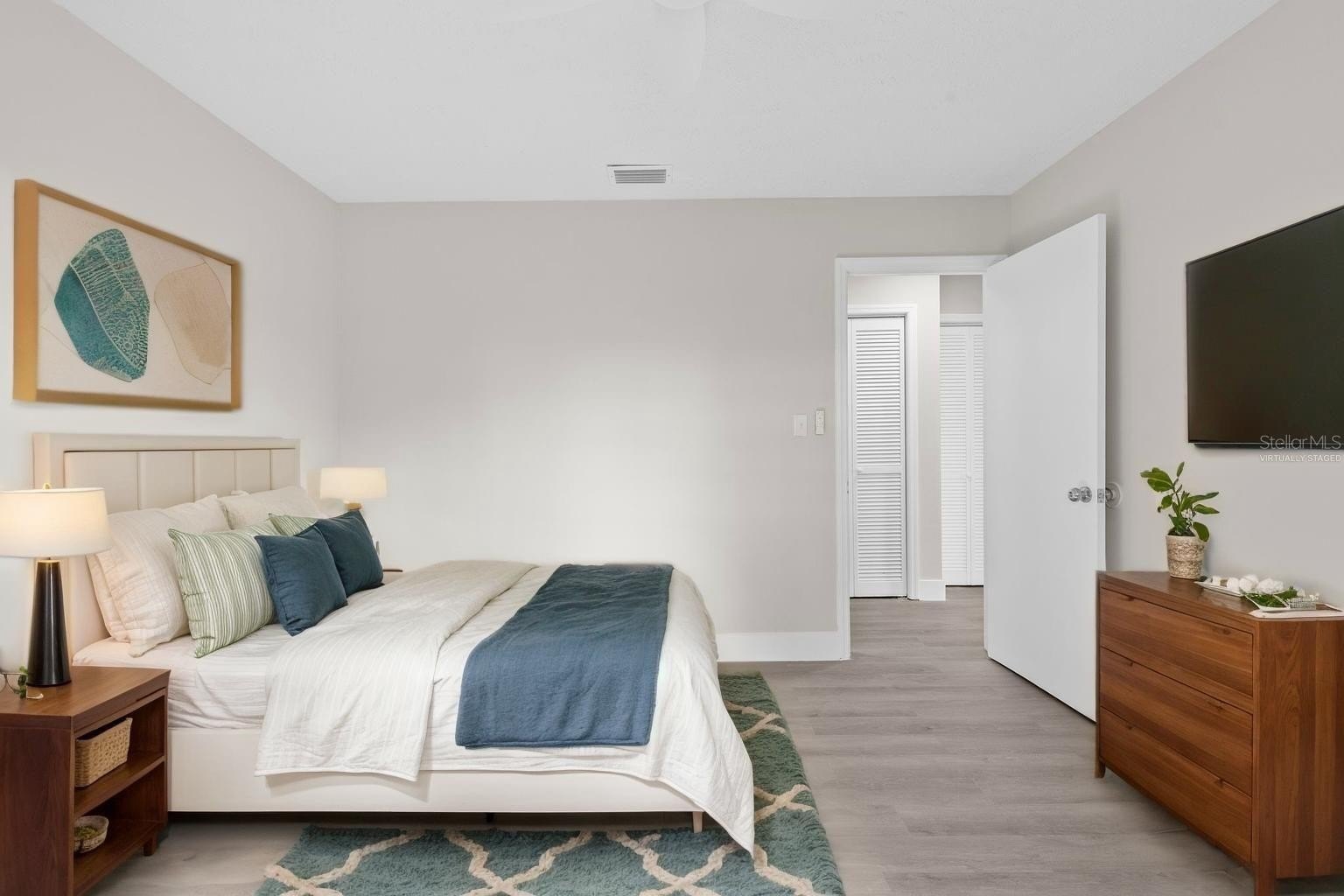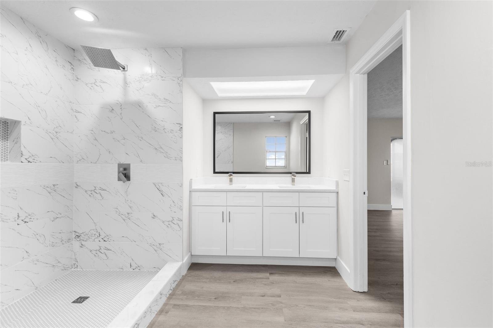 One or more photo(s) has been virtually staged. SELLER WILL PAY $6,000 TOWARDS BUYER'S CLOSING COSTS. Shaded by majestic oak trees and framed by a charming red brick exterior, this beautifully updated 4-bedroom, 2-bathroom, 2-car garage pool home in Parkwood Manor is the perfect blend of comfort, functionality, and modern style. A new roof, fresh landscaping, elegant vinyl fencing, and outdoor lighting enhance the curb appeal, setting the stage for what lies inside. As you approach the covered entryway, double front doors welcome you into a bright and inviting interior. Step into the formal dining room and first living area, where luxury vinyl flooring spans the main living spaces, complemented by fresh interior paint and upgraded 2-inch baseboards that add a refined touch throughout. Adjacent to the dining room, the renovated kitchen impresses with crisp white shaker soft-close cabinetry, quartz countertops, new stainless steel appliances, recessed lighting, and a charming eat-in breakfast space. A pantry closet offers ample storage, while a nearby laundry room provides convenient garage access. Privately positioned on one side of the home, the primary suite offers a peaceful retreat. Enjoy dual walk-in closets, modern lighting, and glass sliding doors that open directly to the screened-in outdoor living area. The ensuite bathroom has been thoughtfully upgraded with a dual sink vanity topped with quartz, a stylish new mirror, recessed lighting, and an expansive walk-in tile shower complete with dual shampoo niches and a built-in bench—combining spaciousness with spa-like comfort and sophistication. At the heart of the home, the family room boasts soaring cathedral ceilings with rustic wood beams, skylights, a cozy brick wood-burning fireplace, custom built-in shelving with quartz countertops, and French doors that lead to the showstopping outdoor space. On the opposite side of the home, a split-bedroom layout offers three generously sized guest bedrooms. The third bedroom features private outdoor access, ideal for guests or multigenerational living. This side of the home also features abundant storage closet space, providing convenience and organization. The second full bathroom has been tastefully renovated with a dual sink vanity, quartz countertops, updated tilework, and recessed lighting, serving the secondary bedrooms with both style and practicality. Step outside through the French doors and into your expansive screened-in patio—a versatile space perfect for entertaining or relaxing in the shade. Beyond, a paved walkway leads to your oversized backyard oasis, complete with lush mature trees and a screen-enclosed pool featuring newly installed screens and room to personalize your dream outdoor lifestyle. No HOA/CDD. Notable upgrades include: new HVAC (2025), new roof, vinyl fencing, fresh interior/exterior paint, new appliances, new lighting fixtures, updated bathrooms, and energy-efficient features throughout. Located just minutes from I-75, this home offers easy access to local nature escapes including Lithia Springs Park (13 minutes) and Alafia River State Park (22 minutes), along with an abundance of nearby shopping, dining, and recreation options. This Parkwood Manor gem offers modern updates, thoughtful design, and the perfect layout for comfortable Florida living—inside and out. For a virtual tour, click the provided link and experience the beauty of this remarkable property.