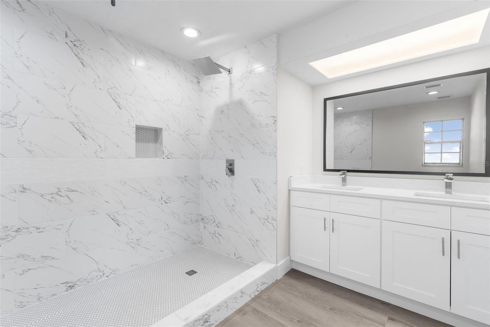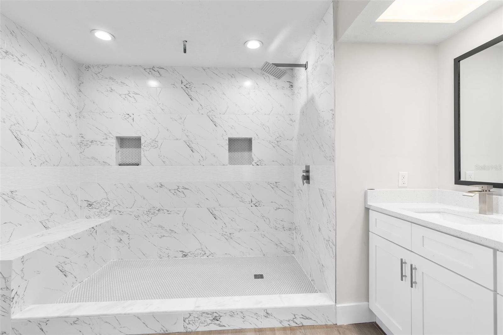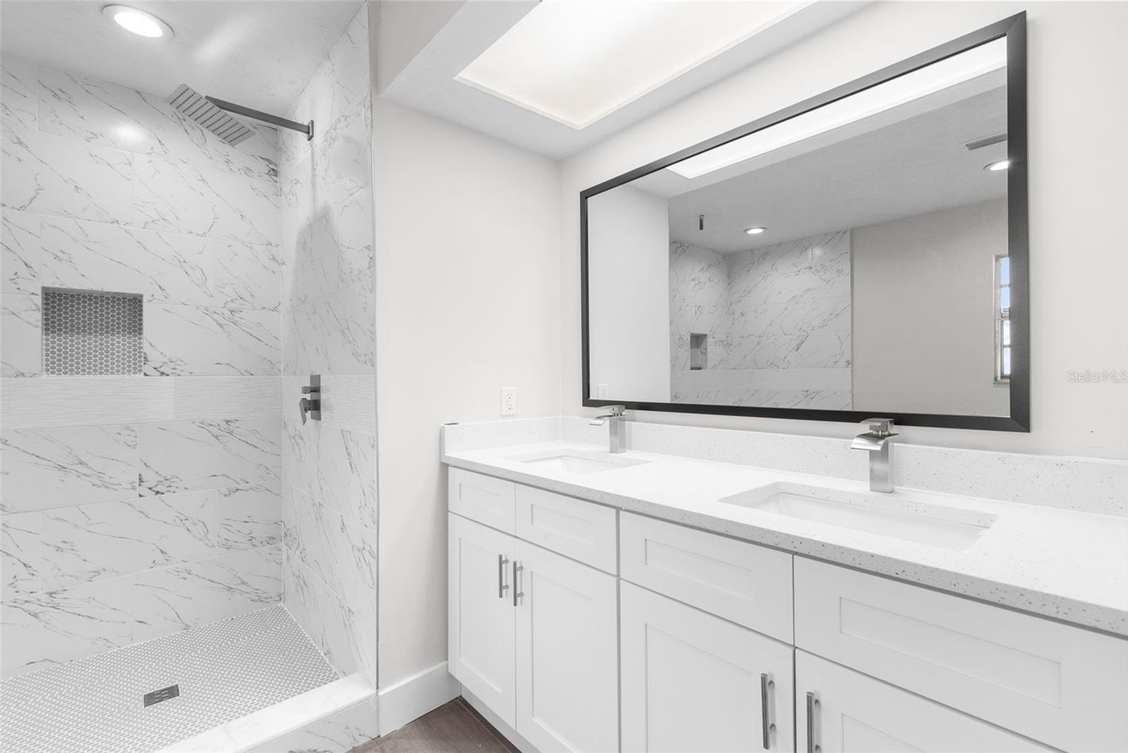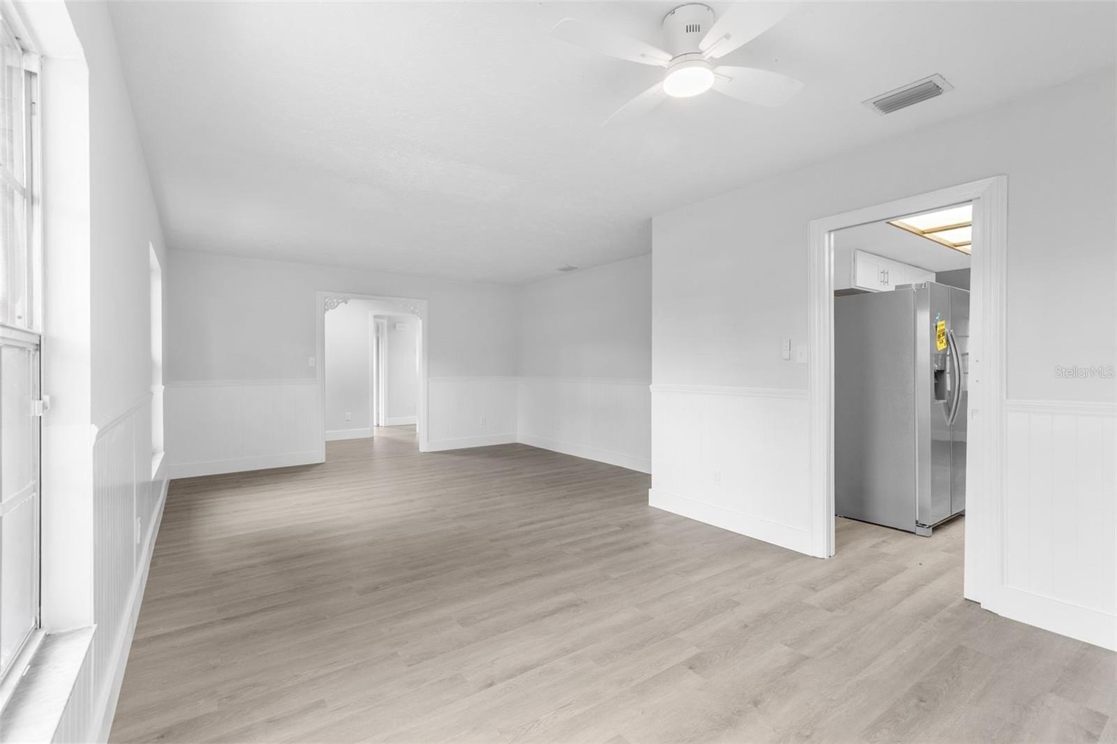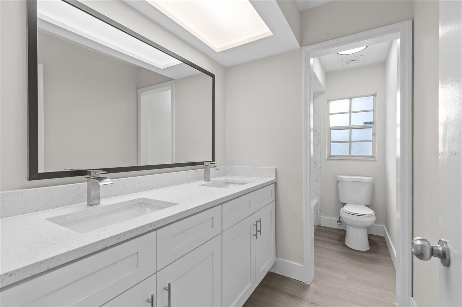 One or more photo(s) has been virtually staged. SELLER WILL PAY $6,000 TOWARDS BUYER'S CLOSING COSTS. Shaded by majestic oak trees and framed by a charming red brick exterior, this beautifully updated 4-bedroom, 2-bathroom, 2-car garage pool home in Parkwood Manor is the perfect blend of comfort, functionality, and modern style. A new roof, fresh landscaping, elegant vinyl fencing, and outdoor lighting enhance the curb appeal, setting the stage for what lies inside. As you approach the covered entryway, double front doors welcome you into a bright and inviting interior. Step into the formal dining room and first living area, where luxury vinyl flooring spans the main living spaces, complemented by fresh interior paint and upgraded 2-inch baseboards that add a refined touch throughout. Adjacent to the dining room, the renovated kitchen impresses with crisp white shaker soft-close cabinetry, quartz countertops, new stainless steel appliances, recessed lighting, and a charming eat-in breakfast space. A pantry closet offers ample storage, while a nearby laundry room provides convenient garage access. Privately positioned on one side of the home, the primary suite offers a peaceful retreat. Enjoy dual walk-in closets, modern lighting, and glass sliding doors that open directly to the screened-in outdoor living area. The ensuite bathroom has been thoughtfully upgraded with a dual sink vanity topped with quartz, a stylish new mirror, recessed lighting, and an expansive walk-in tile shower complete with dual shampoo niches and a built-in bench—combining spaciousness with spa-like comfort and sophistication. At the heart of the home, the family room boasts soaring cathedral ceilings with rustic wood beams, skylights, a cozy brick wood-burning fireplace, custom built-in shelving with quartz countertops, and French doors that lead to the showstopping outdoor space. On the opposite side of the home, a split-bedroom layout offers three generously sized guest bedrooms. The third bedroom features private outdoor access, ideal for guests or multigenerational living. This side of the home also features abundant storage closet space, providing convenience and organization. The second full bathroom has been tastefully renovated with a dual sink vanity, quartz countertops, updated tilework, and recessed lighting, serving the secondary bedrooms with both style and practicality. Step outside through the French doors and into your expansive screened-in patio—a versatile space perfect for entertaining or relaxing in the shade. Beyond, a paved walkway leads to your oversized backyard oasis, complete with lush mature trees and a screen-enclosed pool featuring newly installed screens and room to personalize your dream outdoor lifestyle. No HOA/CDD. Notable upgrades include: new HVAC (2025), new roof, vinyl fencing, fresh interior/exterior paint, new appliances, new lighting fixtures, updated bathrooms, and energy-efficient features throughout. Located just minutes from I-75, this home offers easy access to local nature escapes including Lithia Springs Park (13 minutes) and Alafia River State Park (22 minutes), along with an abundance of nearby shopping, dining, and recreation options. This Parkwood Manor gem offers modern updates, thoughtful design, and the perfect layout for comfortable Florida living—inside and out. For a virtual tour, click the provided link and experience the beauty of this remarkable property.