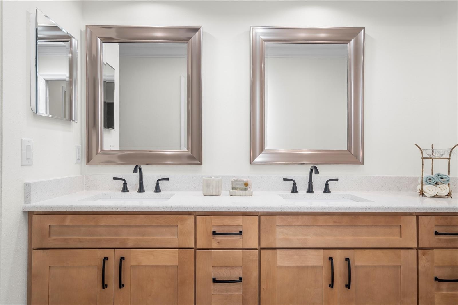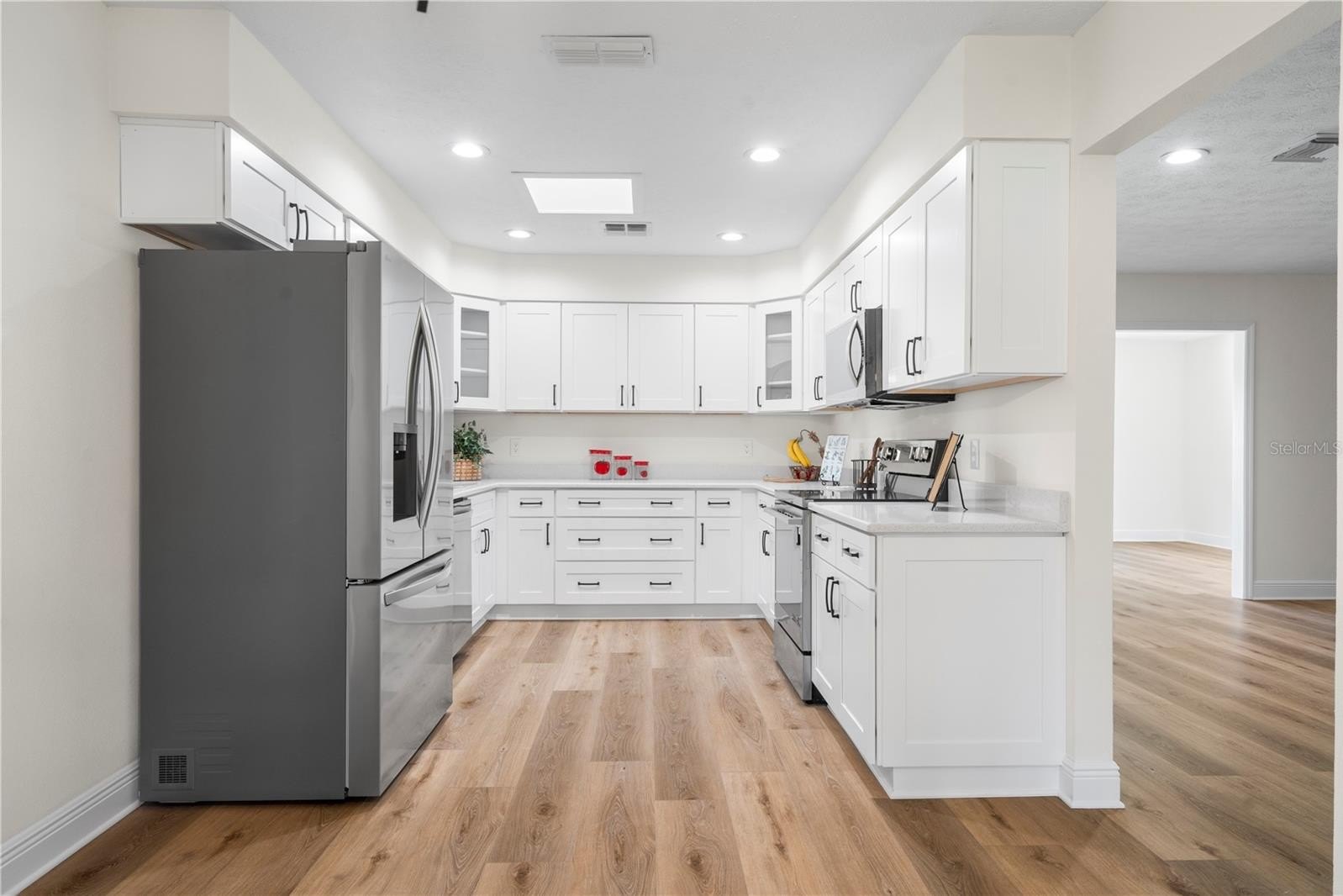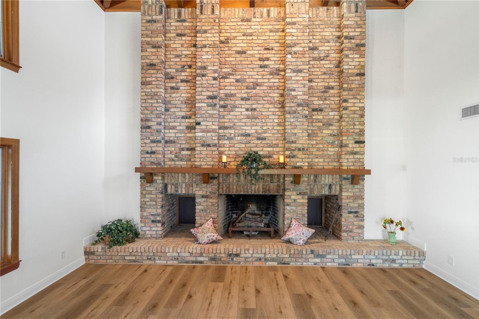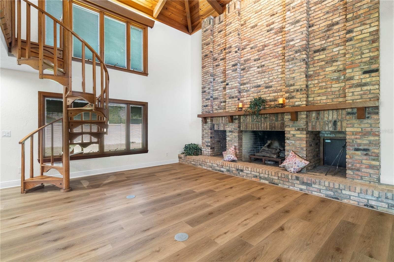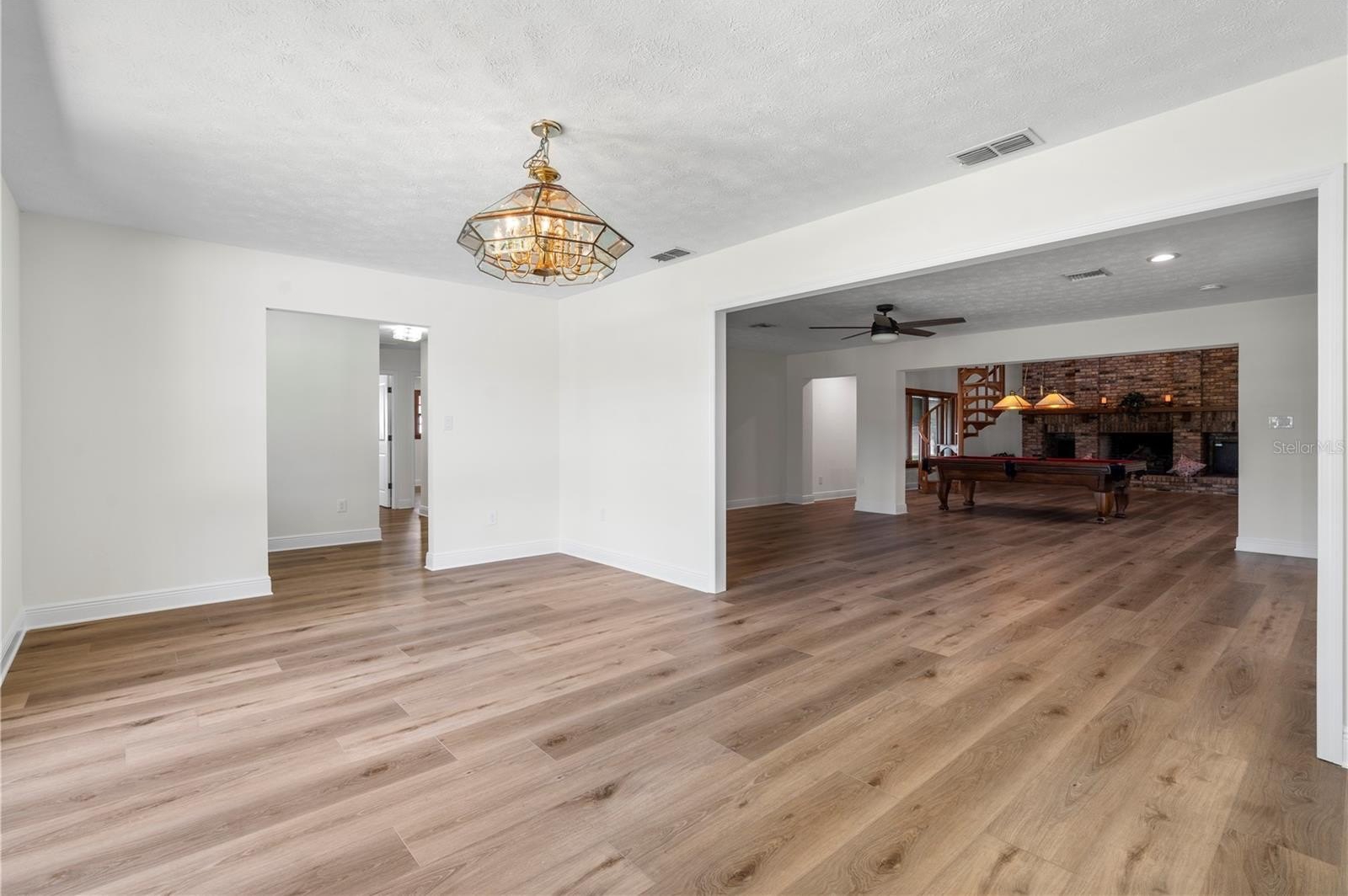 The great room centers around a gorgeous wood-burning fireplace, creating a cozy and inviting space for gathering. Throughout the home, fresh updates and a functional layout support a variety of lifestyles or multiple-generational living.