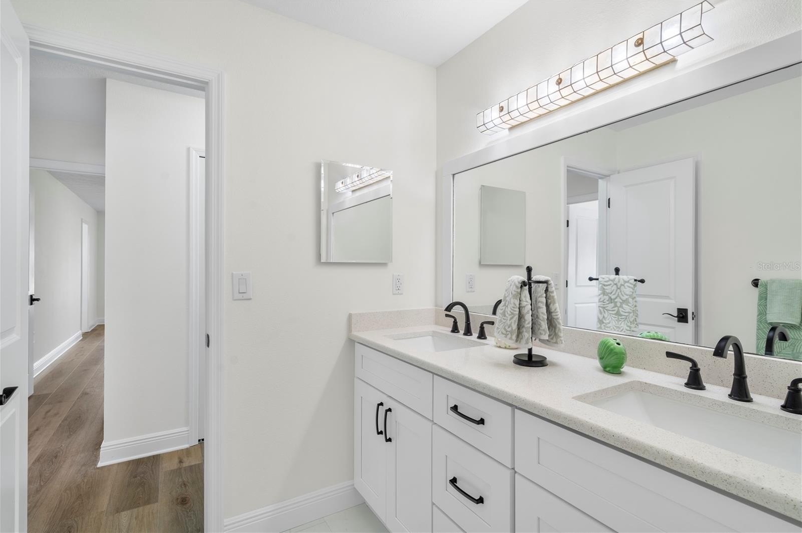 Inside, you’ll find two spacious primary bedrooms, each with its own ensuite bathroom, offering privacy and comfort for extended family or guests. The kitchen features a breakfast nook and bar area for ample seating. There are stainless steel appliances and abundant cabinetry, ready for daily meals or entertaining. Speaking of entertaining, wait until you see the massive covered lanai perfect for parties, relaxing with your morning coffee or just hanging out in a hammock with a good book!