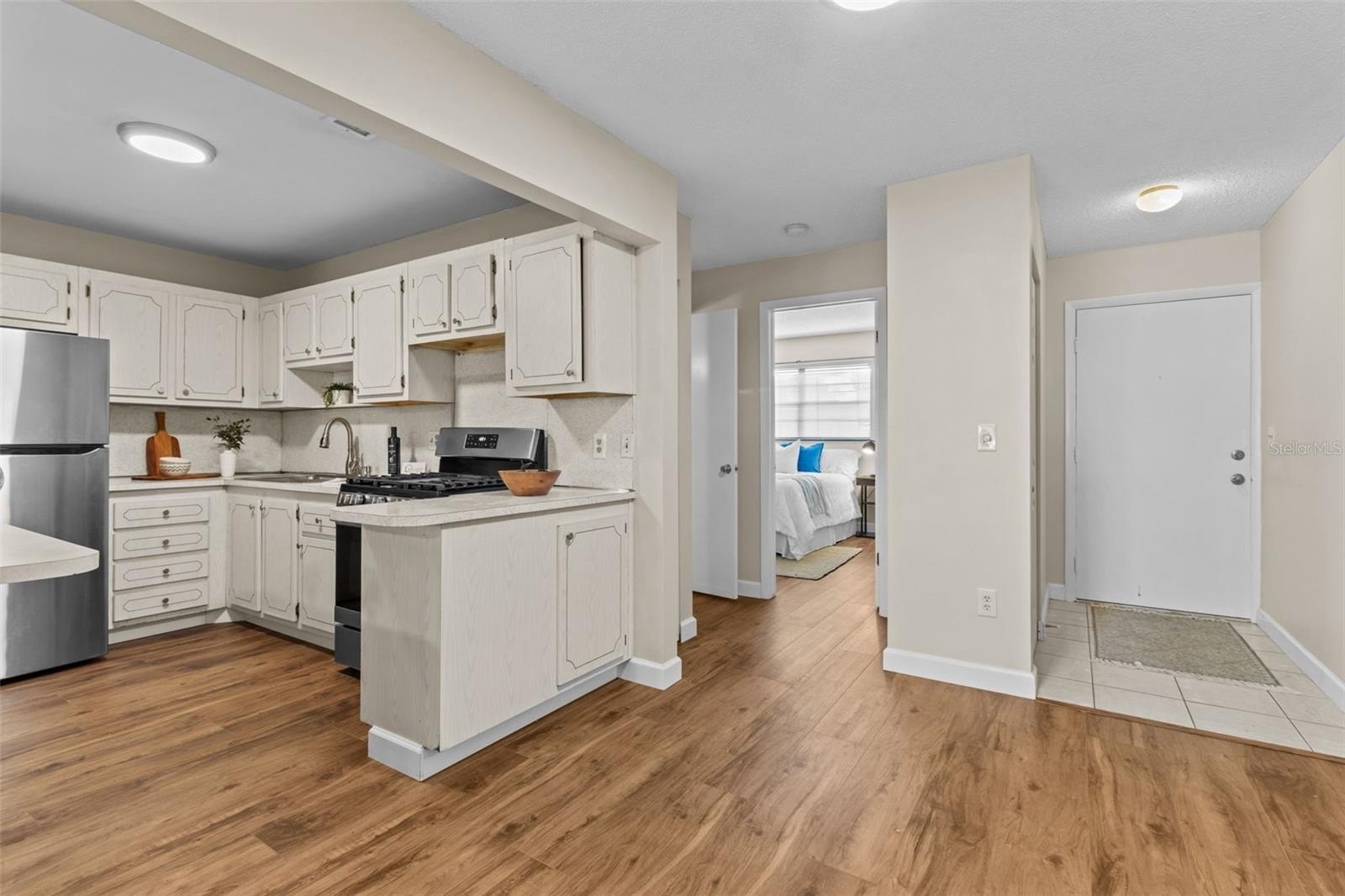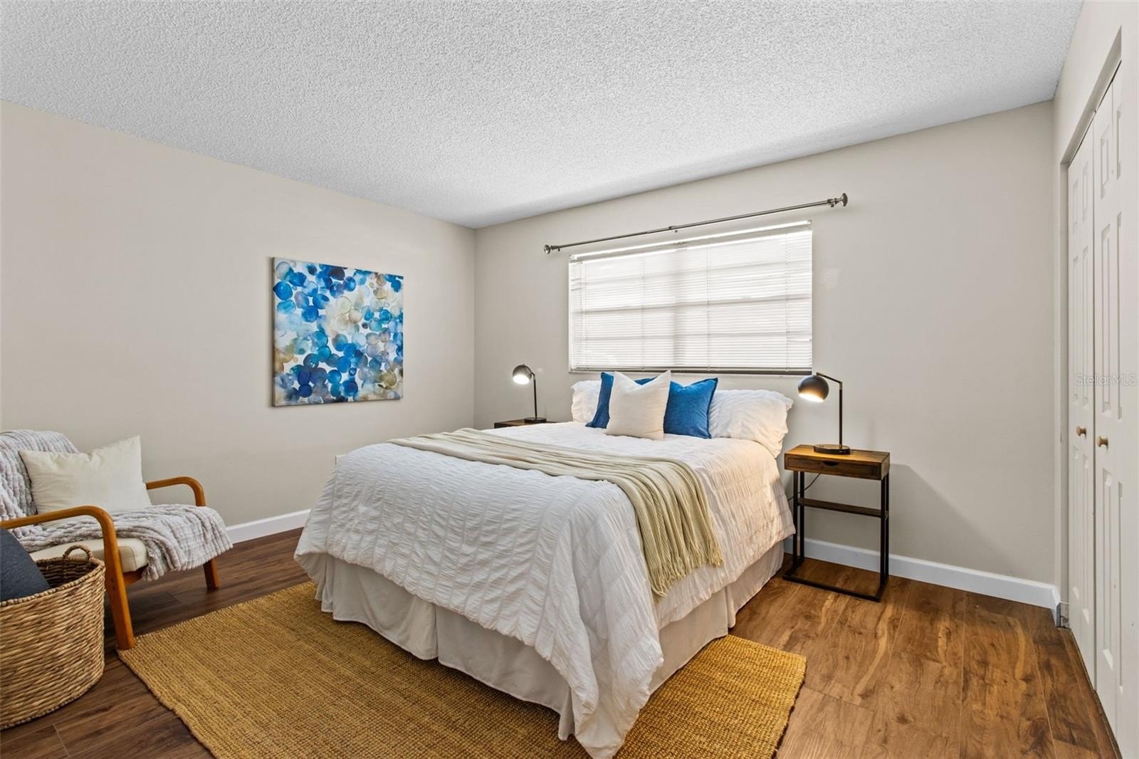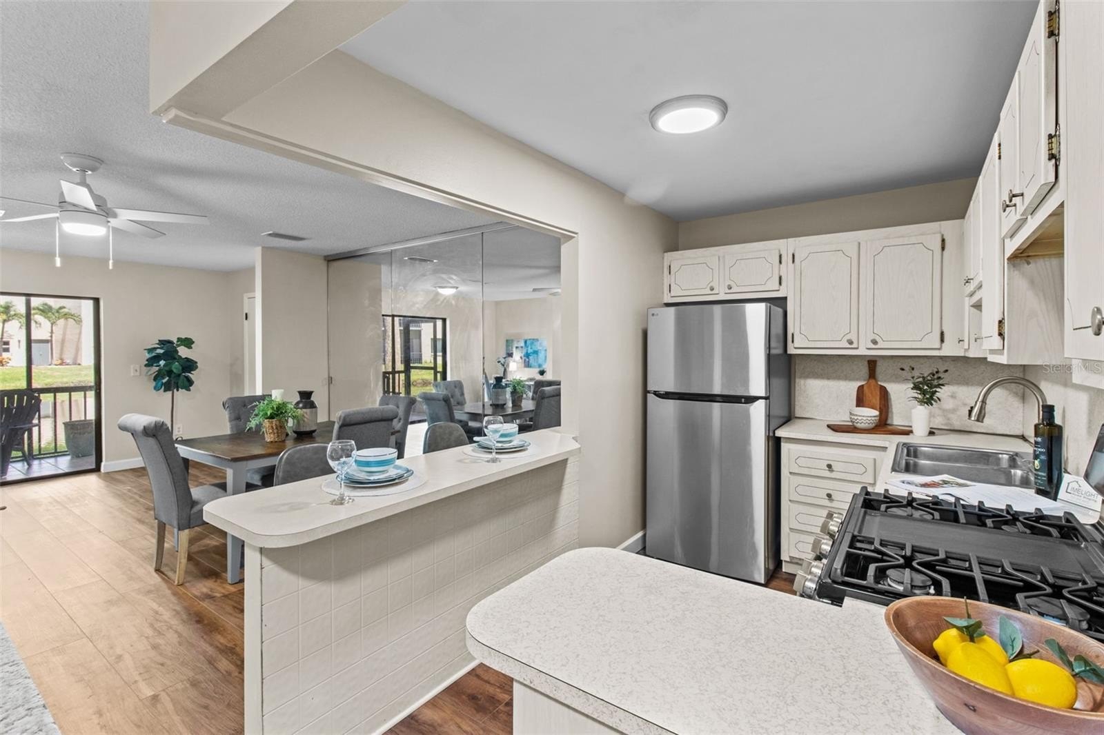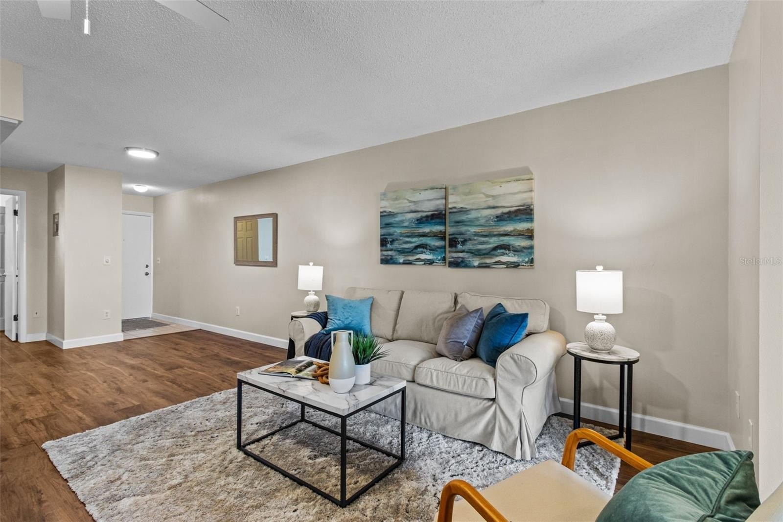 Welcome to your forever home! Retire in style in this adorable 1-bedroom, 1-bath condo in the sought-after 55+ community of Five Towns. Enjoy the ease of first-floor living with a *perfect* pond view right from your screened patio. NEW flooring is premier laminate. NEWER electrical panel and AC is less than a year old! Newly renovated bathroom! Kitchen cabinets and counter need TLC, but the oven and refrigerator are brand new! Freshly painted throughout, including ceilings! Forget clutter with the surprisingly spacious storage behind the living room mirror - (Or, easily remove to expand your living space). Plus, take advantage of the convenient community laundry. (This unit does not have in-unit laundry, however buyer is allowed to hire licensed plumber to install hookups with board approval and proper permits, dryer would need to be ventless). Comes with covered carport #23 which is a huge bonus in beating the Florida heat. Located centrally in the community, you're steps away from all that Five Towns has to offer, including the Magnolia clubhouse where most events take place. You can see just how close this building is to two of the six total community pools - so you can take your pick! Your worry-free lifestyle starts here! **All listing information is considered highly reliable according to seller, buyer/buyer's agent to verify** Gas hot water is maintained by the building. Five Towns is renovating its amenities over the next few years, which will only add value to these properties. Location is just a short drive to Publix, banking, restaurants, and shopping and only a 10-minute drive to the beach or a 20-minute drive to downtown St Pete! Five Towns is on 111 acres and has 9 ponds, 6 pools and a hot tub, 3 outdoor kitchen style gazebos with grills and refrigerators, tons of walking area, tennis courts, shuffleboard courts, horseshoe, bocce ball, and 2 clubhouses which house a billiards room, a library, 2 fitness centers, 2 auditoriums, and 2 card rooms. There are events happening almost every day of the week, including Card Games, Yoga, Mahjongg Classes, Exercise Classes, Theater Club and Events, Painting, Card Making, Quilting, Swimming, Dances, Pancake Breakfasts, Band Concerts, and more!! You will not find a more immaculately cared for 55+ community in St Pete! Come see what your new life could look like today! Buyer to verify all listing information.
