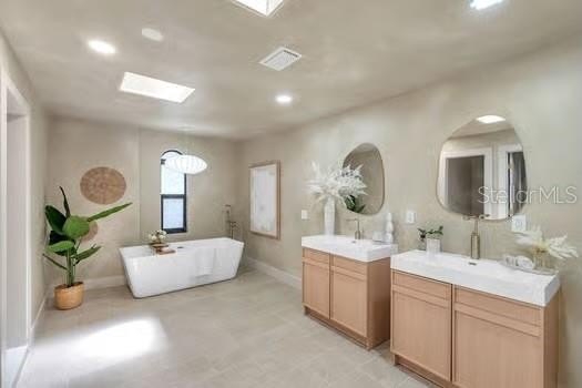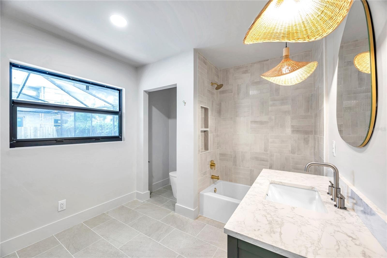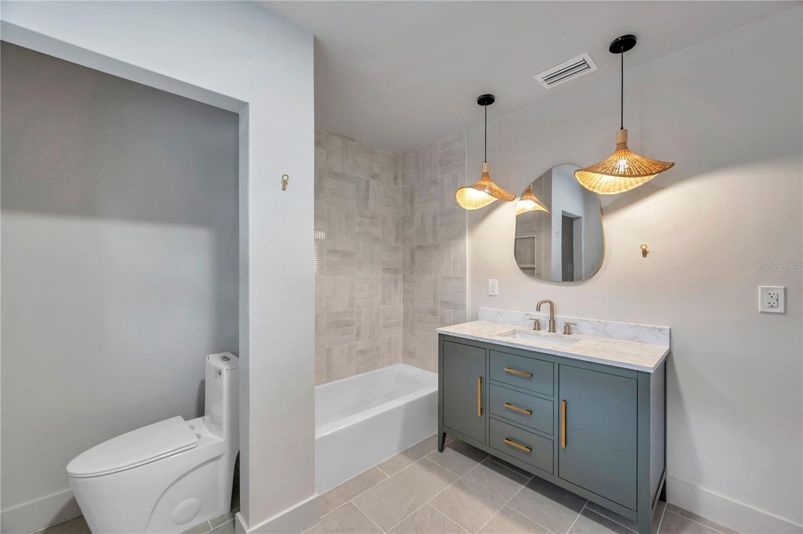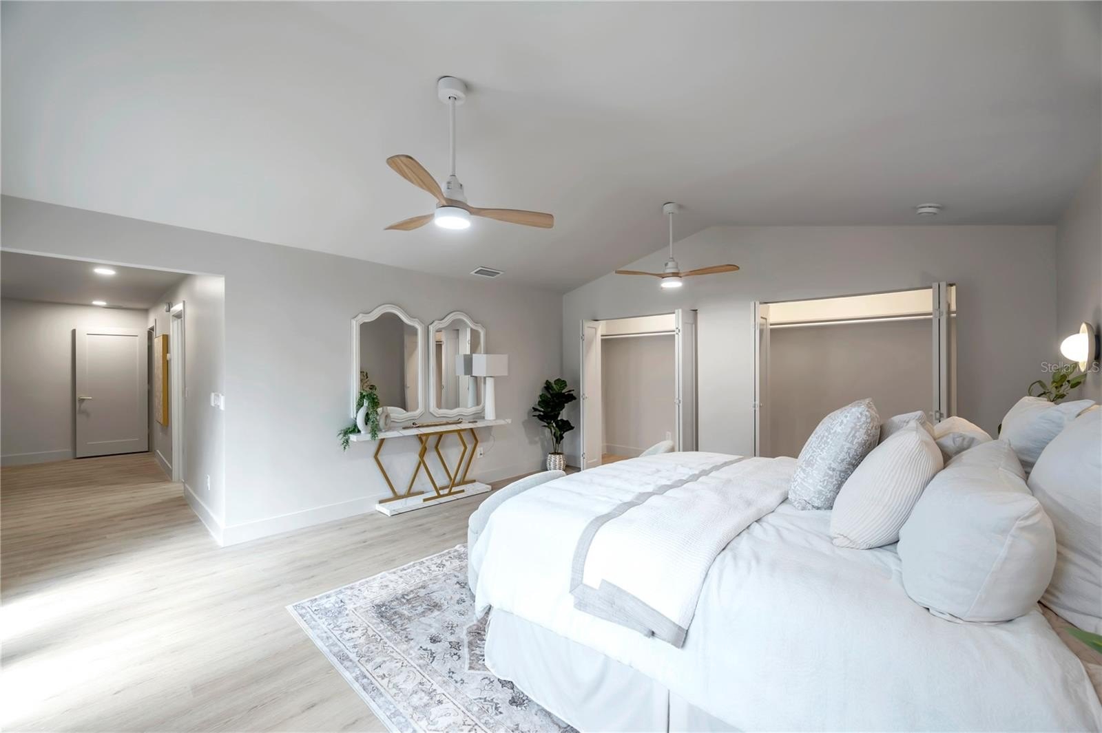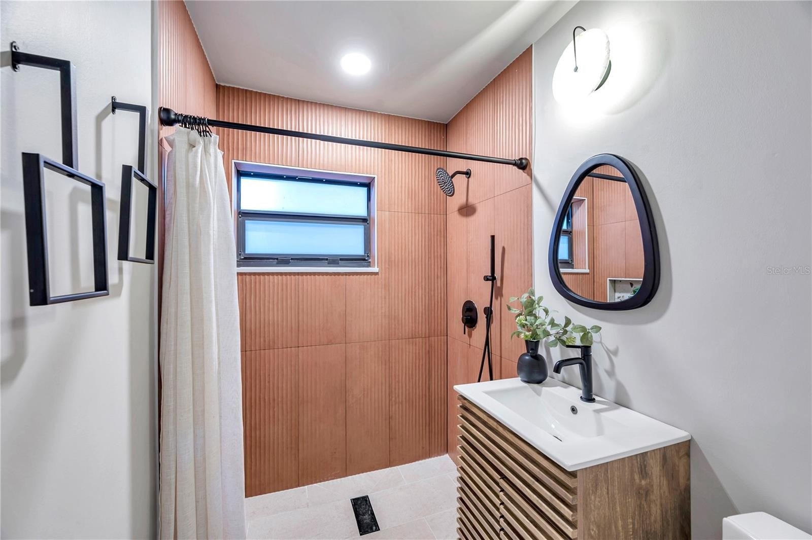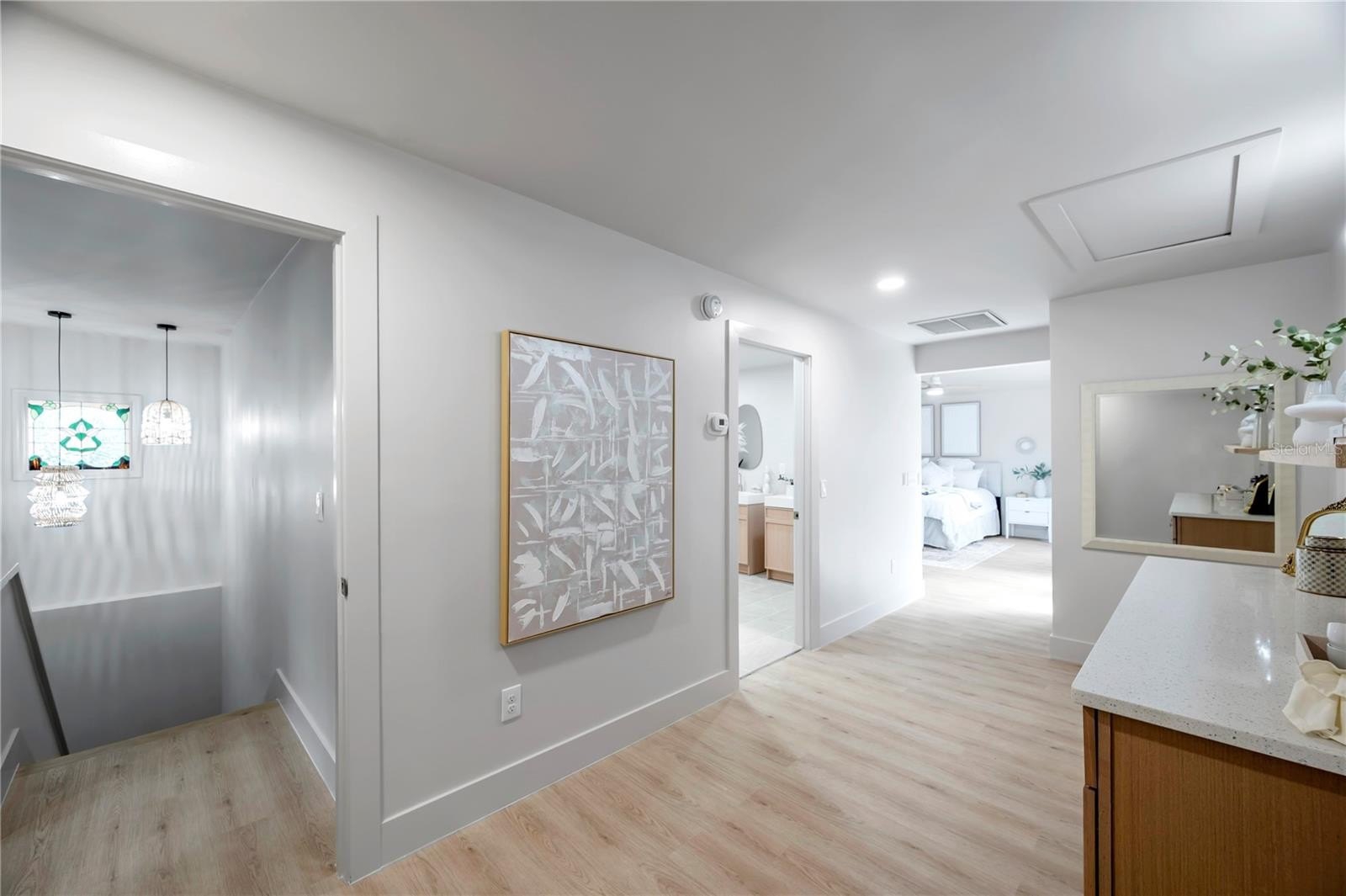The spa-inspired primary suite offers a freestanding soaking tub, double vanities, and a walk-in shower with designer tile. Two additional stylish bathrooms and spacious guest rooms make this home perfect for family and guests.
