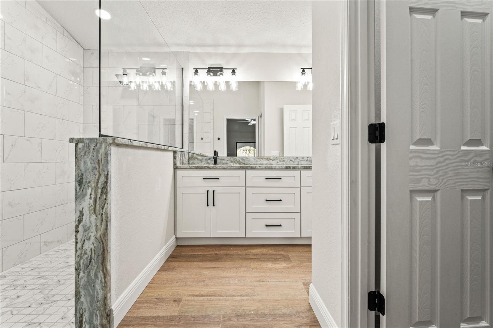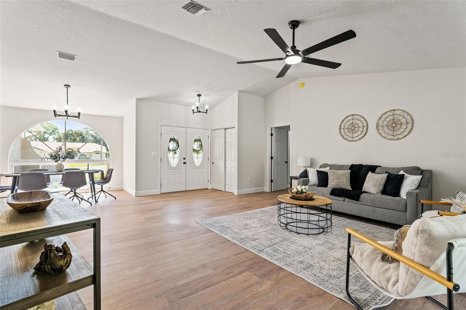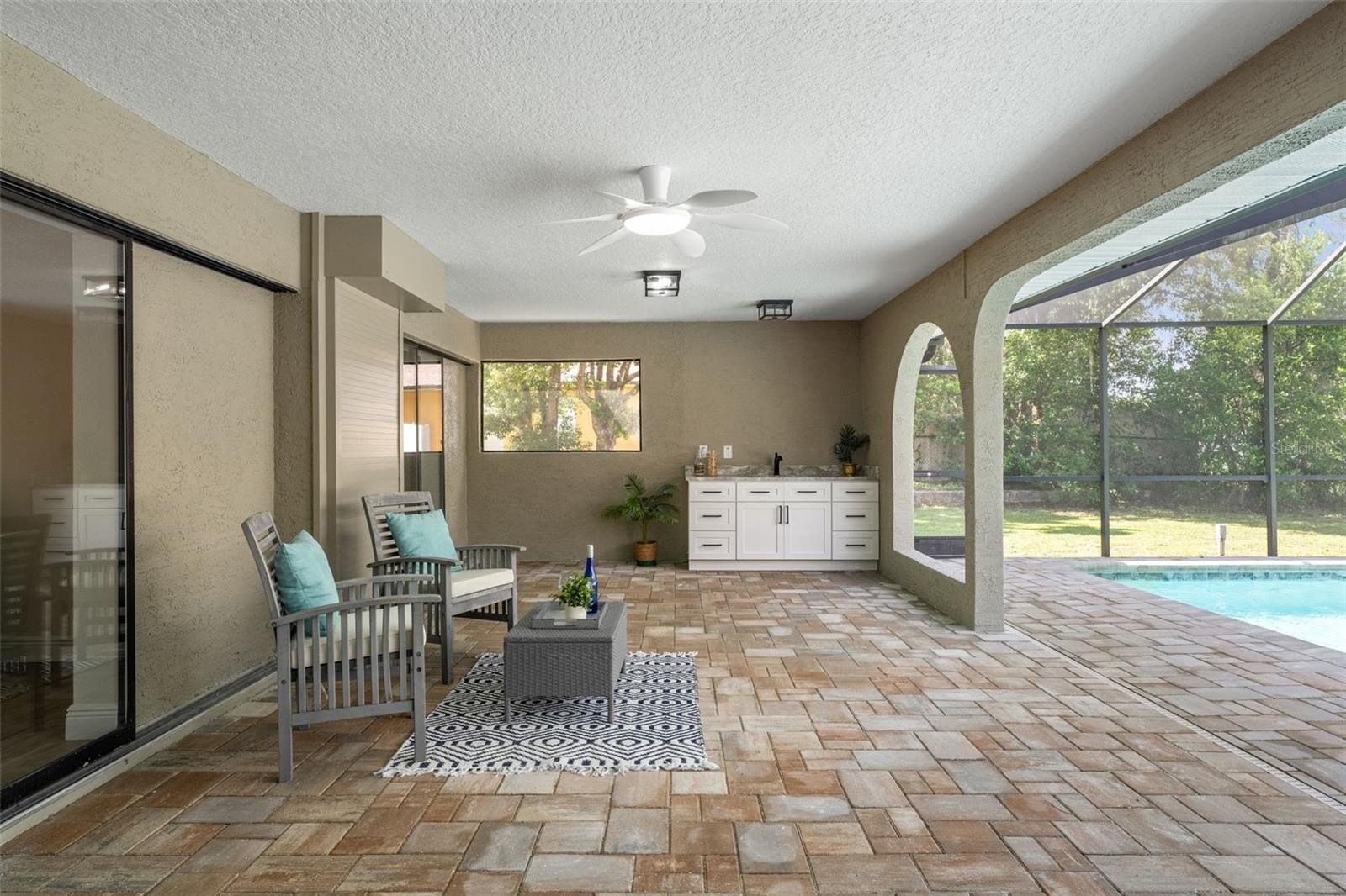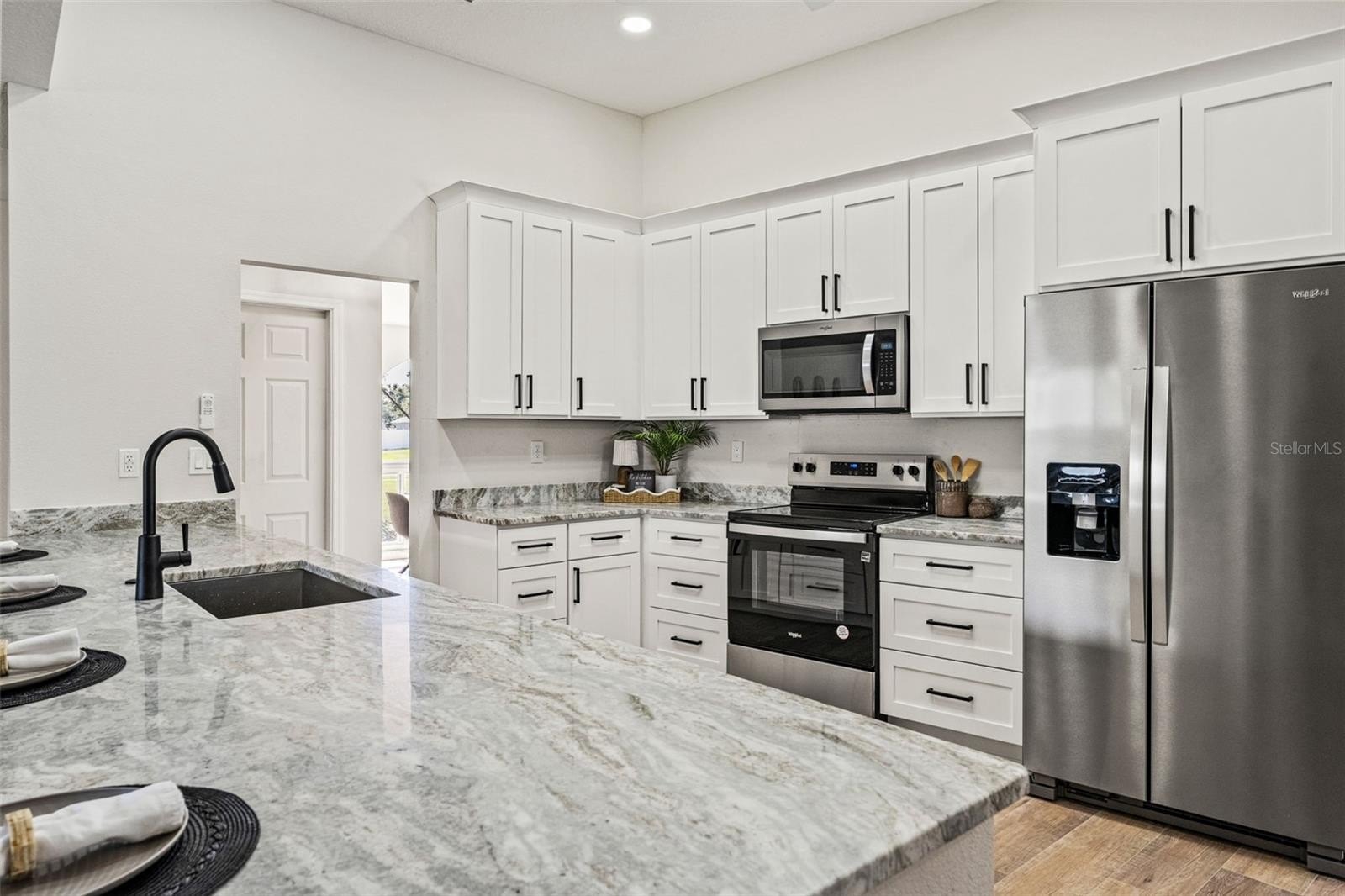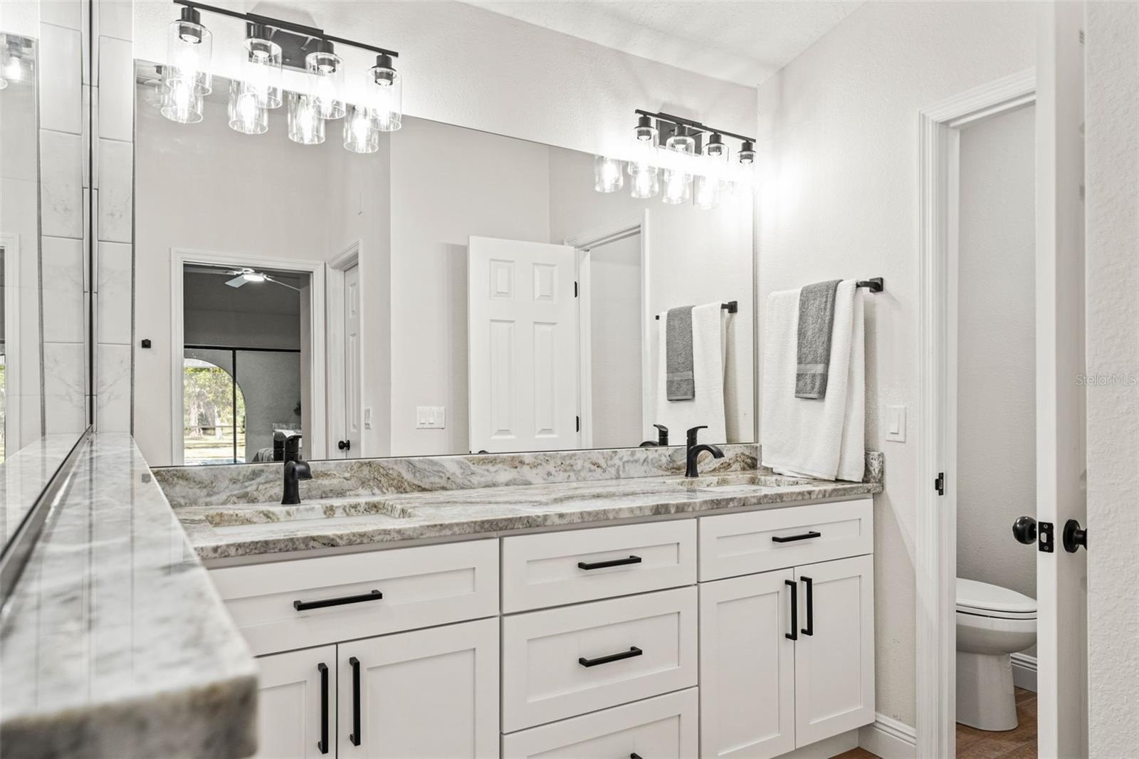 Sitting on a 0.86 acre lot, this absolutely gorgeous fully renovated POOL home is now available! Worry free here as the ROOF IS BRAND NEW! Upon entry into this home, you are greeted with an open living room, tall ceilings, and a direct view of the pool through the fully collapsible pocket sliders. With brand new flooring throughout and tons of natural light, this home feels so spacious and inviting. The stunning kitchen is a chef's dream! All new soft close cabinets, luxury countertops, new stainless steel appliances, a deep sink, and a giant breakfast bar. Sharing a room with the kitchen is a second full living room - perfect for entertaining! There are multiple dining options here in this home: the formal dining room, nook table in the kitchen, breakfast bar, or dine outside on the huge pool deck. The primary bedroom boasts a beautiful private view of the pool and backyard through the sliders. Featuring a huge walk-in closet and en suite bathroom, this primary is a true owner's retreat! The bathroom has a large brand new walk-in shower with frameless glass, a shower niche for storage, double vanities, and a separate water closet for privacy. Both guest bedrooms are generously sized and both have large walk in closets. One of the bedrooms has another set of sliders that lead onto the pool deck. The guest bathroom is also the pool bathroom, making for efficient use and convenience. This large sparkling blue pool has a brand new pool pump and new marcite! New pavers were just installed around the entire pool and lanai. Enjoy cooking outside on the grill, as there is a brand new outdoor sink station with cabinets and countertops to use! This home features a spacious laundry room with built-in cabinetry, a utility sink, and plenty of space for storage. Not only does this property have an extra long 3 car garage (28 feet deep!), it also has an expansive driveway for parking multiple vehicles if needed! Additional items in this home that are BRAND NEW are: hot water heater, all interior doors, all baseboards, inside and outside paint, light fixtures, ceiling fans, and shelving. No HOA, No CDD, and No flood insurance required here! This location is a dream as it's just 2 minutes to the Suncoast Parkway, Target, Publix, Walmart, and lots of restaurants. Hop on the Suncoast Parkway and you'll be at Tampa International Airport in just 45 minutes. Come see this beautiful home in a highly desirable location!