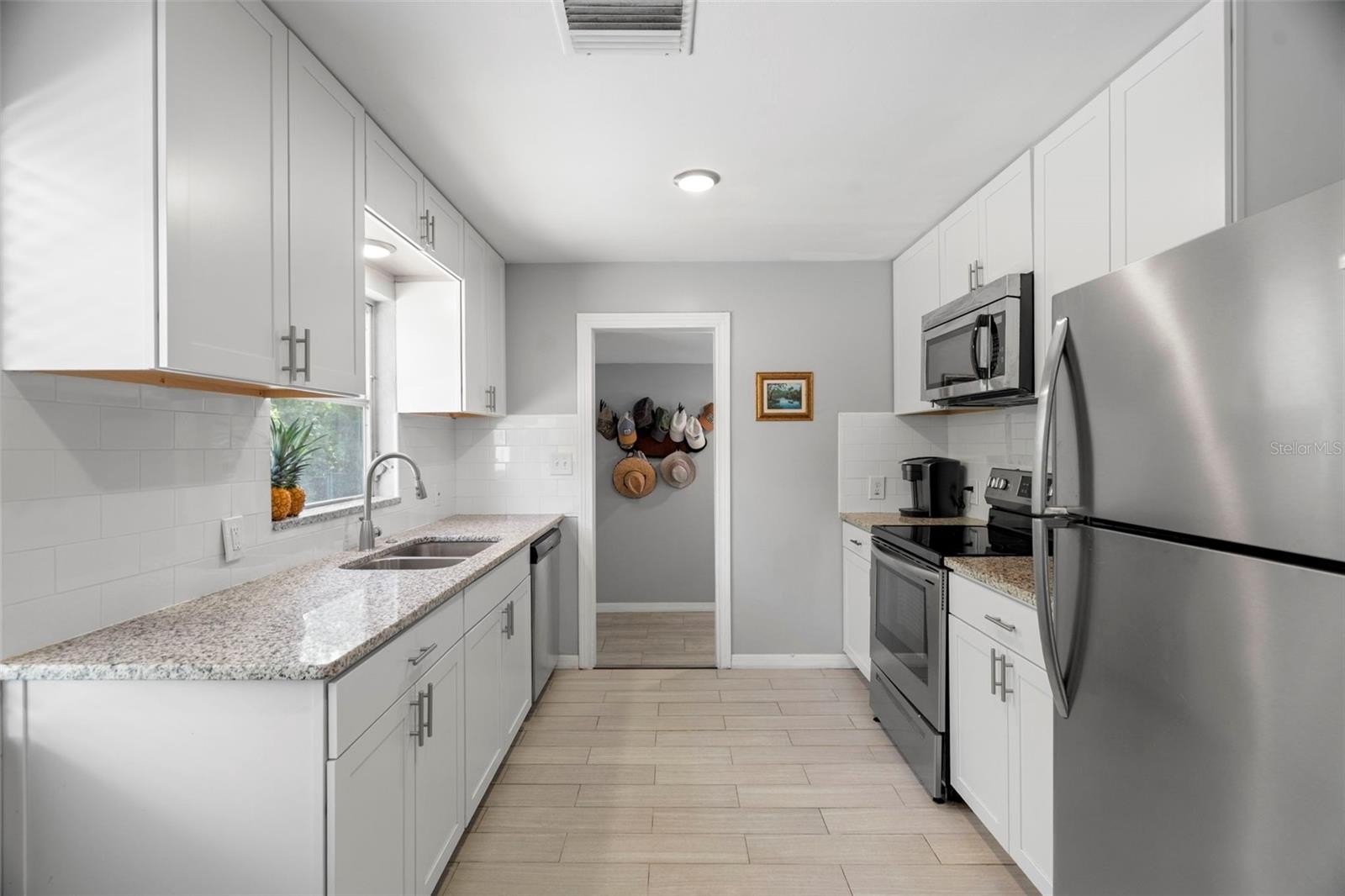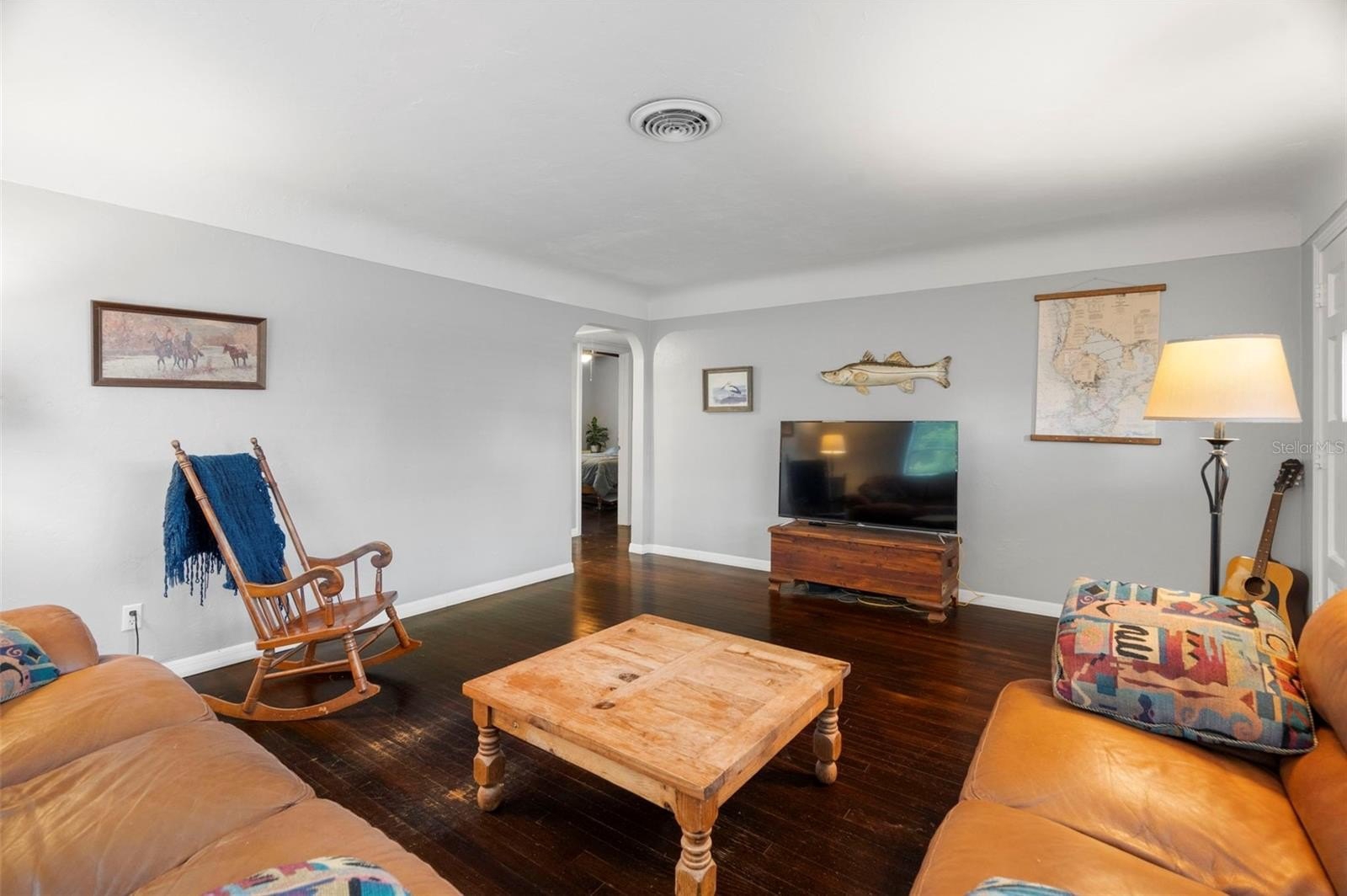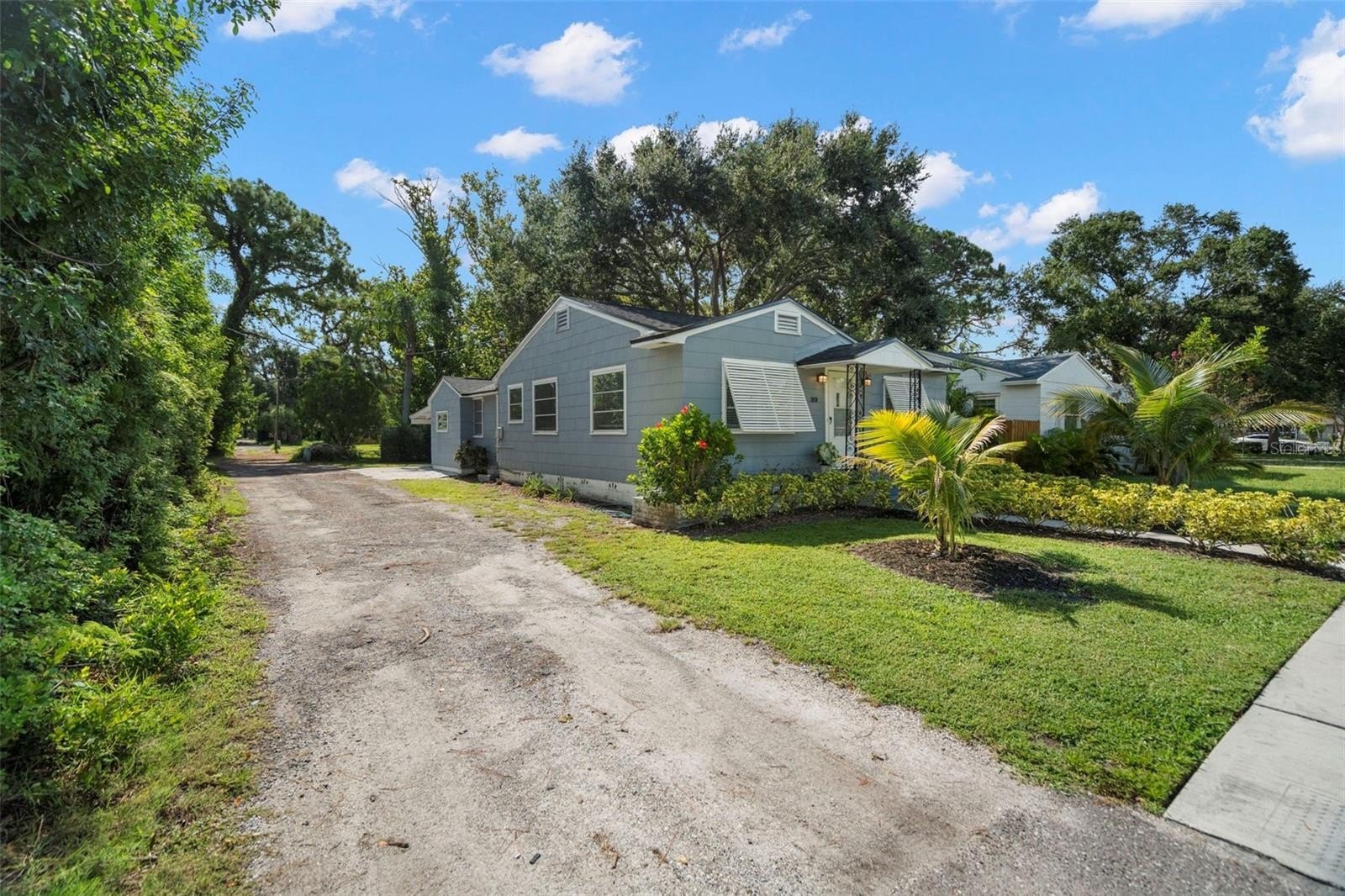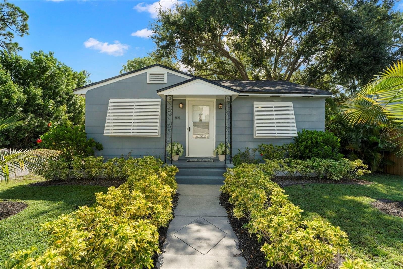 Timeless charm meets modern ease! This Gulfport bungalow is rich with vintage character that coexists perfectly with modern amenities. Original chocolate-stained wood floors, coved ceilings, archways, cedar closets and classic Bahama shutters all give a warm nod to yesteryear. Yet, tasteful renovations throughout elevate the home to today’s lifestyle. The kitchen is a standout, featuring extended white shaker style cabinetry, stone countertops, a subway tile backsplash, stainless steel appliances and has plenty of space for a dining table. A split bedroom layout ensures both privacy and convenience. The two guest bedrooms share an updated main bathroom which echoes the home’s contemporary aesthetic. A major bonus? The garage conversion - separated by a breezeway, utility room, and second full bath - offers incredible flexibility. Use it as a spacious primary suite, home office, studio, fitness room, or take advantage of the layout for house-hacking. With two separate entrances, its ideal for multigenerational living or potential rental income. Coveted alley access makes coming and going a breeze, easily pull in your boat, golfcart or recreational vehicles. The backyard is lined with lush Areca palms for added privacy and a tropical vibe, while coconut palms and thoughtful landscaping in front enhance the home's curb appeal. The list of upgrades since 2019 has been extensive: roof, AC, replaced sewer line, and tankless hot water heater. These improvements will guarantee the new owner years of stress-free living and peace of mind. Located just blocks from everything that makes Gulfport so adored: colorful festivals, quirky boutiques, award-winning waterfront dining, and the Tuesday Morning Market. Don’t forget the sunset strolls along the beach or Williams Pier! Whether you're searching for a full-time home, vacation escape, or a savvy investment, this home offers an ideal blend of comfort, character, and coastal lifestyle.