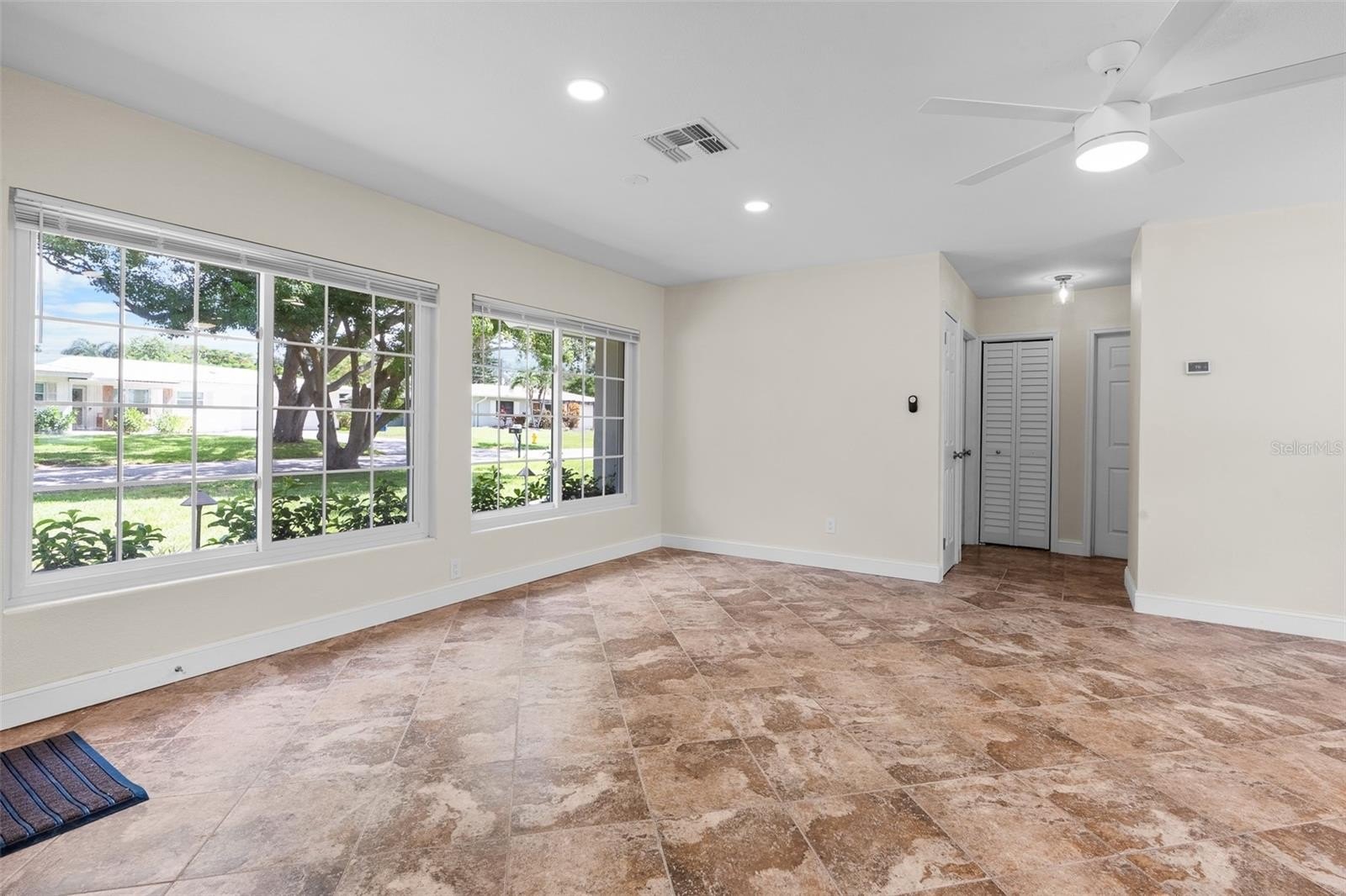 One or more photo(s) has been virtually staged. Welcome to 1861 Meadow Ln, a fully renovated 2-bedroom, 2-bath concrete block home in unincorporated Clearwater. Located in a great neighborhood with wide streets, friendly neighbors, and a safe, quiet setting just off Keene Road, this home has it all. Major upgrades include a brand-new roof, tankless water heater, and garage door (2025), newer windows, newer HVAC, full fumigation, and new attic insulation. Inside and out, the home has been freshly painted with premium Sherwin-Williams paint. One car garage. The interior features updated ceramic tile and vinyl flooring, recessed lighting, ceiling fans, and all-new doors and hardware. The kitchen and baths have been fully remodeled with real wood cabinets, granite countertops, stainless steel appliances, and modern fixtures. Enjoy a huge front yard and a large I fenced backyard with brand-new PVC privacy fencing and fresh landscaping, epoxy-finished garage adds extra polish. With transferable 4-point and wind mitigation reports and no HOA, this move-in ready home is a must-see in a prime Clearwater location. Unincorporated Pinellas County bring your boat or RV RV hook up in backyard.