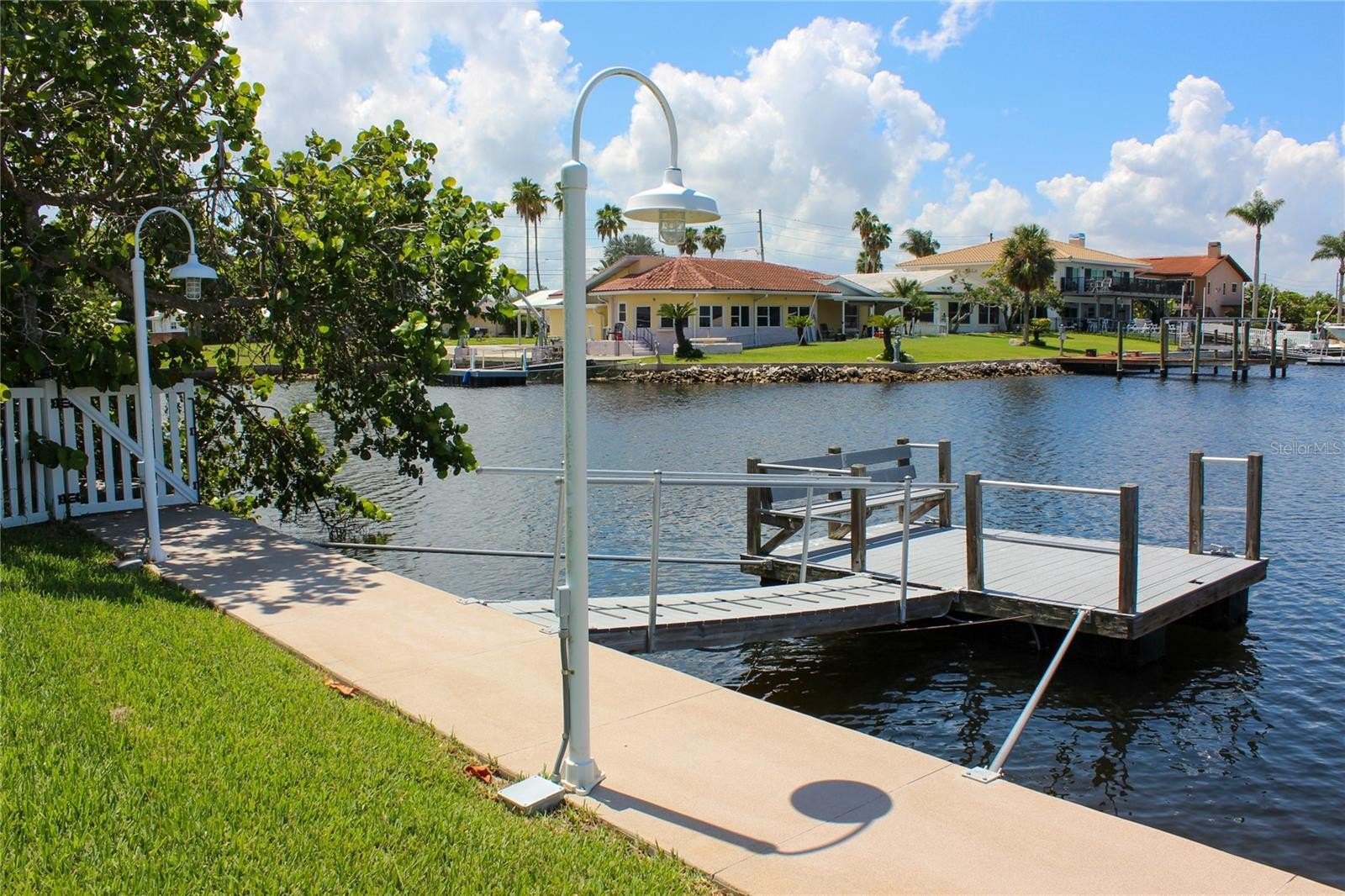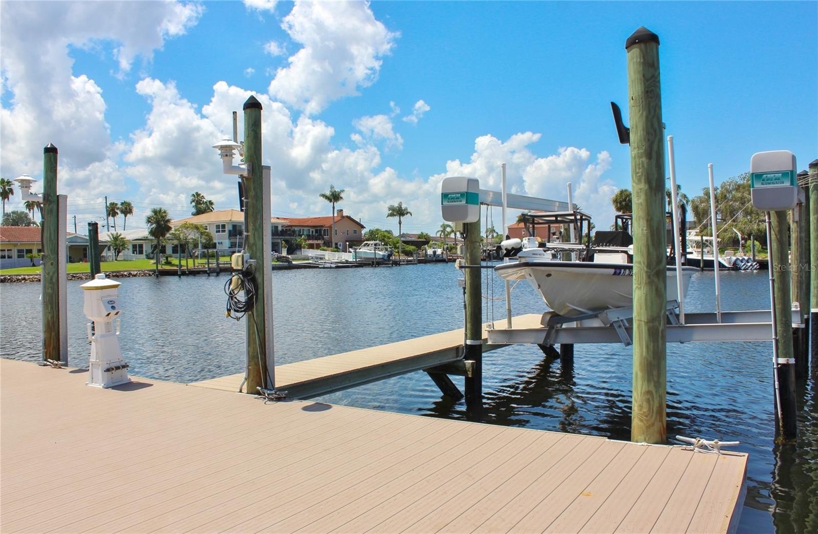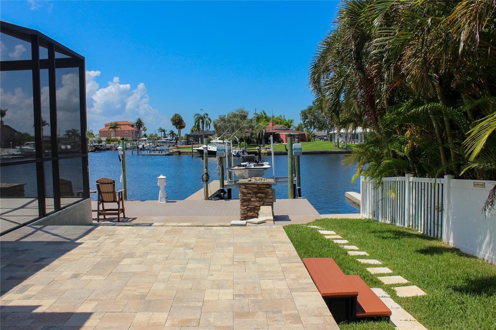 Beautifully remodeled 3-bedroom 2-bath home on an extra wide lot featuring 158 feet of newer seawall waterfront! A boating & fishing dream home! 2 newer composite material docks with fob controlled lifts (13,000 lb. and 10,000 lb), a jet ski lift and wet slip with room for a large sailboat. Beautiful landscaping, stonework and pavers create a fantastic outdoor experience and extended living space.