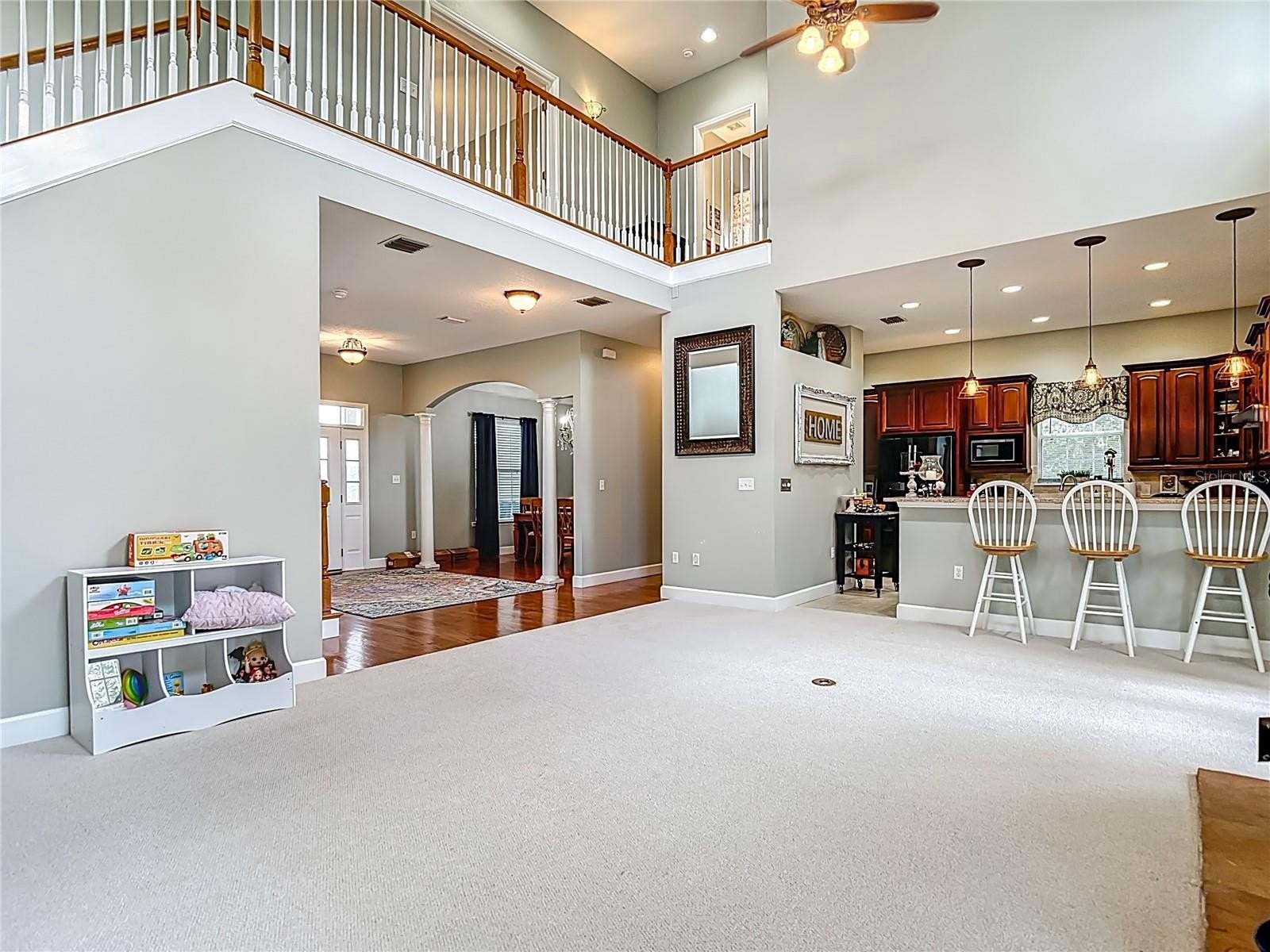 Peaceful Lake Front. 2 bedroom 2.5 bath with Den/Guest Room that can be easily be converted into a 3rd bedroom seller will re open the closet at sellers expense. No HOA. No CDD. Roof 2023. AC units 2025. New Carpet in the bedrooms and family room. Steinbrenner district. In house vacuum system. In wall pest control system. Kinetico water system. Ring doorbell. Lorex home security system. Open floor plain. Wood burning fire place. Kitchen is open to the family room offering stainless steal appliances, gas stove, stlestone countertops, over sized eat in bar and plenty of cabinets with lower cabinet lighting. Family room new carpet, wood burning fire place, high ceiling, built in entertainment center with shelving and lighting that can accommodate up to a 55 tv. Dining room hard wood bruce flooring and has a great view of the lake. Primary bedroom new carpet, ceiling fan with light, built in shelving and a walk in closet. Primary bathroom tile flooring, double vanity sink, walk in shower and a jetted tub for relaxing. Laundry room large enough to accommodate washer, dryer, refrigerator, wash sink and cabinets for storage. Screened in front and rear porches 8x34. Over sized garage 28x20 with attic space for storage. There is also room enough on the property to accommodate an RV or Boat. Need a few more rooms seller has great ideas for adding on additional space. Call and make your appointment today.