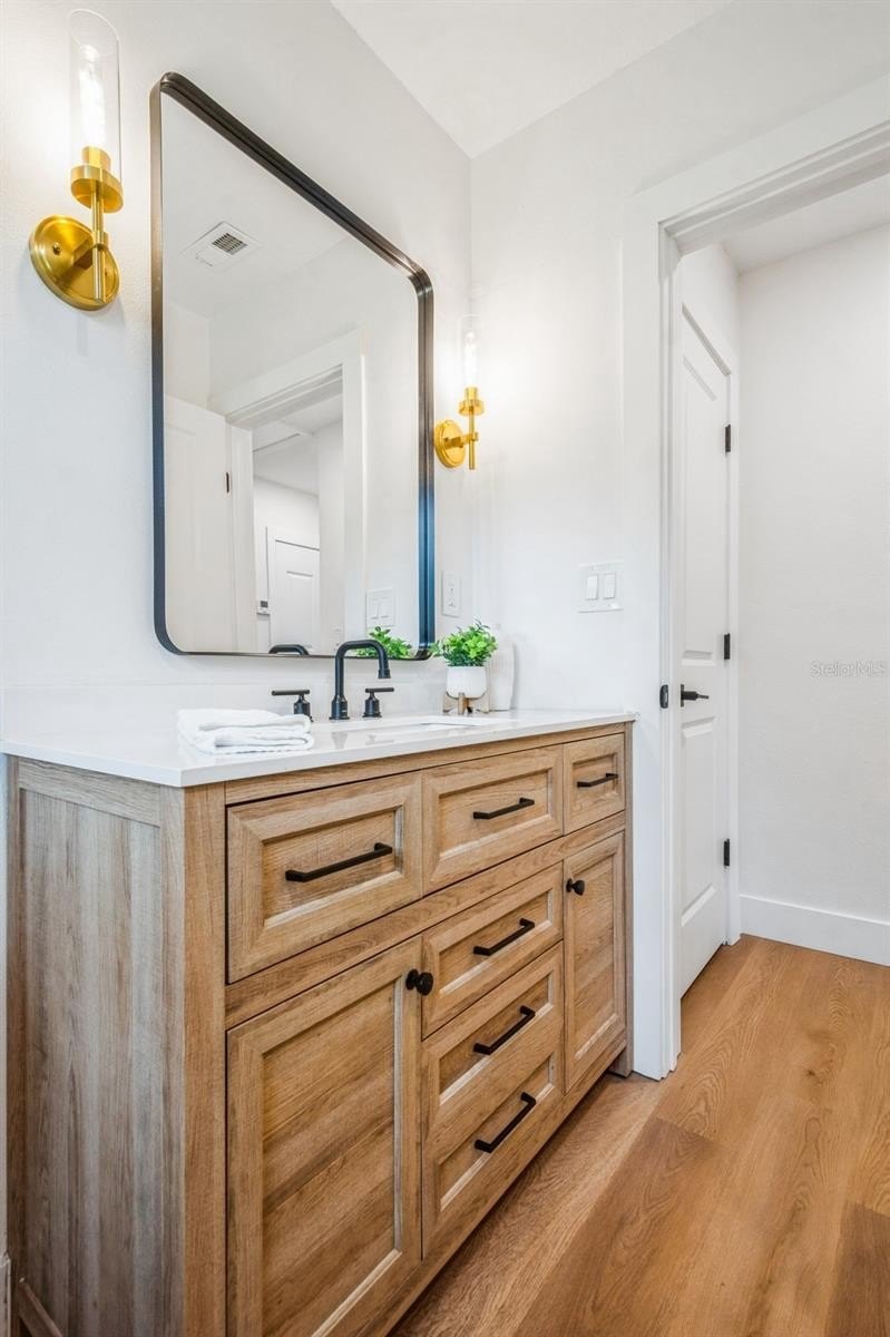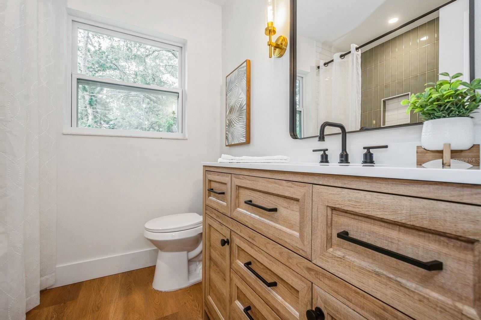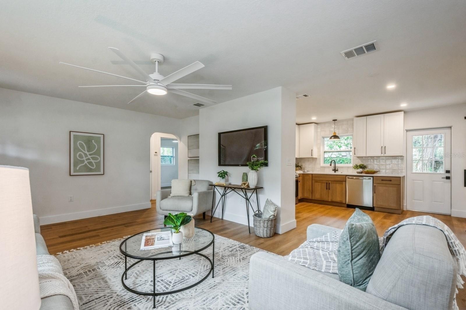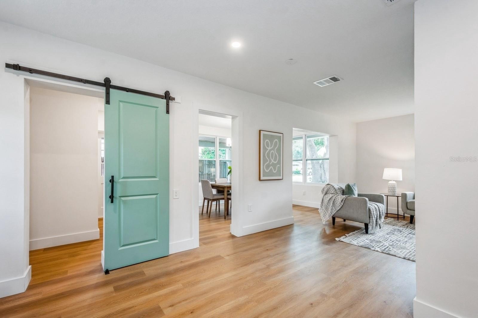 This fully remodeled 2 bedroom, 1.5 bathroom single story home is in a prime location just minutes from the many shops and restaurants of downtown Dunedin! Designer finishes and new luxury vinyl plank flooring are found throughout the home, which has a great floor plan perfect for living and entertaining. The spacious and bright living room is open to the kitchen which features new shaker cabinets, quartz counters, new stainless appliances and space for an eat-in area. Laundry and a chic powder bathroom are just off the kitchen, which also leads out to the covered car port with new tongue-and-groove ceiling. A separate dining room surrounded by windows streams in natural light. Two spacious bedrooms share the full bathroom which has a new tiled shower. The spacious fenced backyard has a seashell gravel patio and ample space for a pool. Other features include new impact-rated vinyl windows throughout, updated electrical and newer HVAC (2020) and water heater (2022), and a large storage room at the back of the car port. This home is nestled in a golf cart-friendly neighborhood of picturesque homes which the Pinellas Bike Trail runs right through. It is also a short stroll to Hammock Park, Dunedin Golf Club and Honeymoon Island. This home sat HIGH AND DRY with NO FLOODING OR STORM DAMAGE during Helene and Milton.