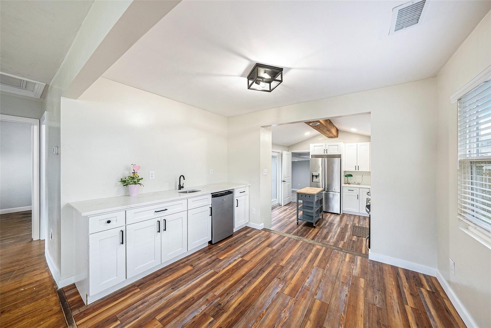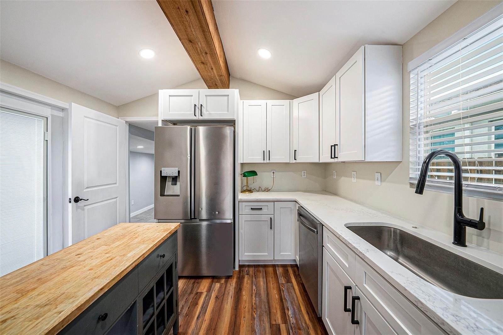 Welcome to this charming, move-in ready home! This property has great space for entertaining, both indoors and out. Don’t let the modest look fool you. Enjoy the recently renovated kitchen with its vaulted ceiling, quartz counter tops in the kitchen and dining area. Real wood pine cabinets have ample storage with soft close doors and drawers. Feel the warmth of the LVP throughout the space. The main living area and two bedrooms in the front of the home have hardwood floors. The bathroom was recently updated with new stylish tile on the floor and walls, large quartz vanity, brand new bathtub and new window. Through the kitchen is the main bedroom with tile floors and washer and dryer. The fully fenced yard provides plenty of room for pets, and there’s convenient alley access for a boat or additional parking. Two utility sheds in the backyard have ample storage options, keeping your belongings organized and out of sight. The backyard is truly a blank canvas, just waiting for your personal touch. Located in a non-flood zone in the desirable North Euclid neighborhood. The location is great. You’ll be 14 minutes from Downtown, 21 minutes to Tampa Airport, 8 minutes from Mangrove Bay golf course, and 20 minutes from the Gulf Beaches. Don’t miss your chance to own this unexpected treasure. Rest assured, this home had no water intrusion from Helene or Milton.