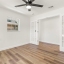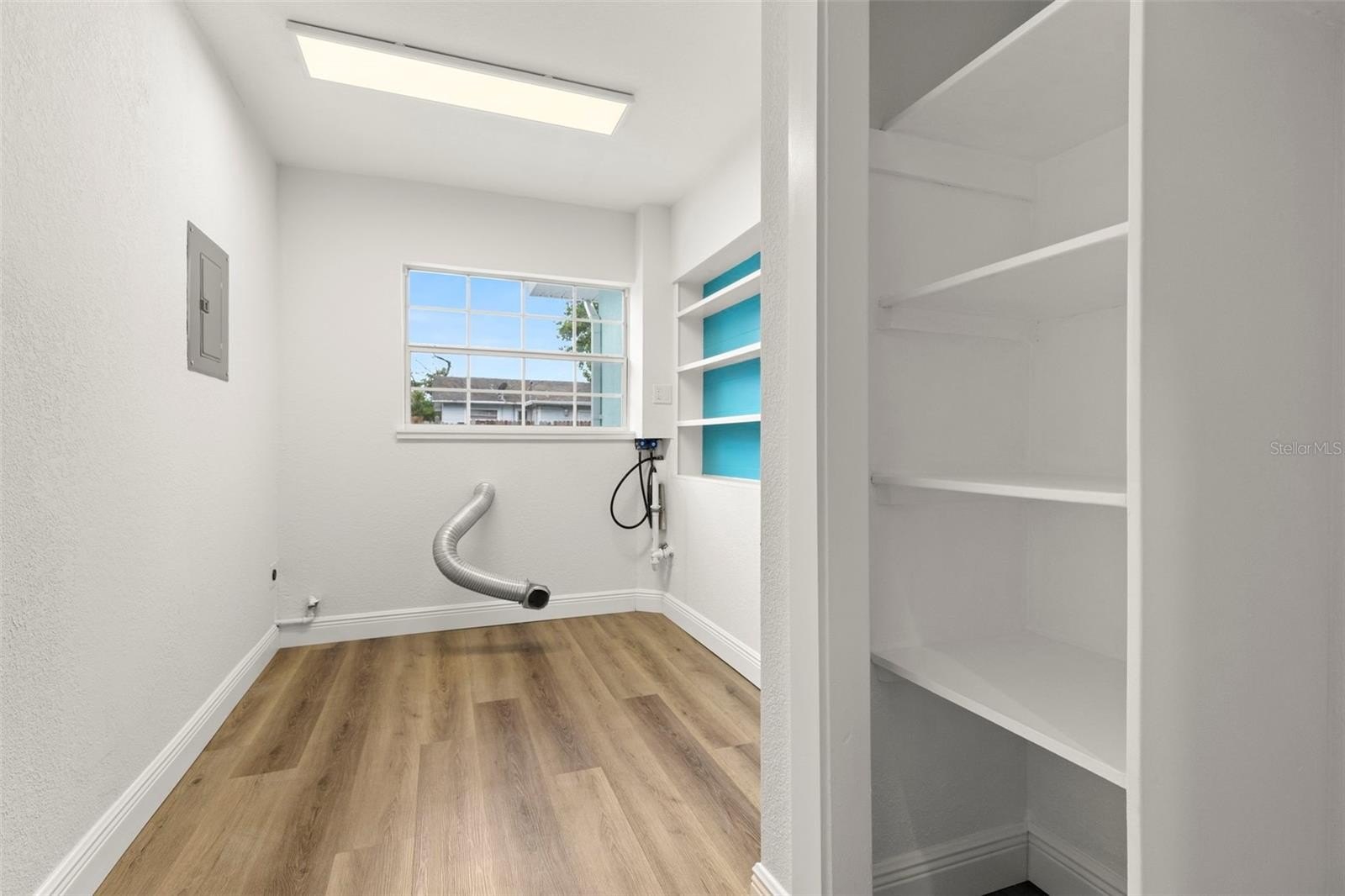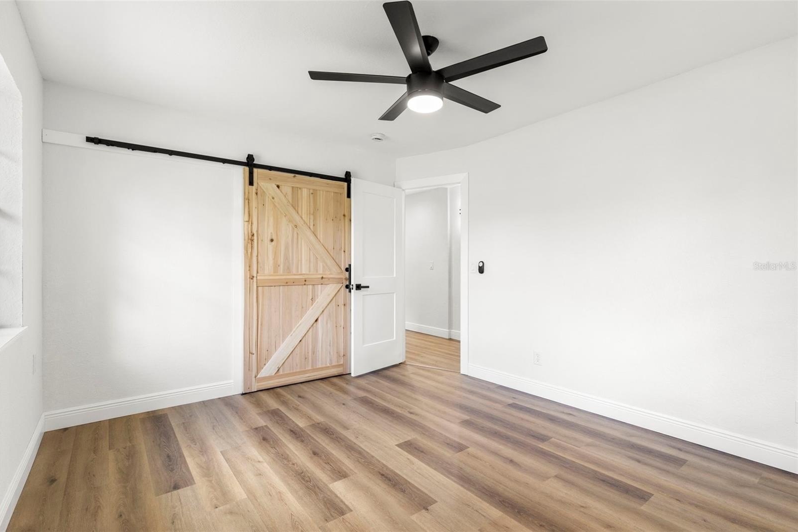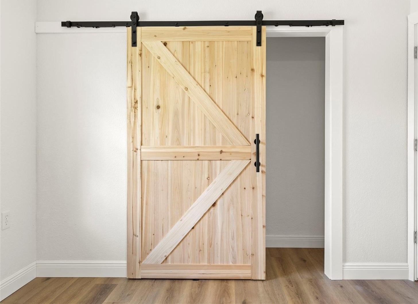 Each of the four spacious bedrooms is filled with natural light, while the two full bathrooms feature matching modern finishes. The primary suite includes a generous walk-in closet for ample storage. At the rear of the home, you'll find a dedicated laundry room with washer/dryer hookups and enough space to double as a storage area.