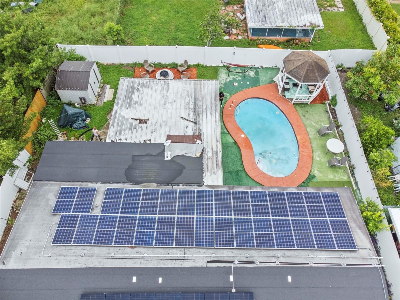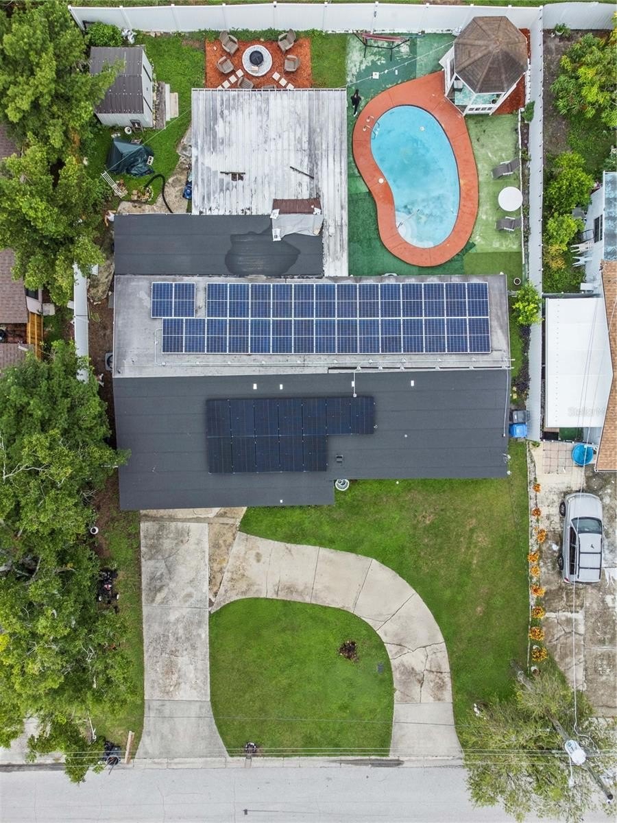 Major upgrades include granite kitchen counters, ceramic tile flooring, a new pool motor (2025), partial new roof (2025), a Tesla generator with solar panels (paid at closing), and two AC units (2020 & 2024) for year-round comfort.