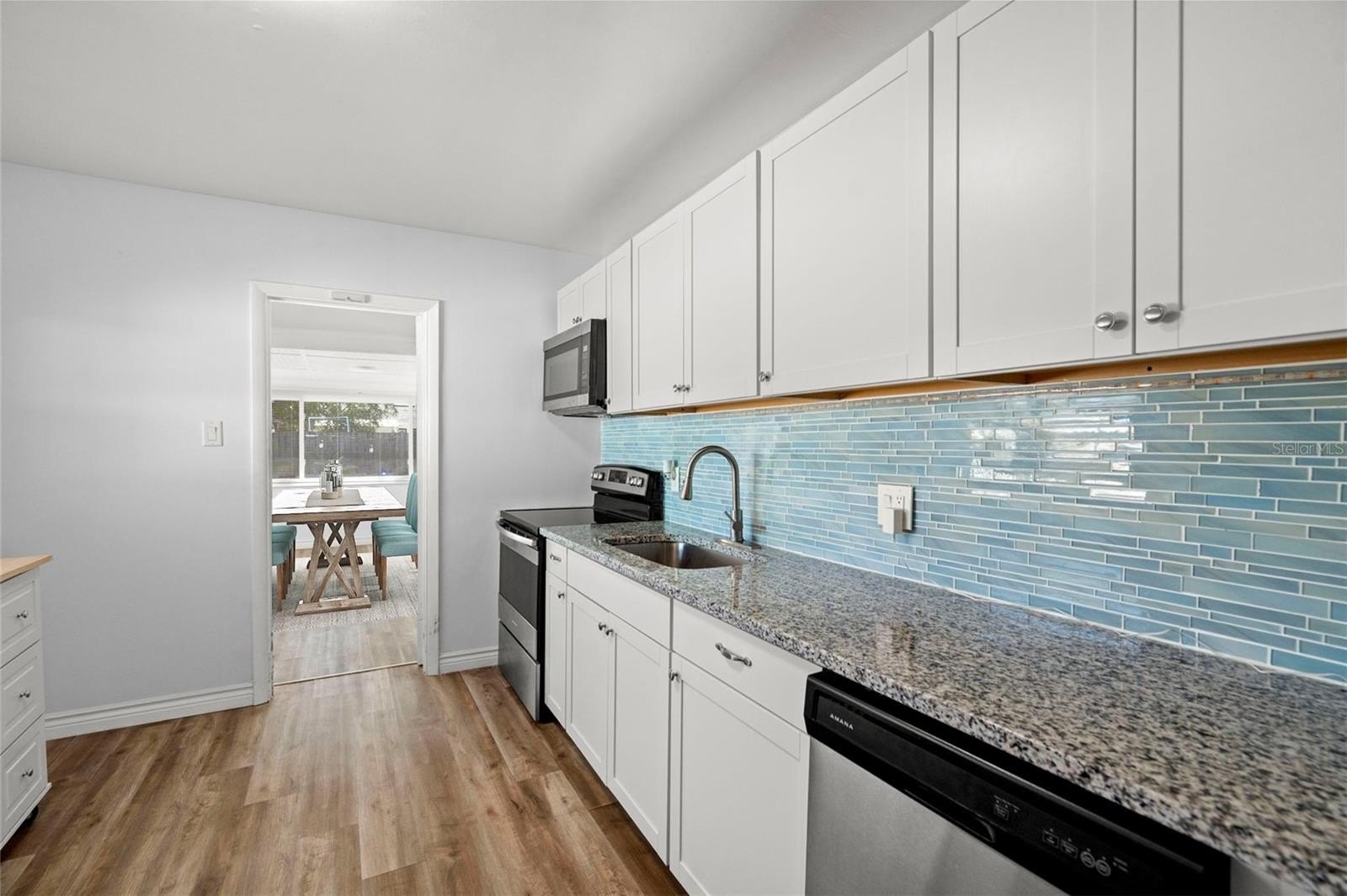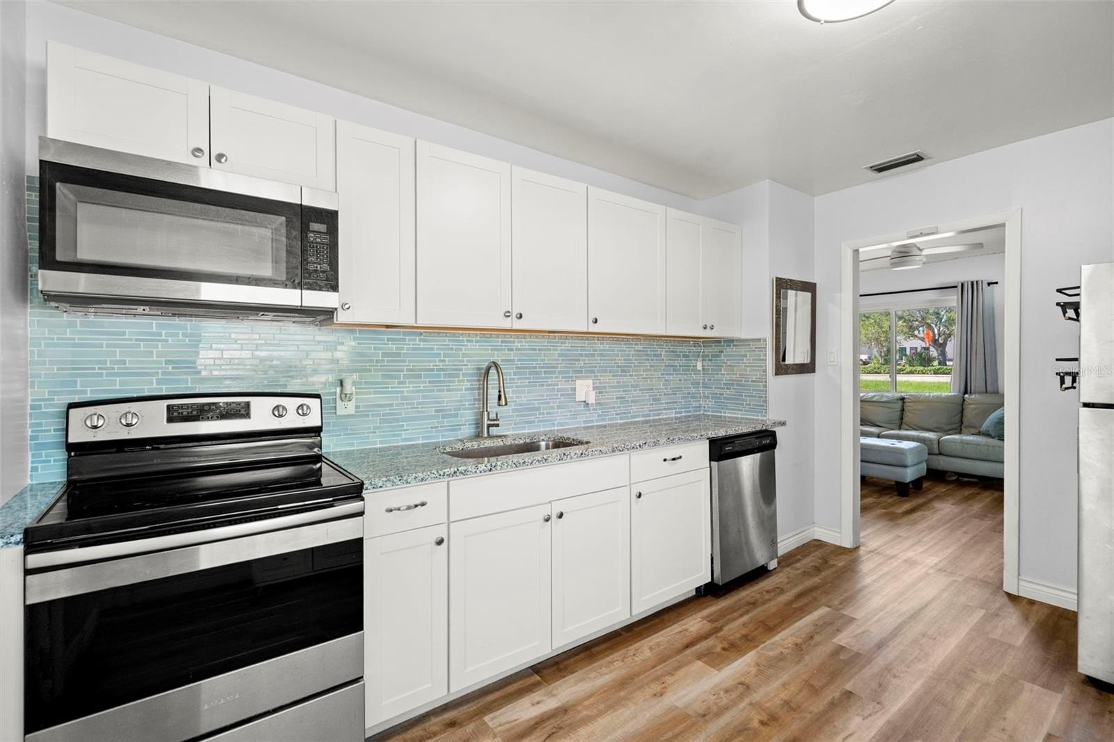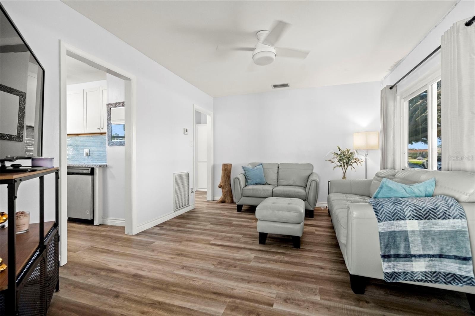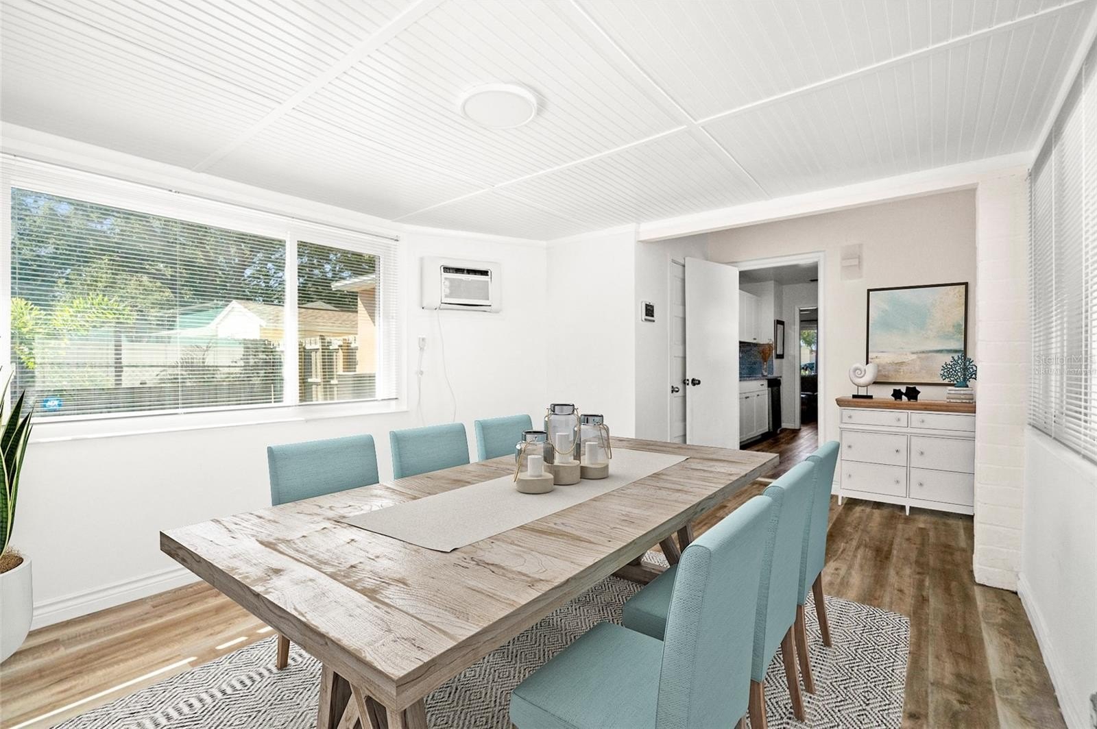 Step into perfection. This St Petersburg residence is designed for the owner who wants it all: a thoughtfully updated interior, flexible bonus space, a perfectly size yard, and an unbeatable location. Complete renovations throughout create a contemporary aesthetic with a calming vibe. The kitchen, found in the heart of the home, is a standout. It offers trendy white shaker-style cabinetry, stone countertops, a chic glass backsplash, and stainless-steel appliances. There is plenty of space for a cozy dinette for a quick casual bite. For larger gatherings, a light-filled area provides a generous space for dining, lounging, and easy entertaining. Prefer to dine al fresco? A freestanding wood deck makes a breezy spot for outdoor meals, year-round get-togethers, or evening cocktails under the stars. Artists, tinkerers, hobbyists or fitness gurus will appreciate the sun-soaked bonus room for extra activities. This area will make a perfect home office if the next lucky steward works from home. If a lock-and-leave lifestyle is desirable the mulched yard makes for easy home maintenance. Impact rated windows not only provide quiet from the outside world but this added protection has helped prove this property’s resilience in recent storms. And since it’s flood zone X, flood insurance is not required. Set on a frontage road, with a deep-set garage and extended driveway, coming and going is a cinch; easily pull in your boat, golfcart or recreational vehicles. A recently replaced electric panel, and newer hot water heater will ensure the peace of mind for years to come. When it’s time to explore: shopping, dining, entertainment are all at your fingertips. The beaches are a short drive away and downtown St Petersburg is easily accessible from this central location. Whether you are starting up or slowing down, this is the home you will want to do it in!