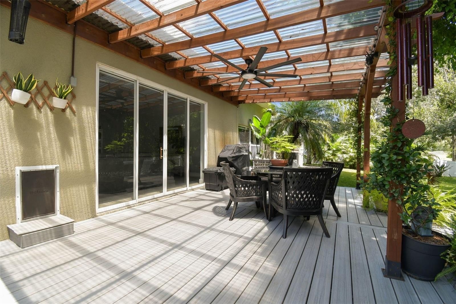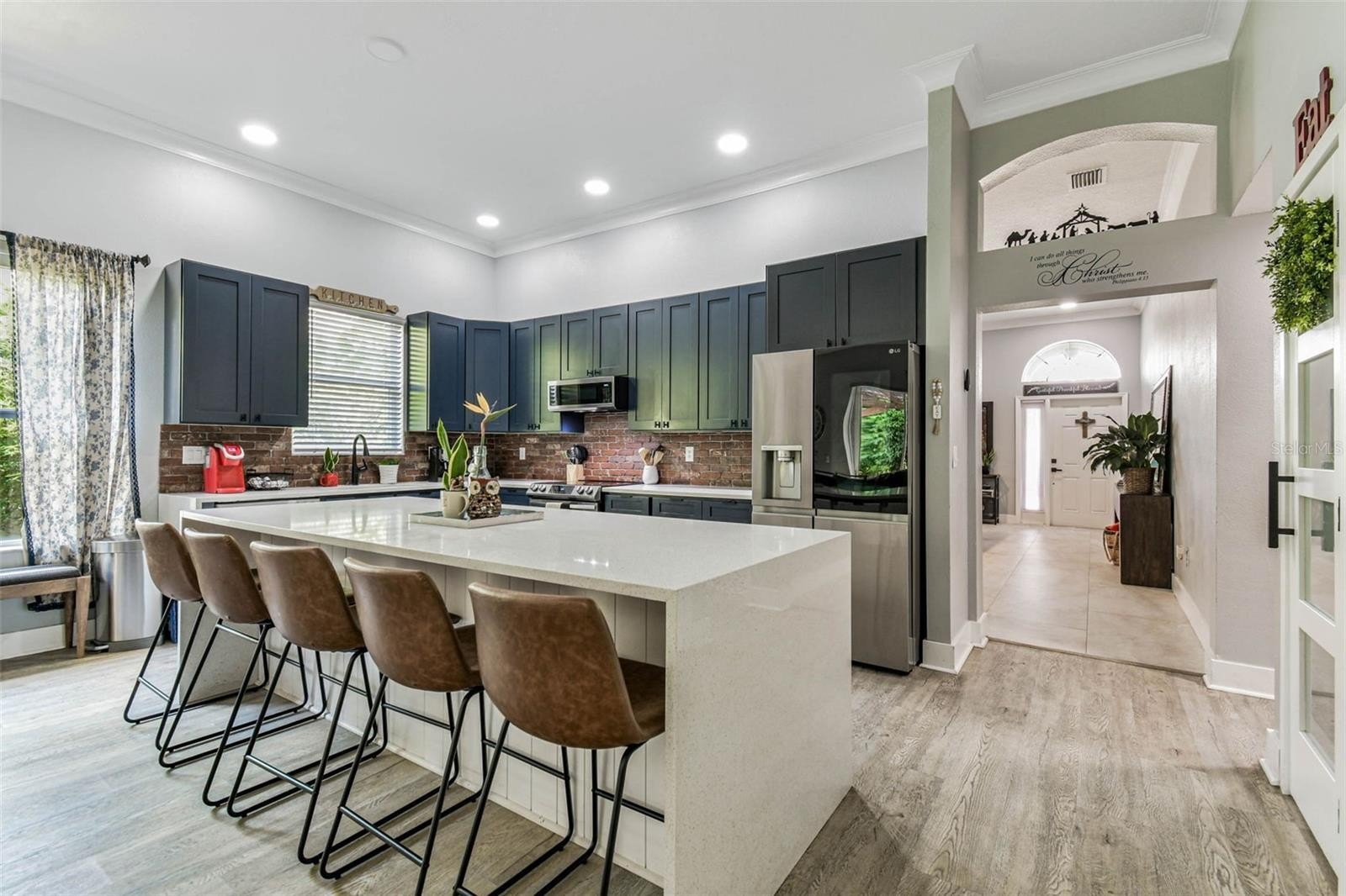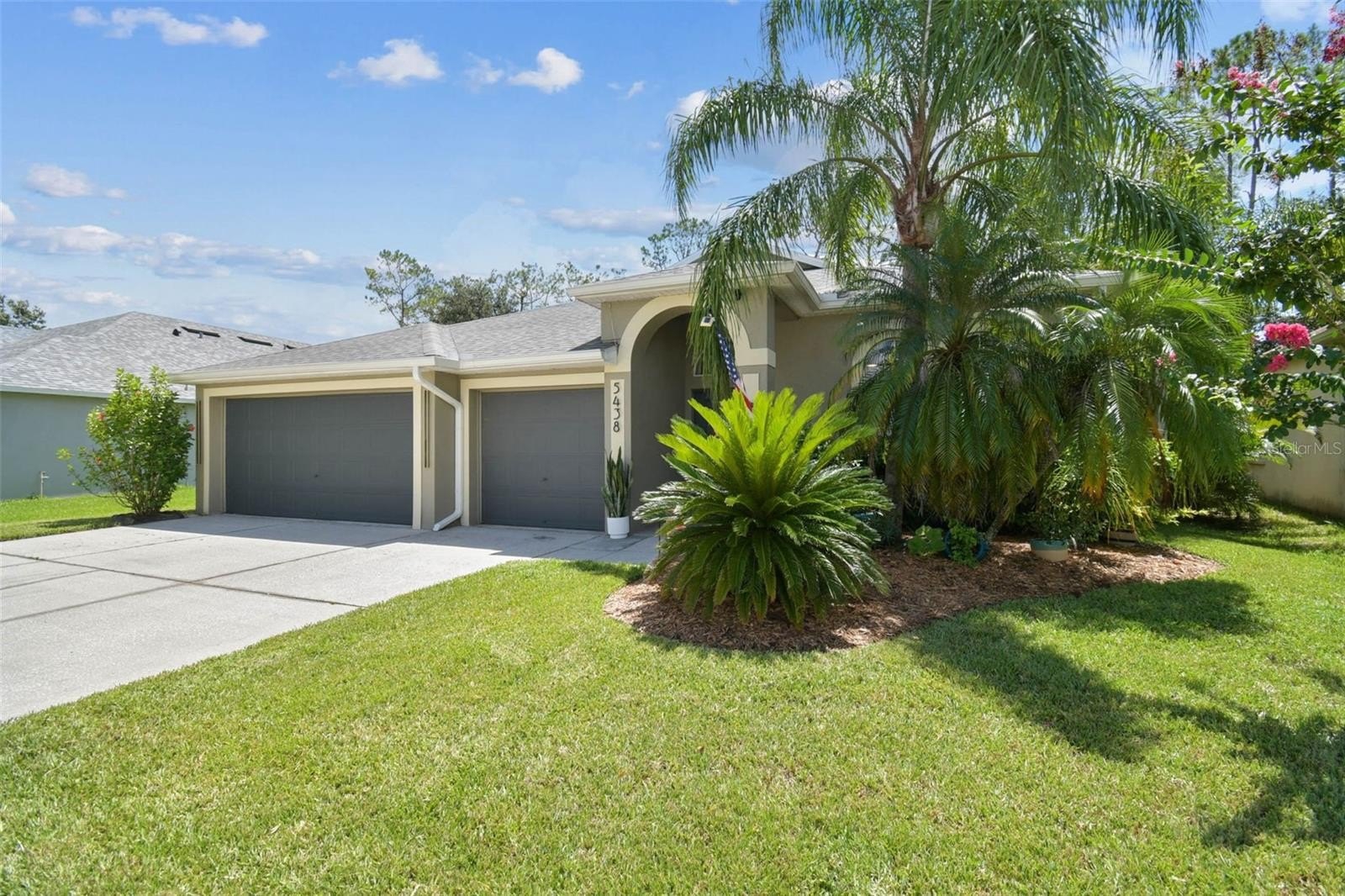 Stunning, Fully Renovated Golf Course Home – Designer Kitchen, 3-Car Garage & Private Garden Oasis! Discover this must-see home in the highly sought-after Lake Bernadette Golf Course community, where modern upgrades meet an unbeatable Wesley Chapel location. Every major update has been done—including a new roof (2023), luxury kitchen, flooring, and baths (2023), and high-efficiency AC (2019)—giving you years of worry-free living. Step inside to soaring ceilings throughout and an open, light-filled floor plan designed to impress. The custom designer kitchen is a showstopper, featuring a waterfall quartz island, high-end stainless steel appliances, rich navy cabinetry, and a striking brick backsplash—perfect for both everyday life and entertaining in style. Relax in the spacious living areas or retreat to your private backyard garden oasis, complete with lush tropical landscaping, a white vinyl fence, and a covered pergola with ceiling fan—an inviting space for morning coffee or evening gatherings. Additional highlights include a 3-car garage, resort-style community amenities (golf, tennis, and pool), and a prime Wesley Chapel location minutes from top-rated schools, shops, restaurants, and major highways. This home checks every box—location, updates, and lifestyle. Don’t wait—schedule your private showing today before it’s gone!