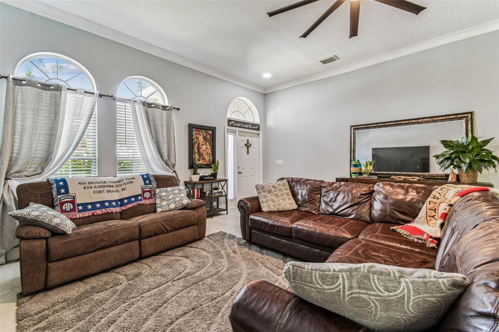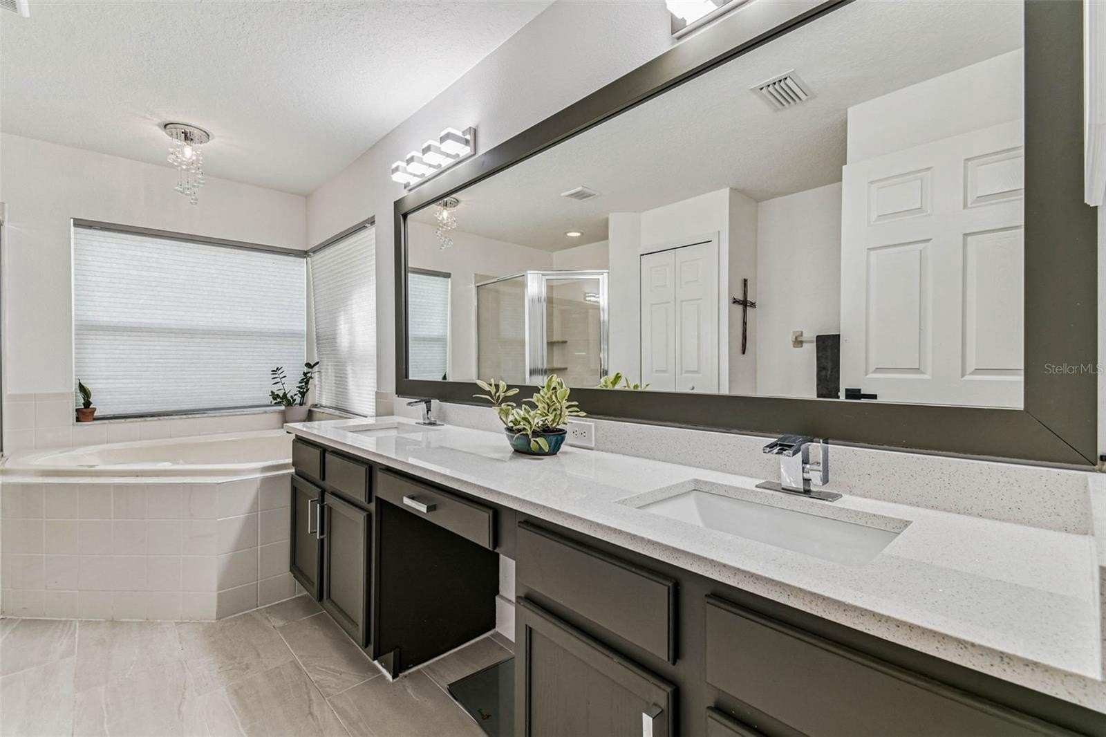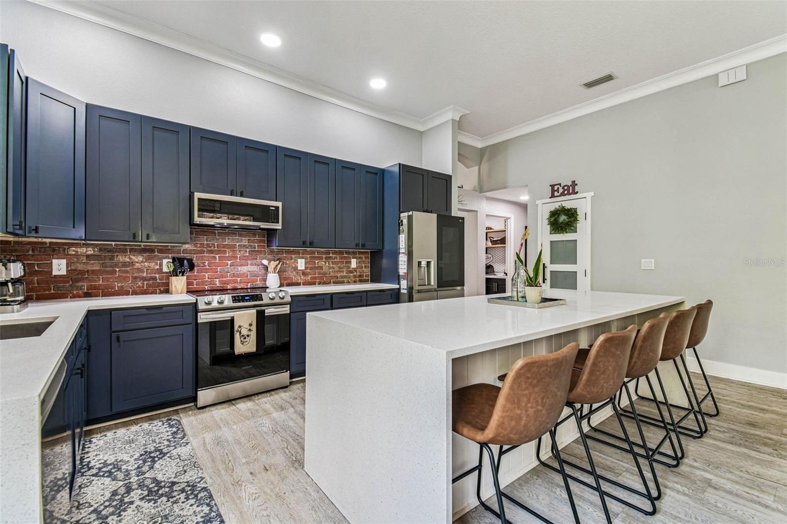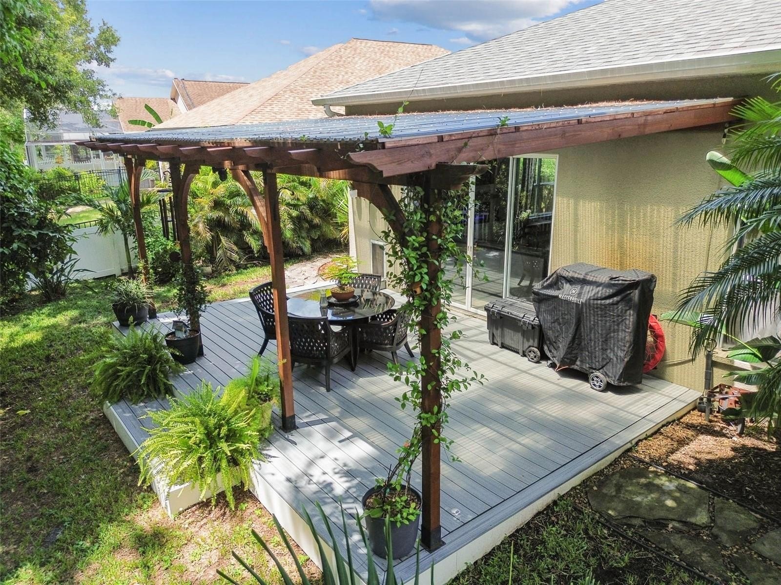 Stunning, Fully Renovated Golf Course Home – Designer Kitchen, 3-Car Garage & Private Garden Oasis! Discover this must-see home in the highly sought-after Lake Bernadette Golf Course community, where modern upgrades meet an unbeatable Wesley Chapel location. Every major update has been done—including a new roof (2023), luxury kitchen, flooring, and baths (2023), and high-efficiency AC (2019)—giving you years of worry-free living. Step inside to soaring ceilings throughout and an open, light-filled floor plan designed to impress. The custom designer kitchen is a showstopper, featuring a waterfall quartz island, high-end stainless steel appliances, rich navy cabinetry, and a striking brick backsplash—perfect for both everyday life and entertaining in style. Relax in the spacious living areas or retreat to your private backyard garden oasis, complete with lush tropical landscaping, a white vinyl fence, and a covered pergola with ceiling fan—an inviting space for morning coffee or evening gatherings. Additional highlights include a 3-car garage, resort-style community amenities (golf, tennis, and pool), and a prime Wesley Chapel location minutes from top-rated schools, shops, restaurants, and major highways. This home checks every box—location, updates, and lifestyle. Don’t wait—schedule your private showing today before it’s gone!