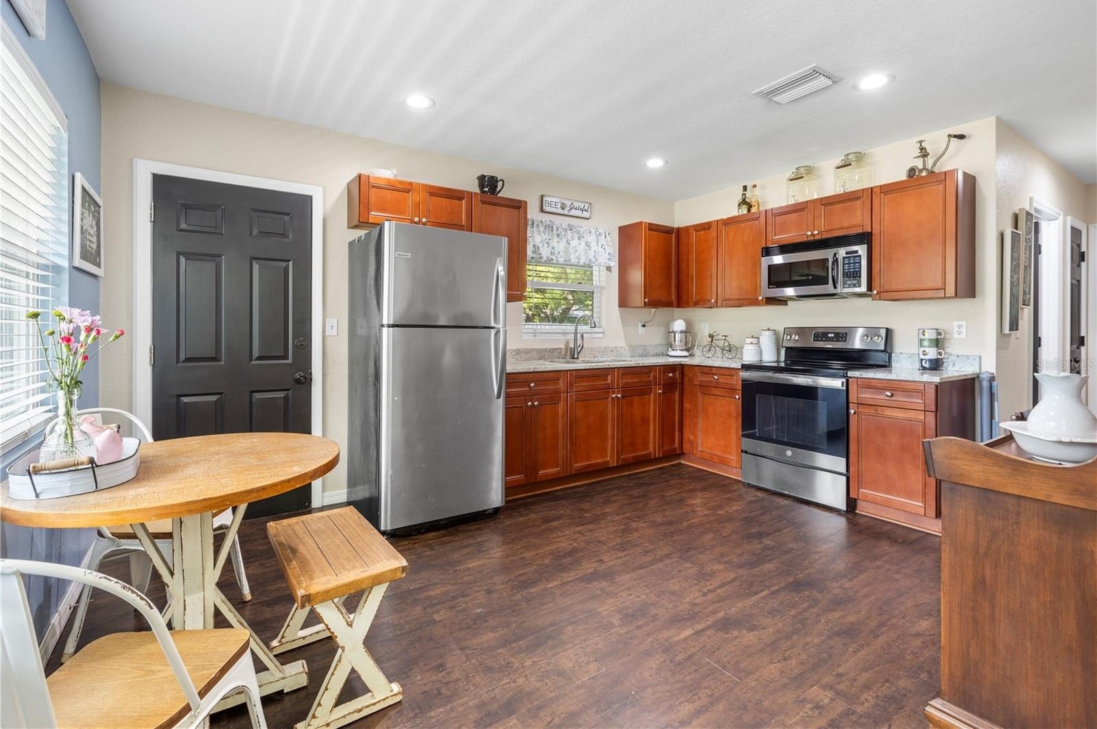 This beautifully updated 3-bedroom, 1-bathroom home in a well-established Brooksville neighborhood has been thoughtfully renovated since 2019 with high-quality upgrades throughout. Improvements include a new roof, HVAC system with ductwork, electrical panel, water heater, windows, and doors. The kitchen features solid wood cabinets, granite countertops, and stainless steel appliances, while the bathroom showcases modern finishes.