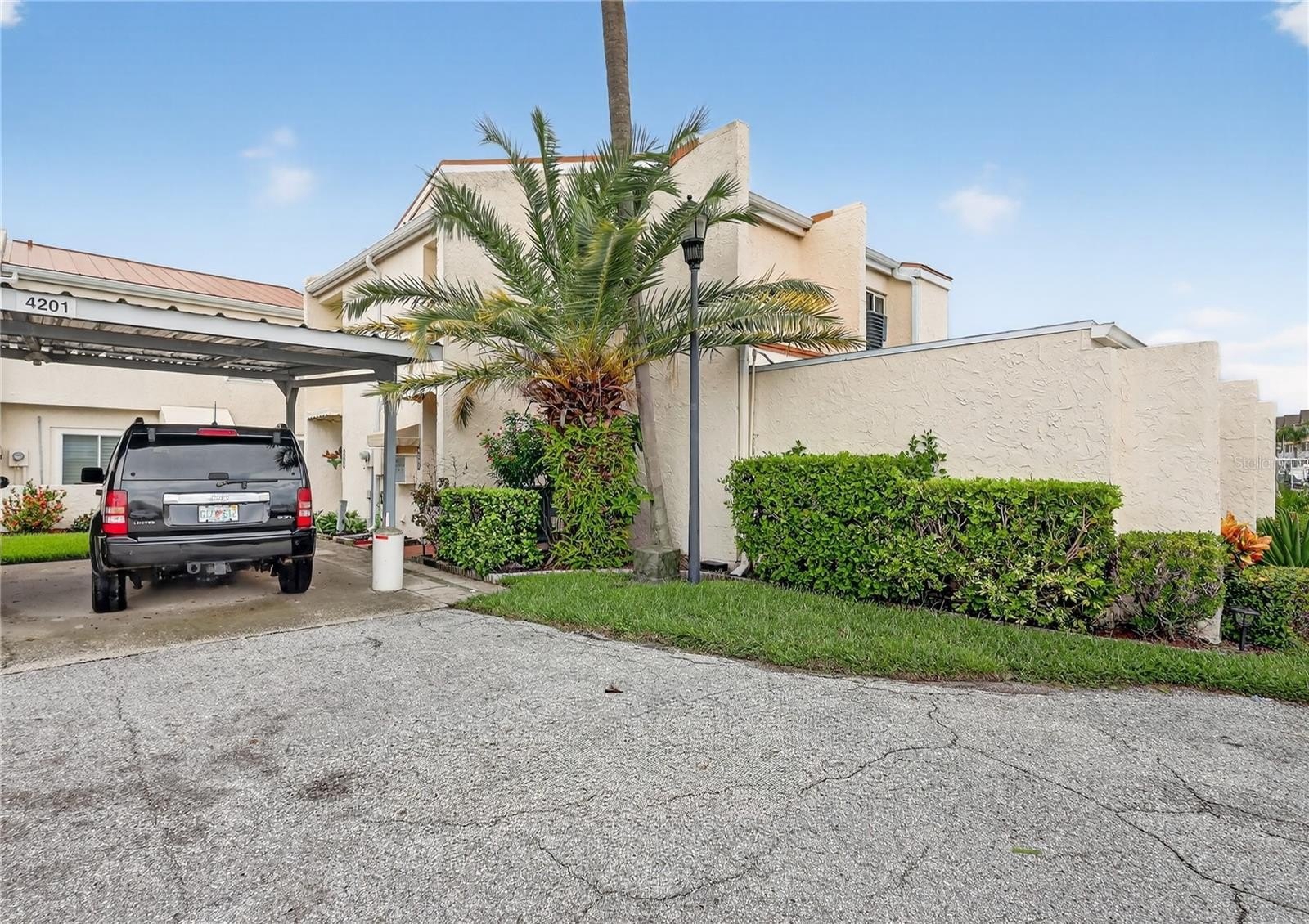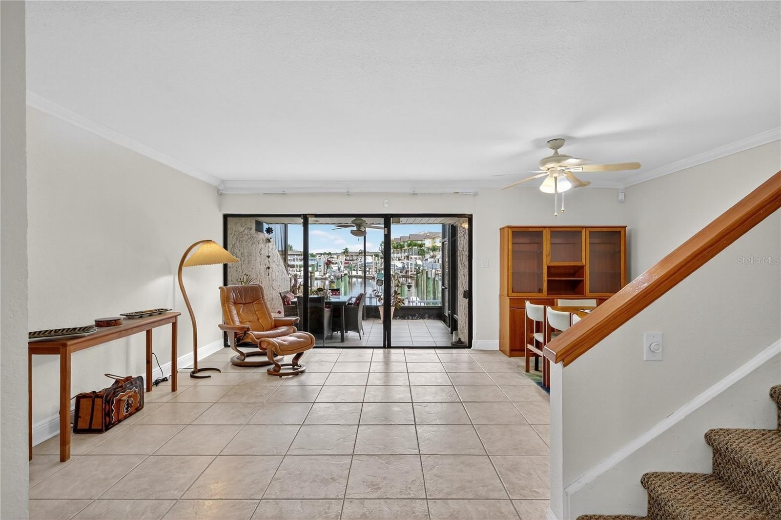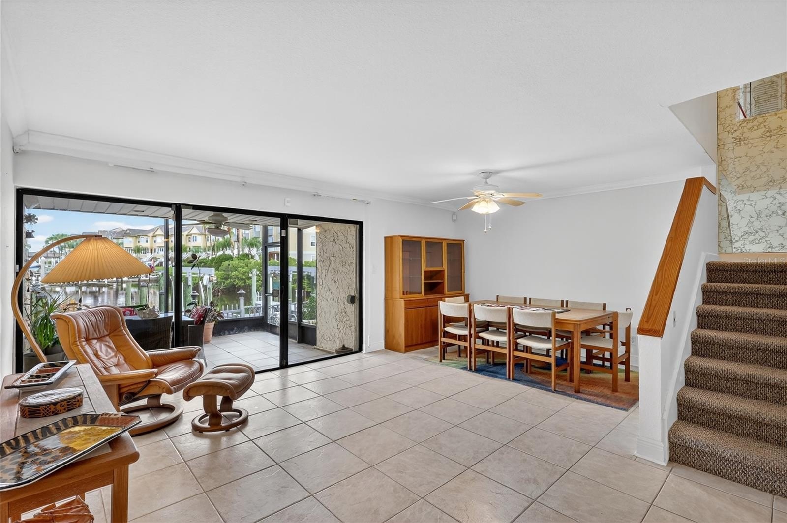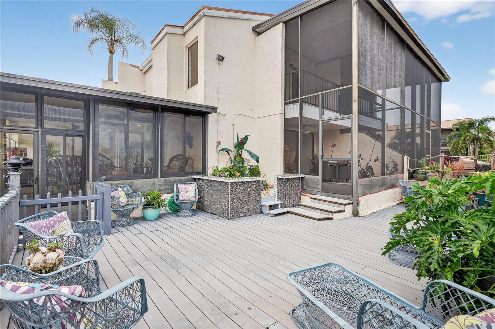 This captivating two-story condominium feels like the waterfront house you have always wanted, without the maintenance or the price. Enjoy an extra-large, 1,650 square foot, corner unit on the ground floor with 180 degrees of water views. Savor brilliant, tropical sunsets reflecting on the water from any of your three balconies or outdoor patio. All living areas overlook your boat lift and tranquil saltwater cove, giving you access to the warm waters of Tampa Bay. The open floor plan creates a comfortable living environment, seamlessly integrating the indoor and outdoor spaces. The renovated kitchen opens onto the family room and two walls of windows with water views. Upstairs, the primary bedroom offers ample space and direct access to the private screened balcony. The guest room is also upstairs. A private boat lift, 8-10K lbs, ideal for those with a passion for boating or water-based activities, is outside your back door, and the community pool and pickleball courts are just a block away. There is nobody above you in this townhouse-concept condo, and there is a carport next to your front door. The friendly community is just 15 minutes to Tampa International Airport, and the maintenance fee covers exterior maintenance, cable, flood insurance, and access to community amenities.