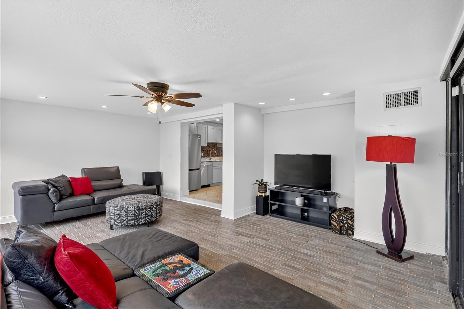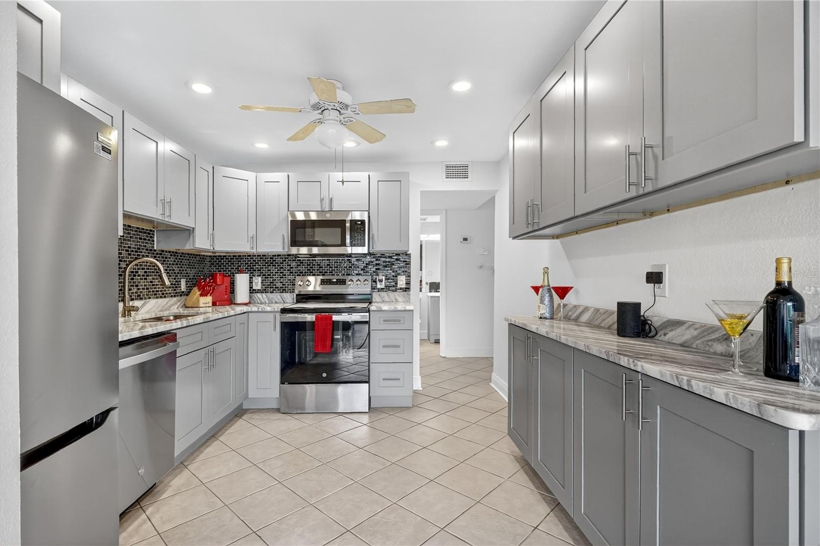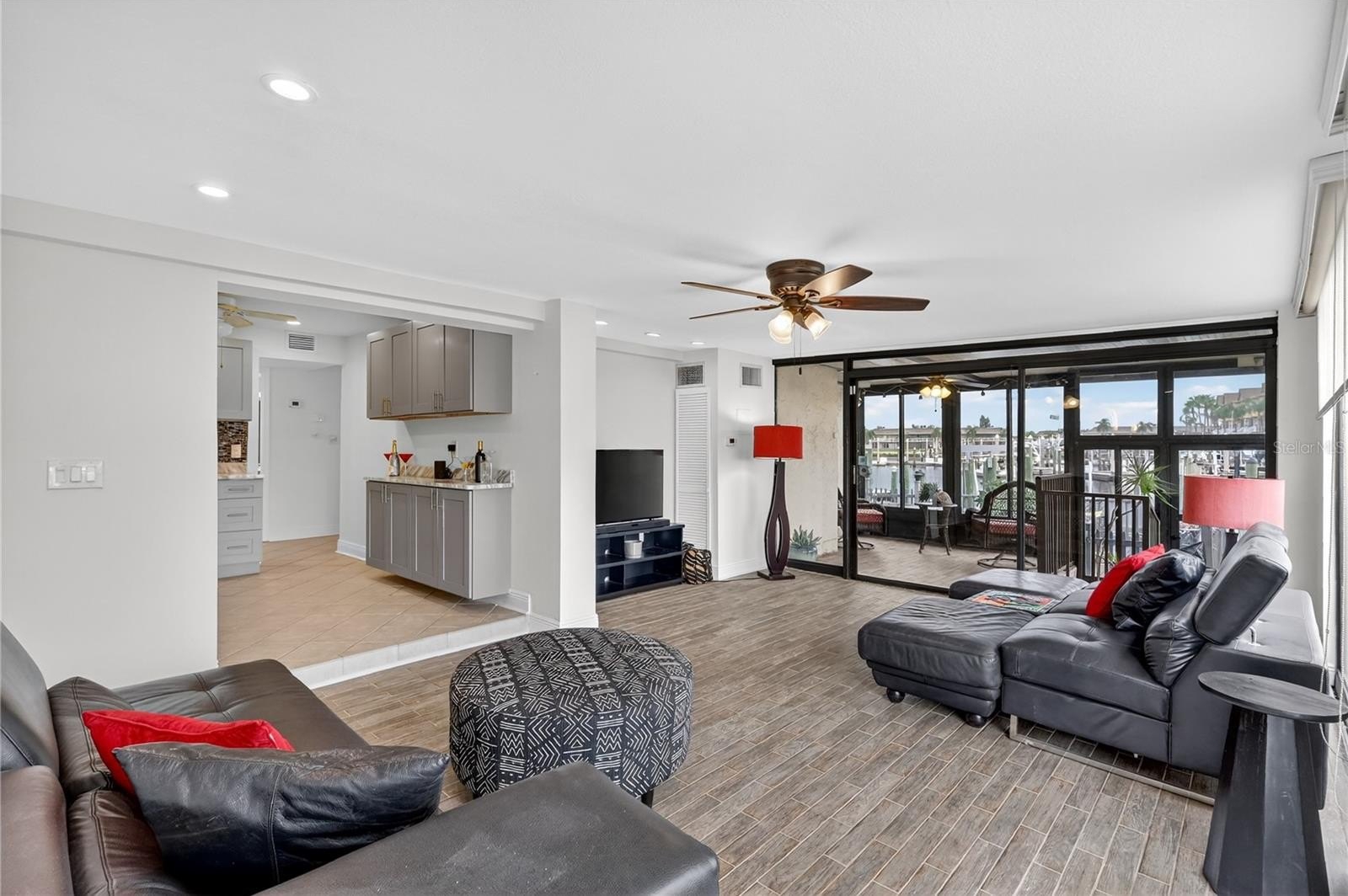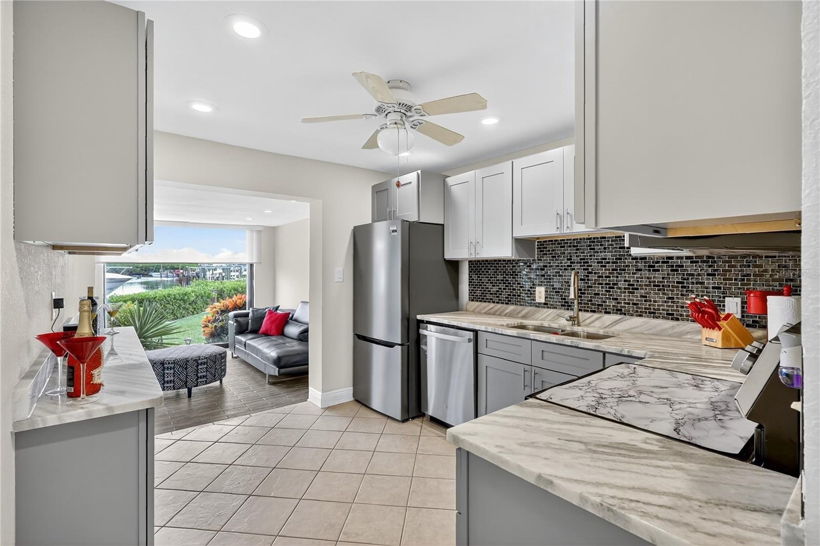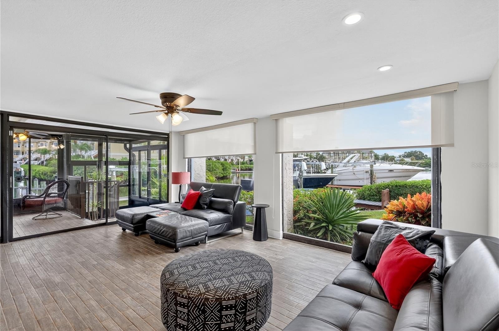 This captivating two-story condominium feels like the waterfront house you have always wanted, without the maintenance or the price. Enjoy an extra-large, 1,650 square foot, corner unit on the ground floor with 180 degrees of water views. Savor brilliant, tropical sunsets reflecting on the water from any of your three balconies or outdoor patio. All living areas overlook your boat lift and tranquil saltwater cove, giving you access to the warm waters of Tampa Bay. The open floor plan creates a comfortable living environment, seamlessly integrating the indoor and outdoor spaces. The renovated kitchen opens onto the family room and two walls of windows with water views. Upstairs, the primary bedroom offers ample space and direct access to the private screened balcony. The guest room is also upstairs. A private boat lift, 8-10K lbs, ideal for those with a passion for boating or water-based activities, is outside your back door, and the community pool and pickleball courts are just a block away. There is nobody above you in this townhouse-concept condo, and there is a carport next to your front door. The friendly community is just 15 minutes to Tampa International Airport, and the maintenance fee covers exterior maintenance, cable, flood insurance, and access to community amenities.