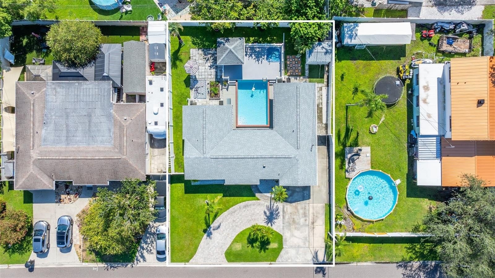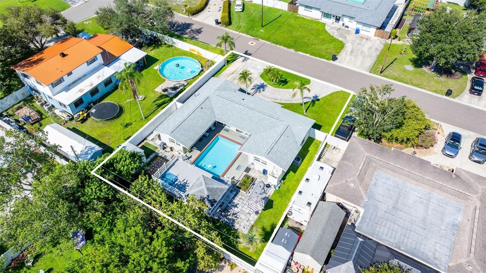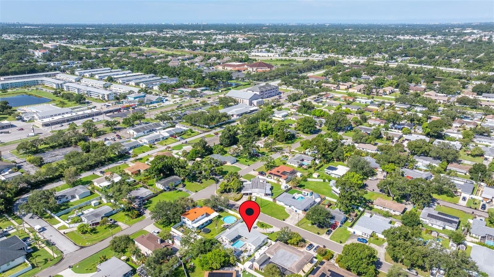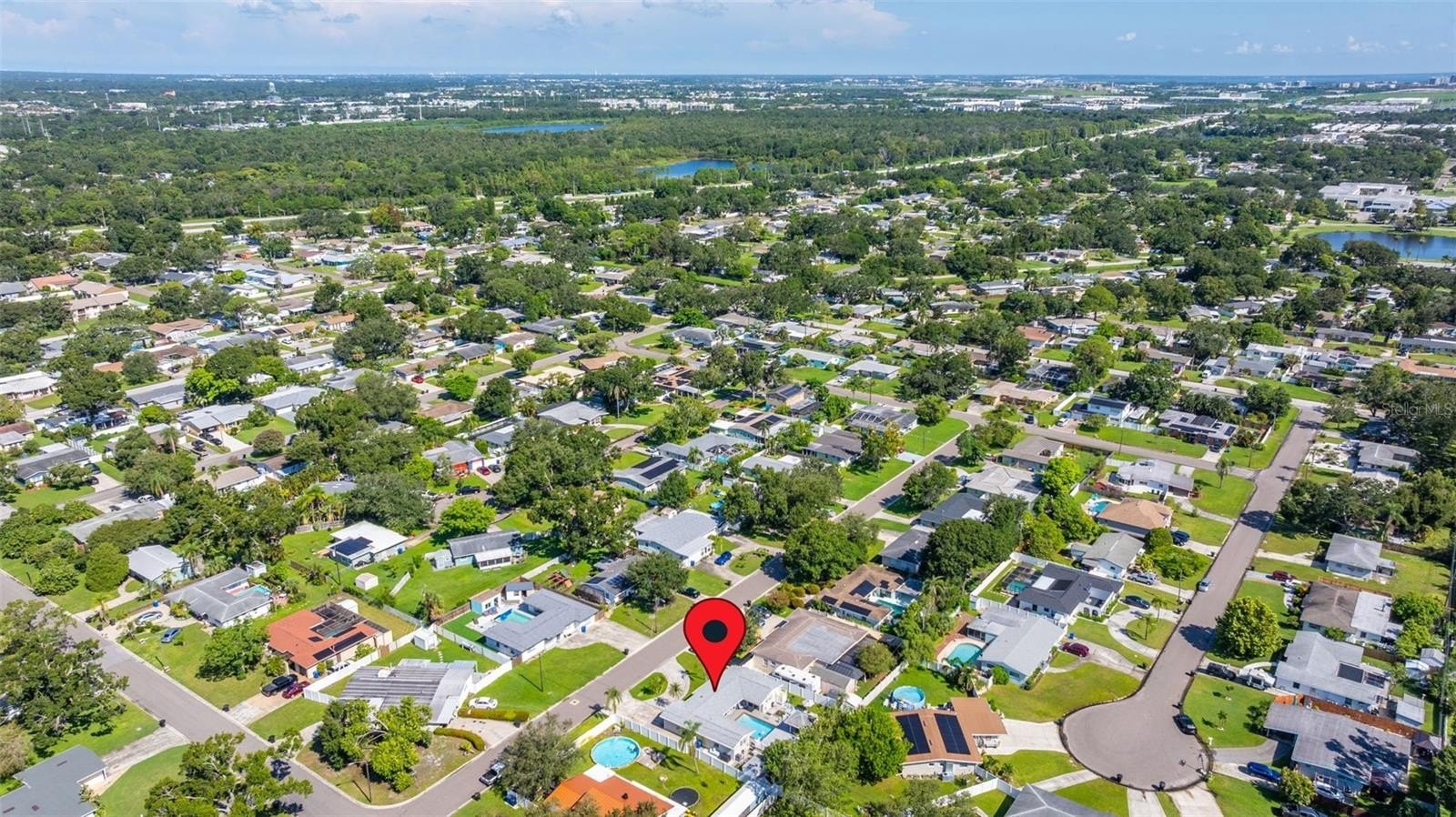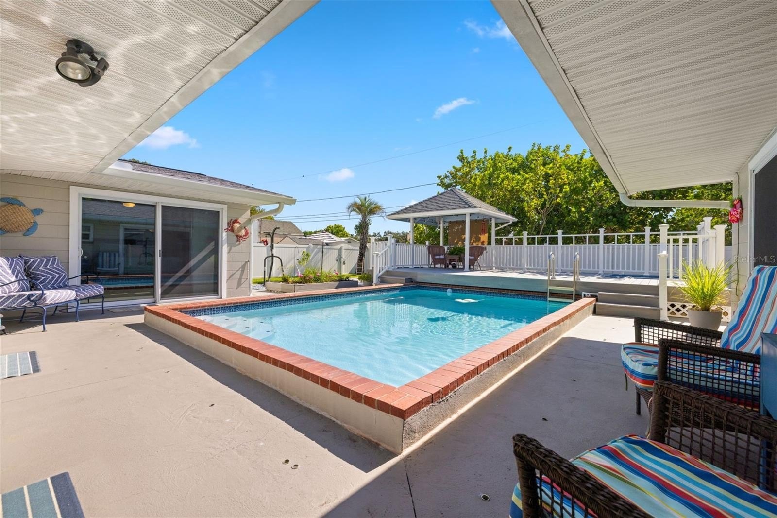 Resort-style living awaits in this beautifully updated 3-bedroom + BONUS ROOM, 2-bath, 1,419 sq ft POOL home in a desirable NON-FLOOD zone. Designed for both comfort and entertaining, the home welcomes you with an open floor plan where the living, dining, and kitchen spaces flow seamlessly together. Two expansive sets of sliding glass doors flood the interior with natural light and lead out to a private backyard oasis—complete with a sparkling pool, raised deck with hot tub, outdoor shower, and detached covered patio. The primary and secondary bedrooms each feature sliders overlooking the pool, blending indoor and outdoor living, while a versatile bonus room offers flexibility for a home office, gym, or media room. A separate laundry room adds convenience and functionality. Throughout the home, ceramic tile floors add a clean, modern touch and enhance the open, airy feel. Thoughtful updates provide peace of mind, including a new roof (2020), HVAC (2020) with the last service completed in June 2025 along with the installation of a new UV light, hurricane-rated Jeld-Wen sliding doors (2017 & 2019), resurfaced pool (2021), and a brand-new circular driveway (2024). Ample storage and outdoor living features make this home as functional as it is inviting. Perfectly located just minutes from downtown St. Petersburg’s vibrant dining, arts, and waterfront parks, with convenient access to Tampa International Airport and the Gulf beaches, this property offers the very best of Florida living.
