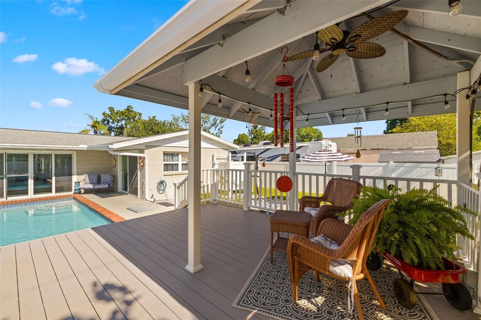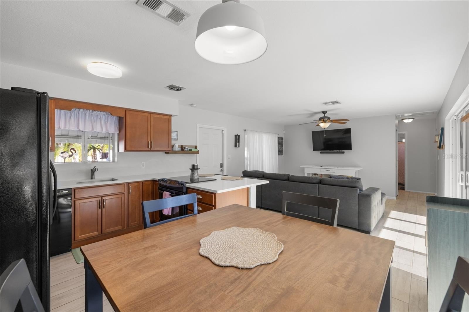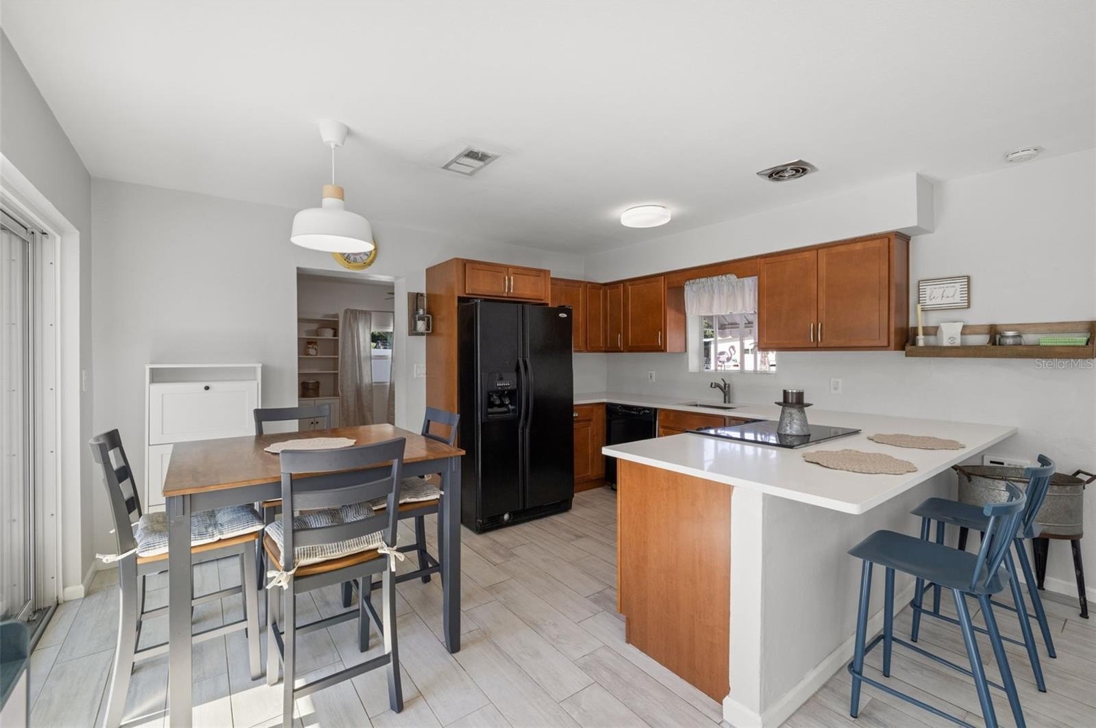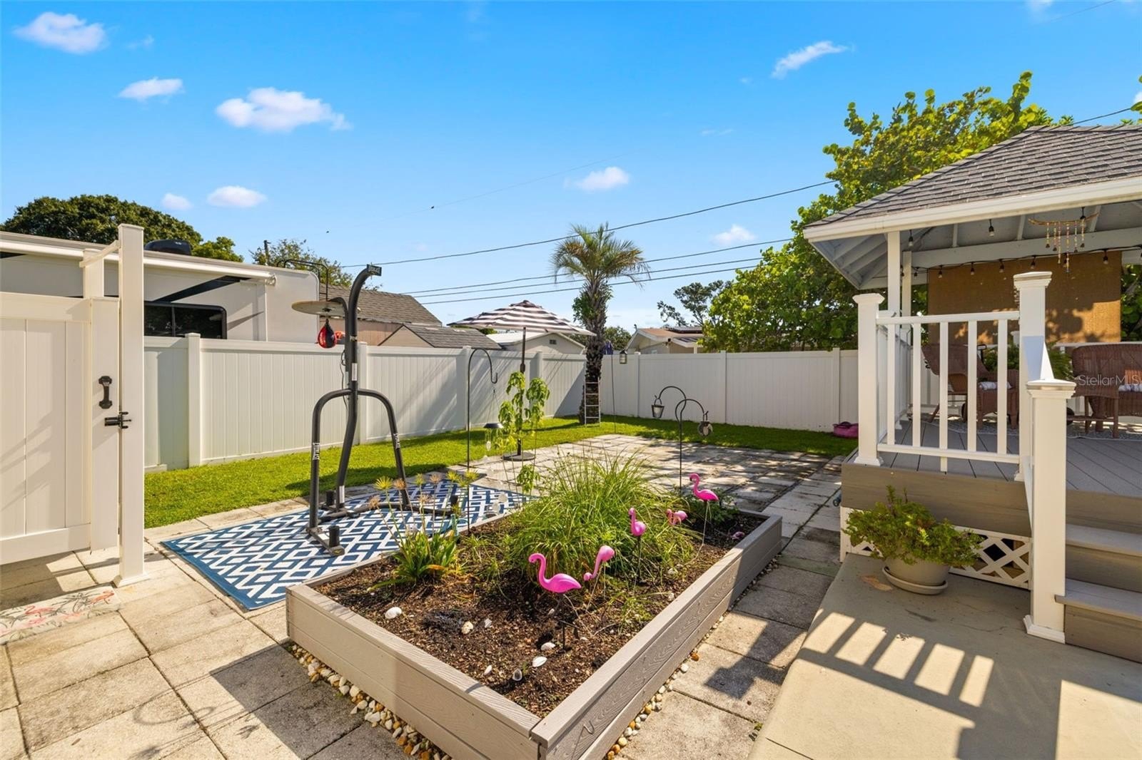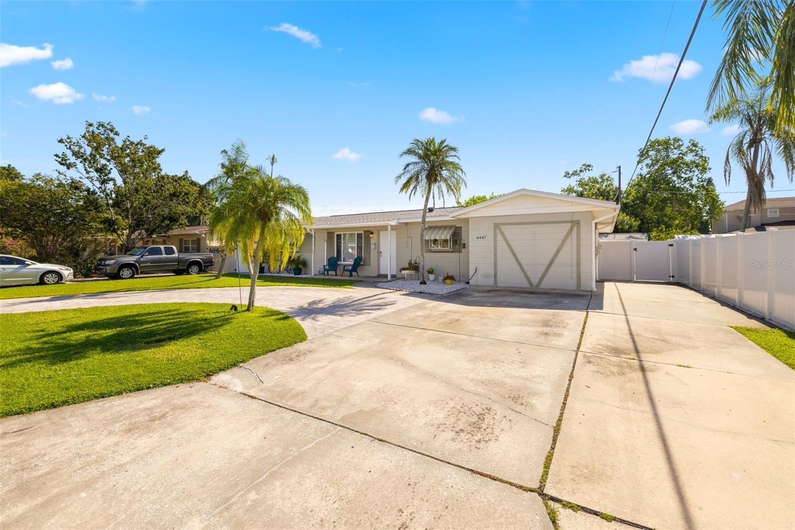 Resort-style living awaits in this beautifully updated 3-bedroom + BONUS ROOM, 2-bath, 1,419 sq ft POOL home in a desirable NON-FLOOD zone. Designed for both comfort and entertaining, the home welcomes you with an open floor plan where the living, dining, and kitchen spaces flow seamlessly together. Two expansive sets of sliding glass doors flood the interior with natural light and lead out to a private backyard oasis—complete with a sparkling pool, raised deck with hot tub, outdoor shower, and detached covered patio. The primary and secondary bedrooms each feature sliders overlooking the pool, blending indoor and outdoor living, while a versatile bonus room offers flexibility for a home office, gym, or media room. A separate laundry room adds convenience and functionality. Throughout the home, ceramic tile floors add a clean, modern touch and enhance the open, airy feel. Thoughtful updates provide peace of mind, including a new roof (2020), HVAC (2020) with the last service completed in June 2025 along with the installation of a new UV light, hurricane-rated Jeld-Wen sliding doors (2017 & 2019), resurfaced pool (2021), and a brand-new circular driveway (2024). Ample storage and outdoor living features make this home as functional as it is inviting. Perfectly located just minutes from downtown St. Petersburg’s vibrant dining, arts, and waterfront parks, with convenient access to Tampa International Airport and the Gulf beaches, this property offers the very best of Florida living.
