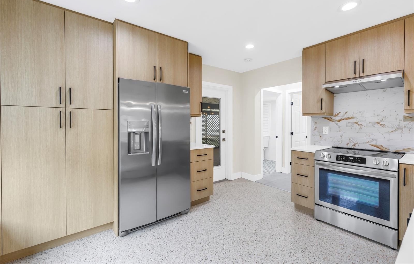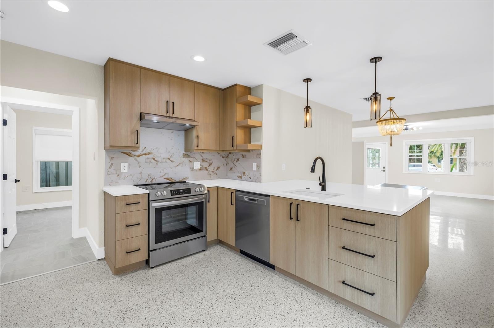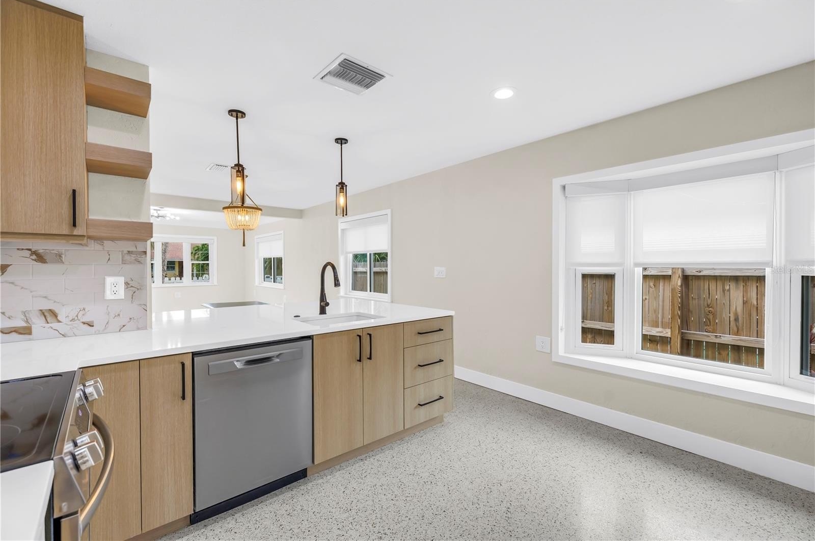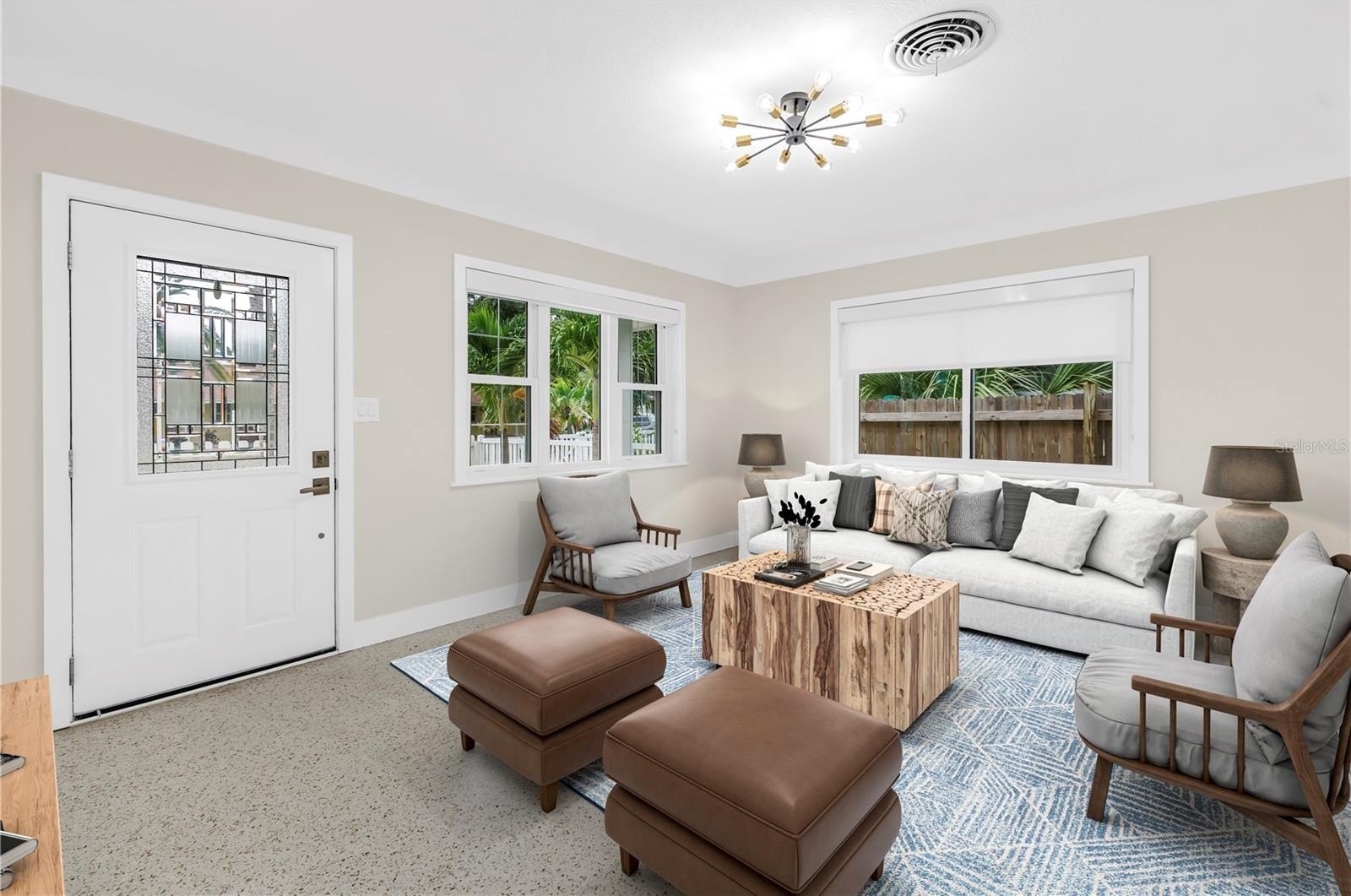 One or more photo(s) has been virtually staged. Just three blocks from the heart of Gulfport, this fully remodeled 3-bedroom, 2-bathroom block home puts you right in the middle of one of the most vibrant communities in Florida. Gulfport is known for its artistic, waterfront charm with lively festivals, art shows, a marina, and an incredible selection of local restaurants. It is the perfect location to enjoy it all! Inside, the home features an open and light-filled floor plan with a custom kitchen showcasing Londos cabinetry, quartz countertops, new Kitchen-Aid Gallery appliances, updated windows, and coastal finishes throughout. Updates include new bathrooms, doors, lighting, hot water heater, and the patio/carport roof was replaced in 2023. There are three spacious bedrooms, with the middle room also serving perfectly as a den or home office. Step outside to an expansive covered patio ideal for entertaining or relaxing Florida-style evenings. The exterior offers a laundry room, storage shed, tropical landscaping, and a charming picket fence that completes the coastal vibe. This move-in-ready Gulfport gem is the perfect opportunity to enjoy the best of Florida living in an exciting community!