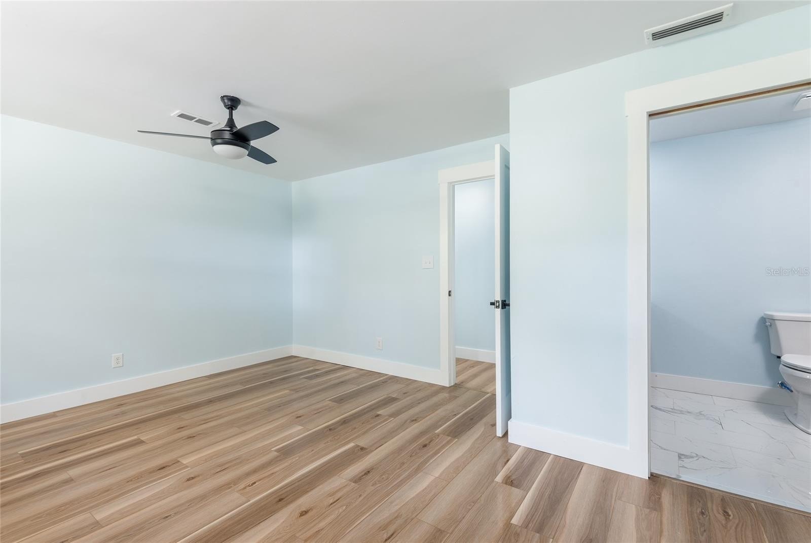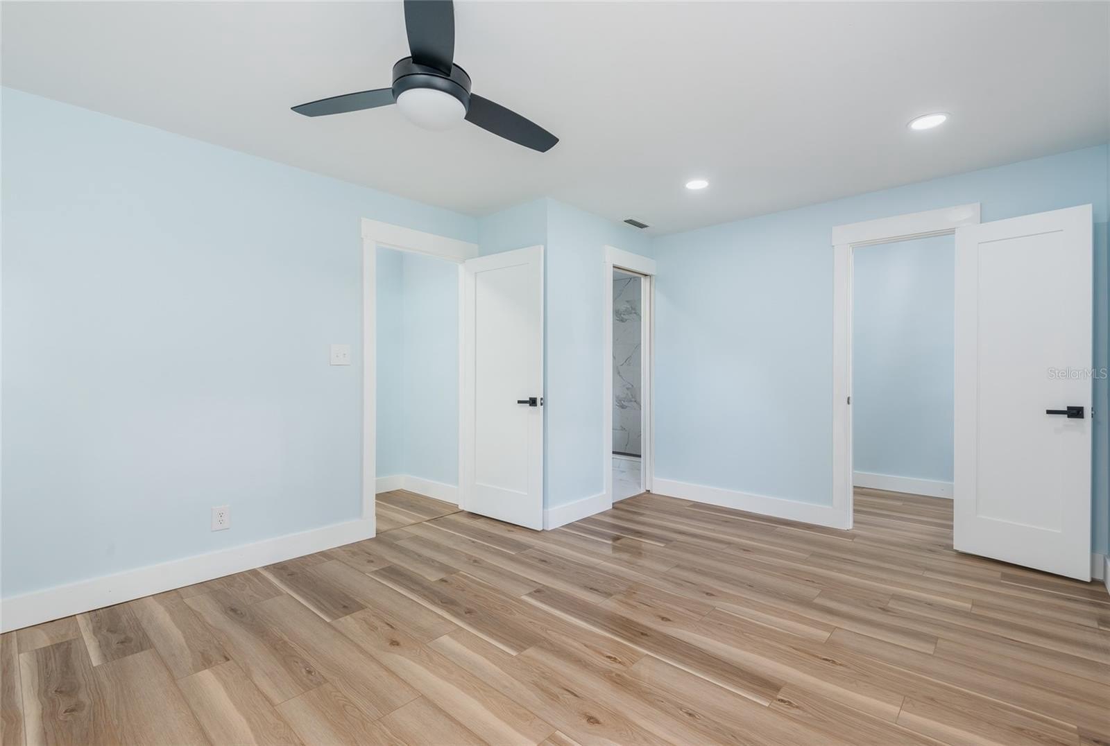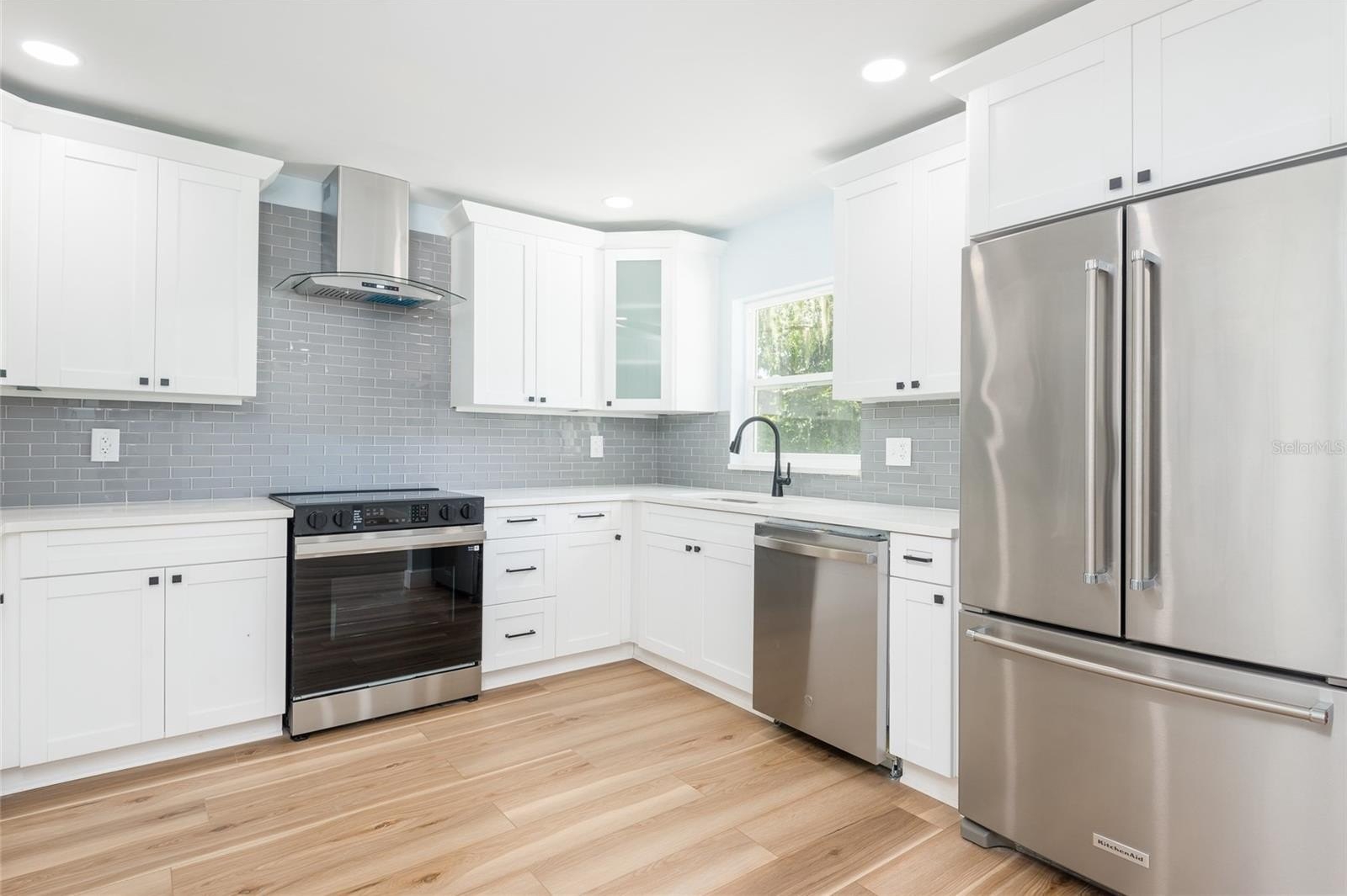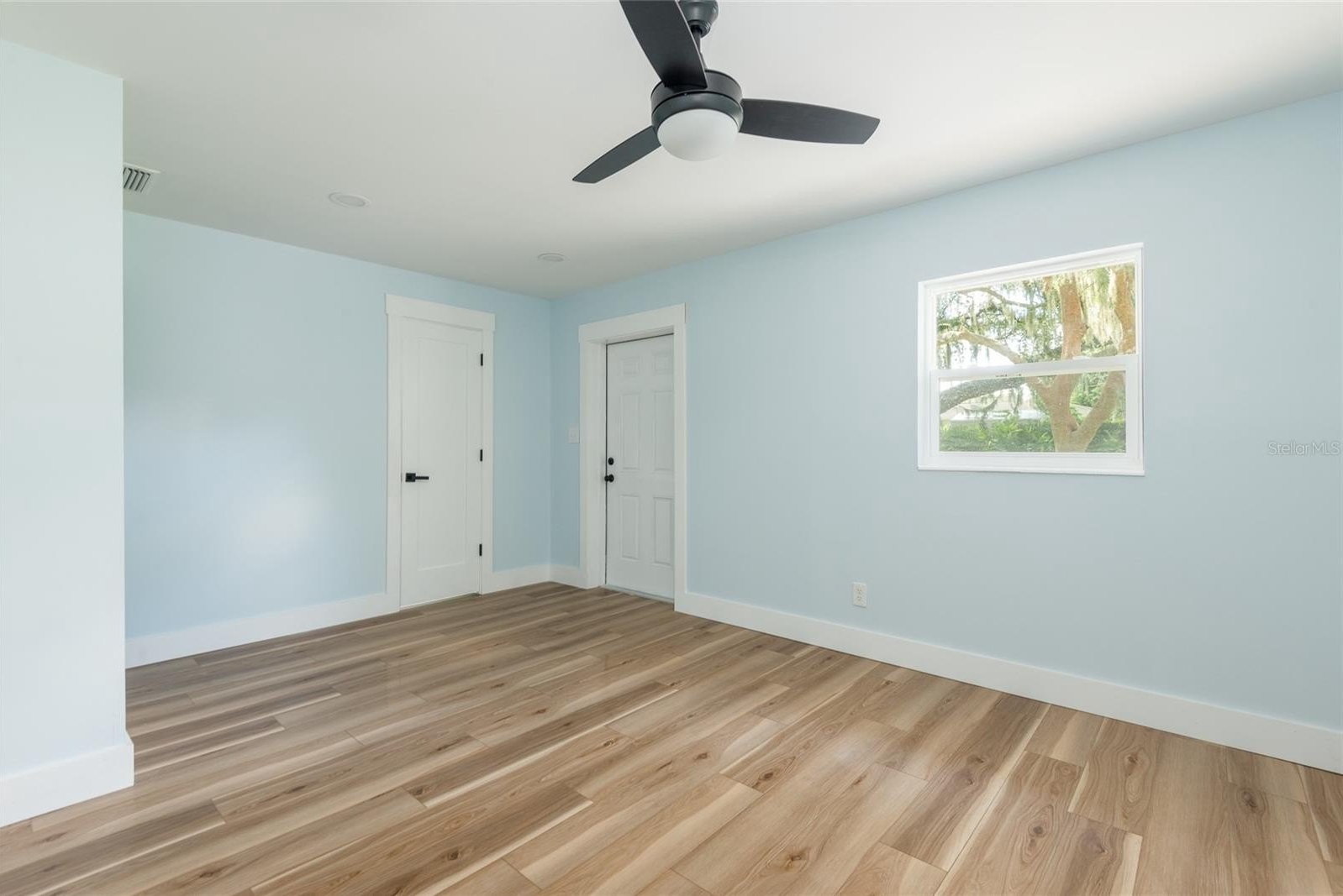 The Flow of the house is very functional. Starting with the nice size Primary bedroom (16x12) on the opposite side of the house that features a walk-in closet, private entrance to the home and nicely update en-suite bathroom with 72 in vanity and double sinks. On the other side of the house are the 2 other bedrooms which share a Bathroom. Also on that side of the house is the 4th Bedroom with en-suite bathroom. The Kitchen is in center of home featuring new cabinets, 48-inch double pantry, Quartz Countertops, all new stainless-steel appliances, an exhaust fan above range, and tile Backsplash. Outside the backyard is fenced in. There is Plenty of space for RV, Boats and toys. No HOA. No CDD.