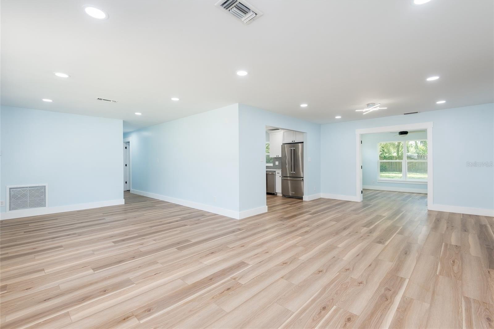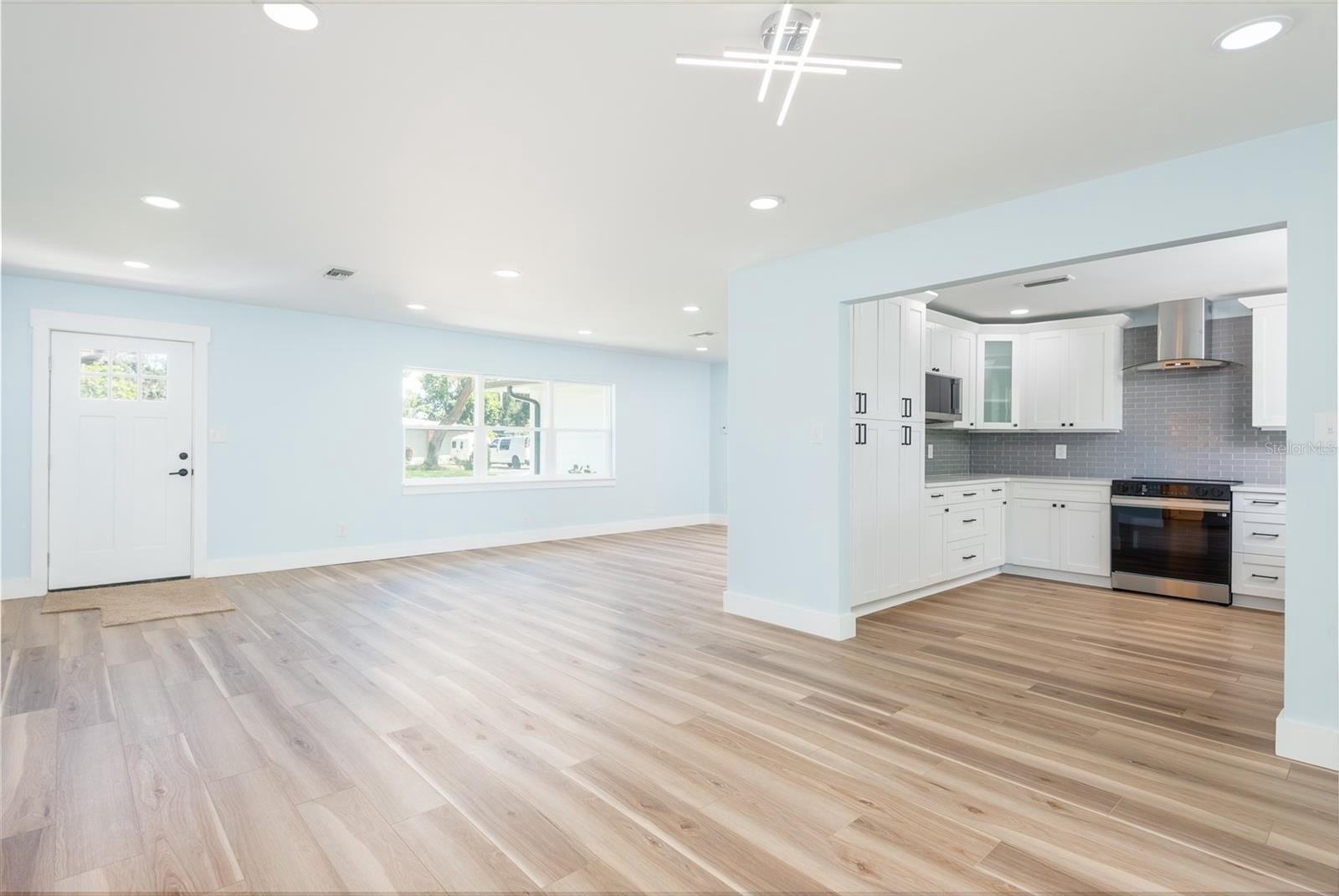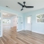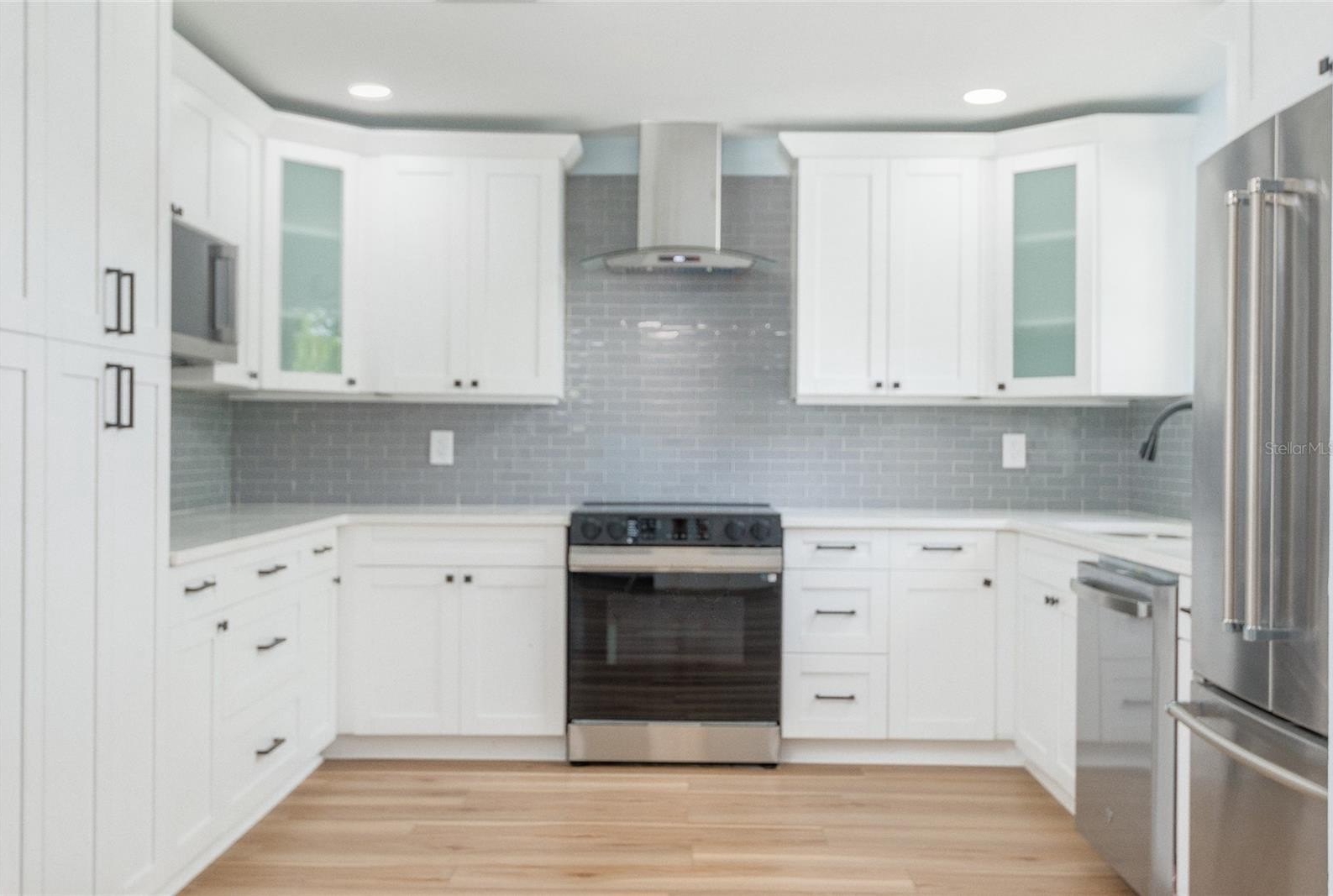 The Flow of the house is very functional. Starting with the nice size Primary bedroom (16x12) on the opposite side of the house that features a walk-in closet, private entrance to the home and nicely update en-suite bathroom with 72 in vanity and double sinks. On the other side of the house are the 2 other bedrooms which share a Bathroom. Also on that side of the house is the 4th Bedroom with en-suite bathroom. The Kitchen is in center of home featuring new cabinets, 48-inch double pantry, Quartz Countertops, all new stainless-steel appliances, an exhaust fan above range, and tile Backsplash. Outside the backyard is fenced in. There is Plenty of space for RV, Boats and toys. No HOA. No CDD.