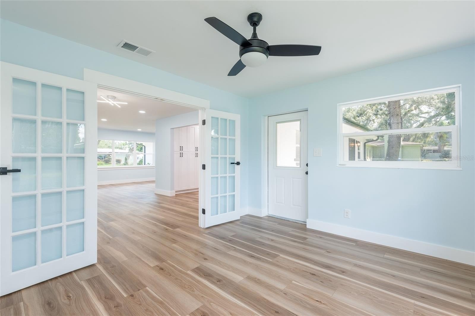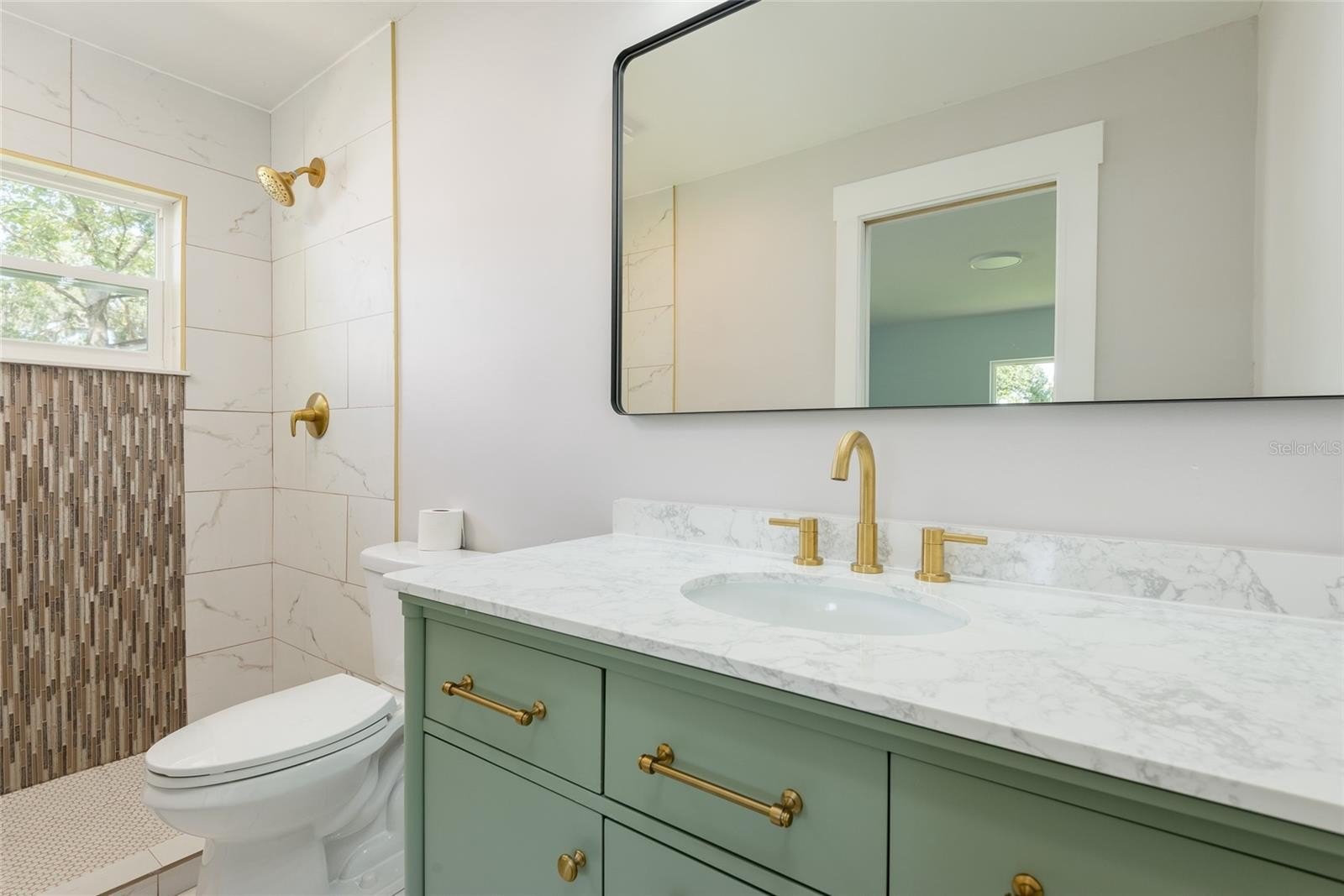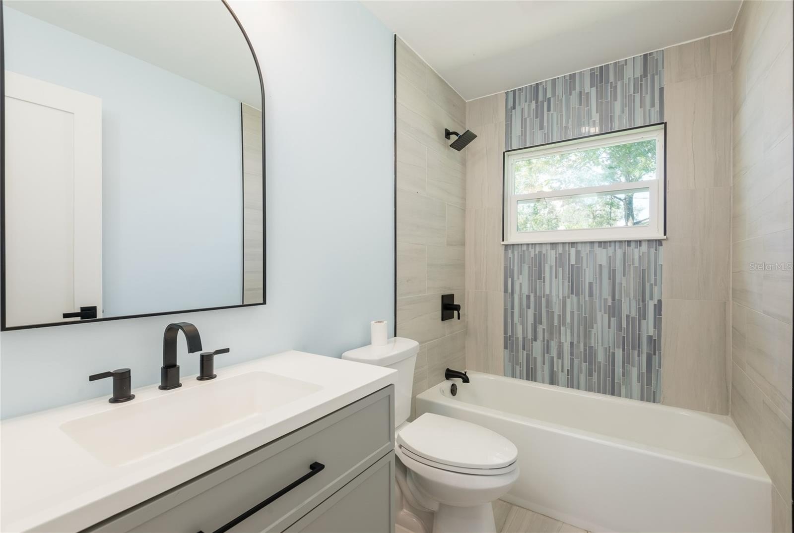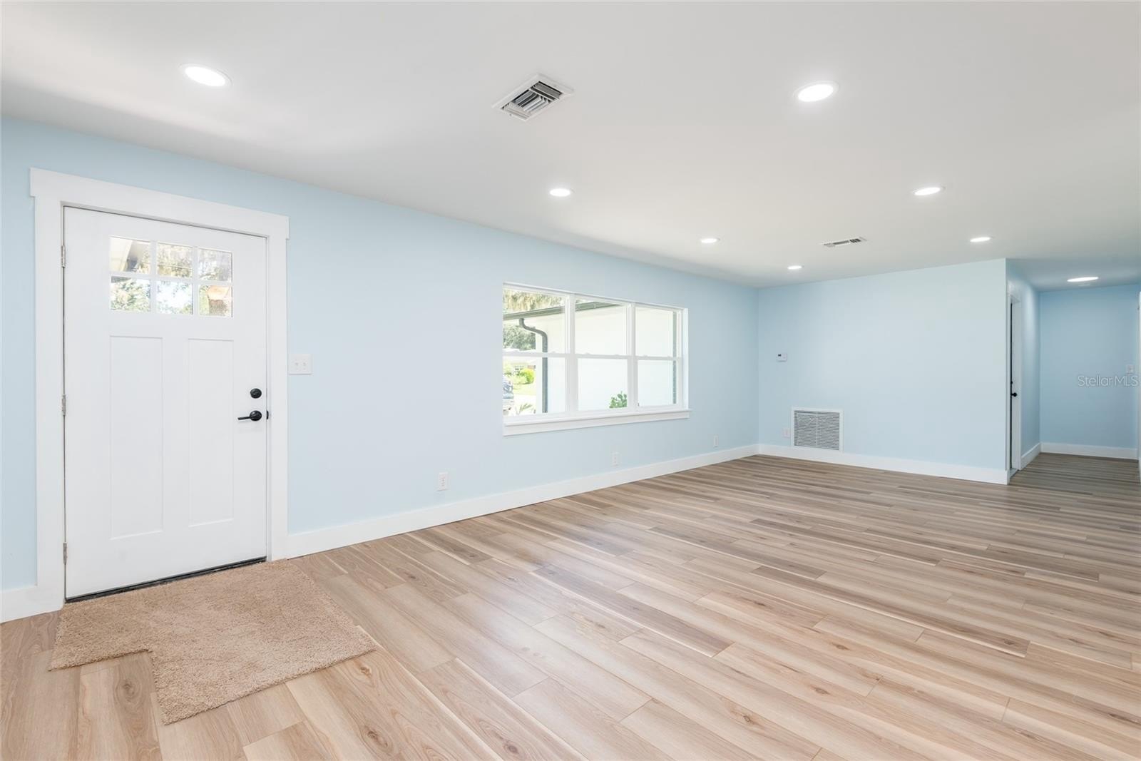 The Flow of the house is very functional. Starting with the nice size Primary bedroom (16x12) on the opposite side of the house that features a walk-in closet, private entrance to the home and nicely update en-suite bathroom with 72 in vanity and double sinks. On the other side of the house are the 2 other bedrooms which share a Bathroom. Also on that side of the house is the 4th Bedroom with en-suite bathroom. The Kitchen is in center of home featuring new cabinets, 48-inch double pantry, Quartz Countertops, all new stainless-steel appliances, an exhaust fan above range, and tile Backsplash. Outside the backyard is fenced in. There is Plenty of space for RV, Boats and toys. No HOA. No CDD.