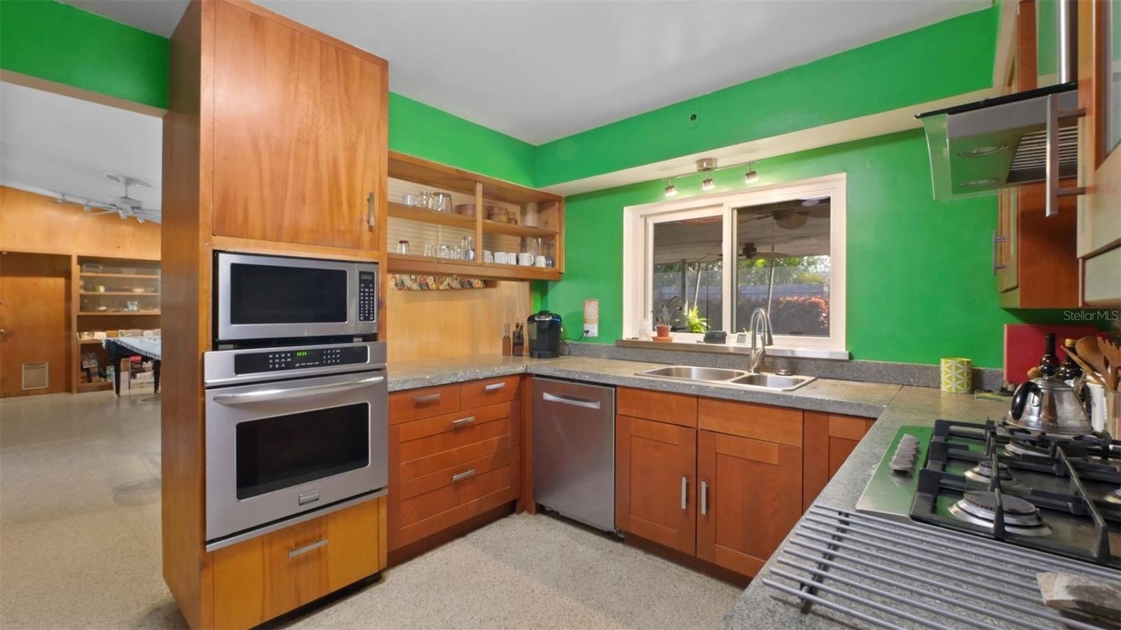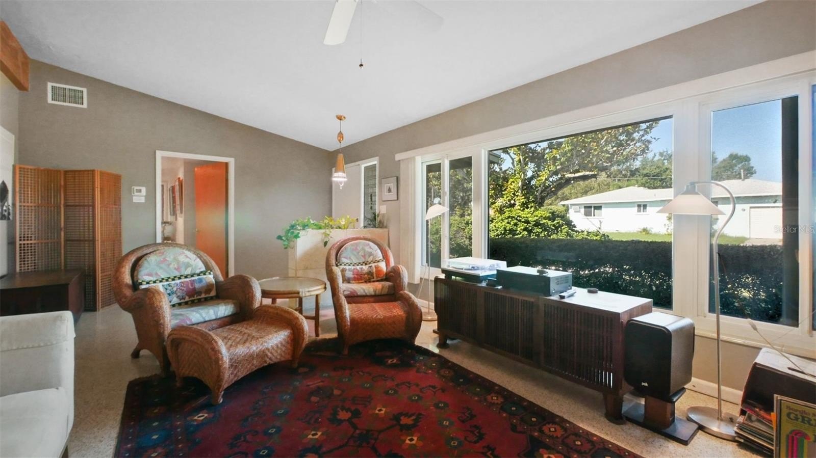 Perched on a corner lot in a Non-Food Insurance Required Area, the property offers peace of mind and plenty of space to enjoy both indoor and outdoor living. The backyard is your own retro paradise — complete with a shuffleboard court that’s ready for gatherings. So put on your Hawaiian shirt, tip your fedora, and invite your friends over for the perfect mid-century party!