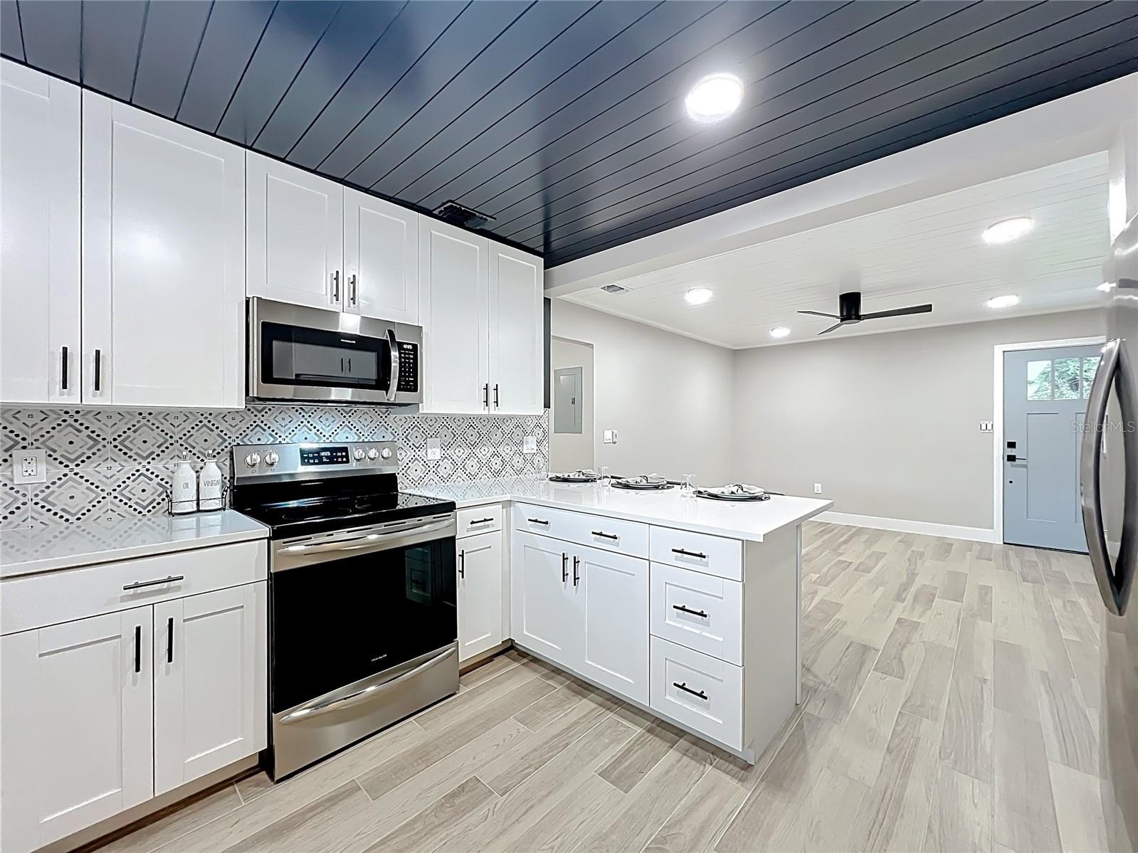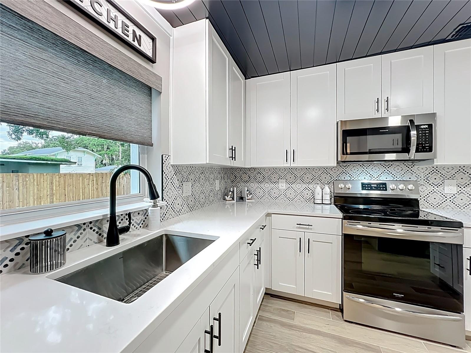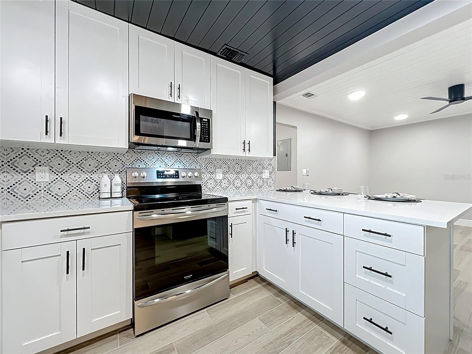 Each 2 bedroom/1 bath unit boosts a full custom kitchen with 42” shaker cabinets, quartz countertops, tile backsplash and Frigidaire stainless steel appliances.