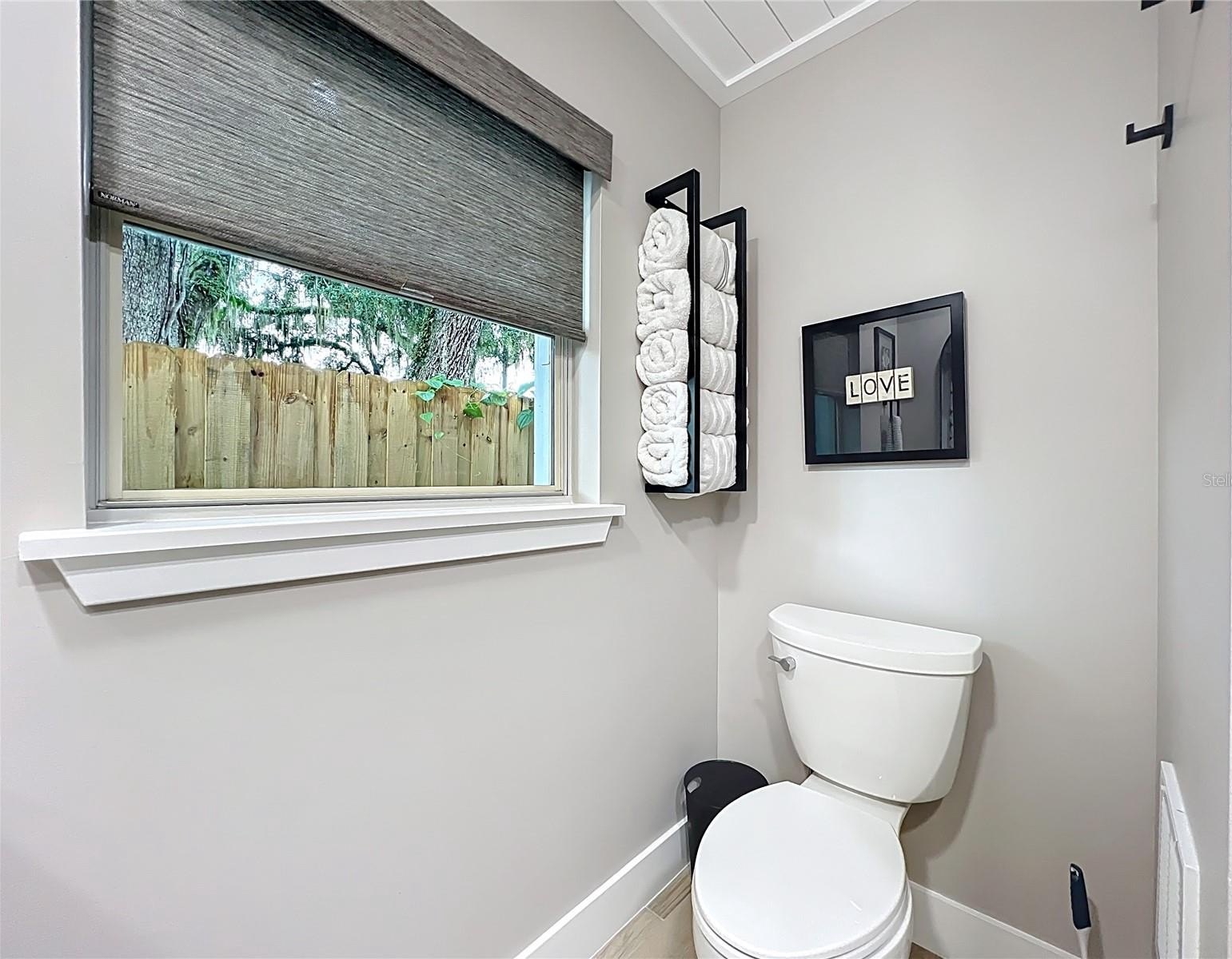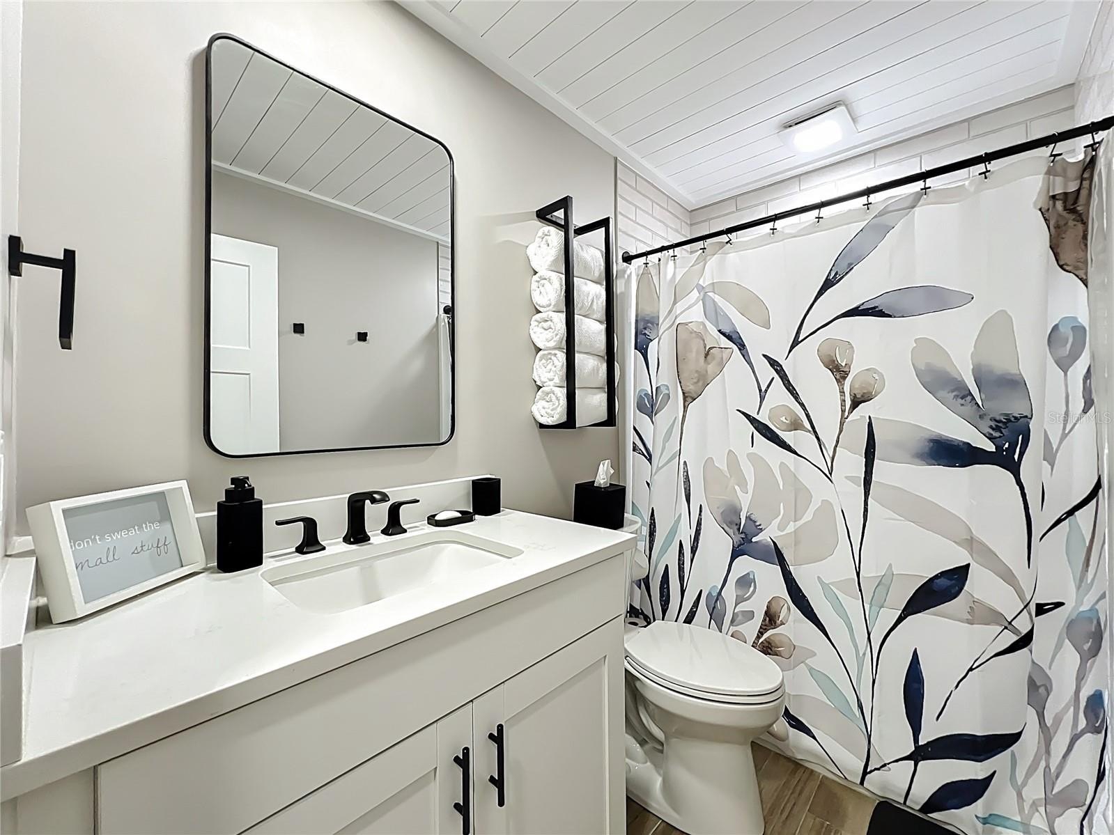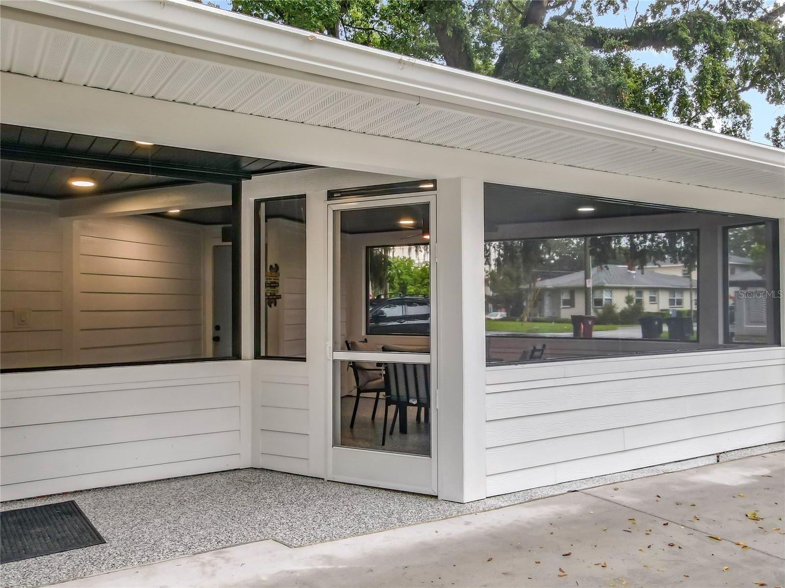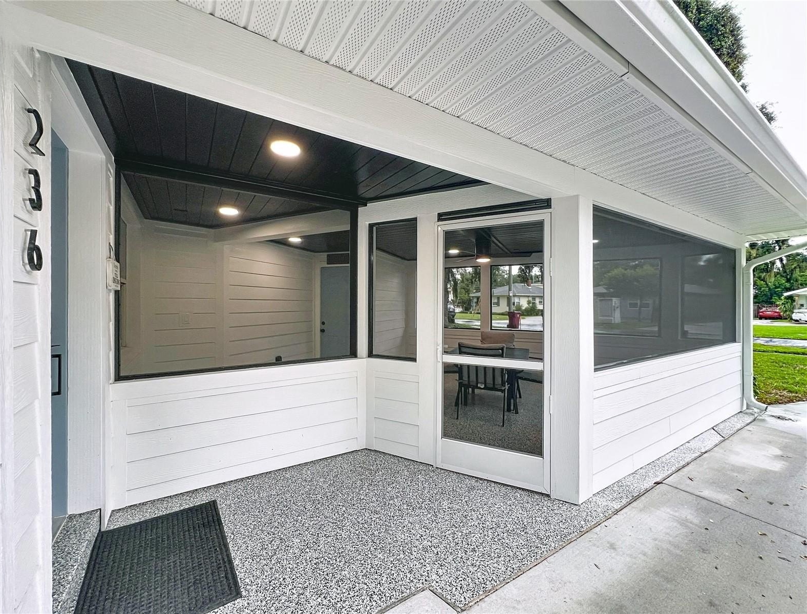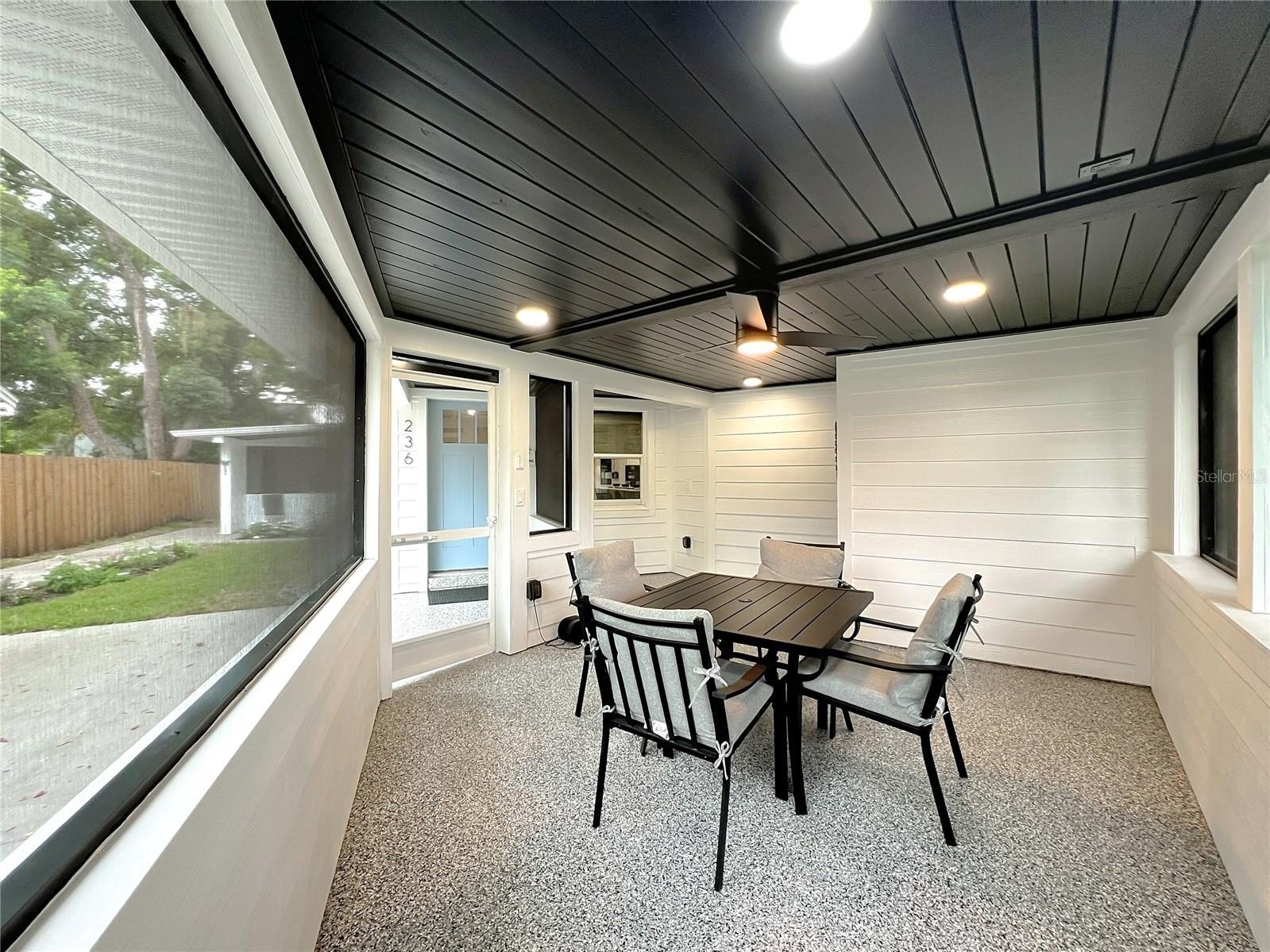 The custom epoxy floors, ceiling fans and a set of table and chairs make the screened in porch area an exceptional place to relax after a long day of work. There are also water closets with new water heaters and additional storage in the screened in porch areas.