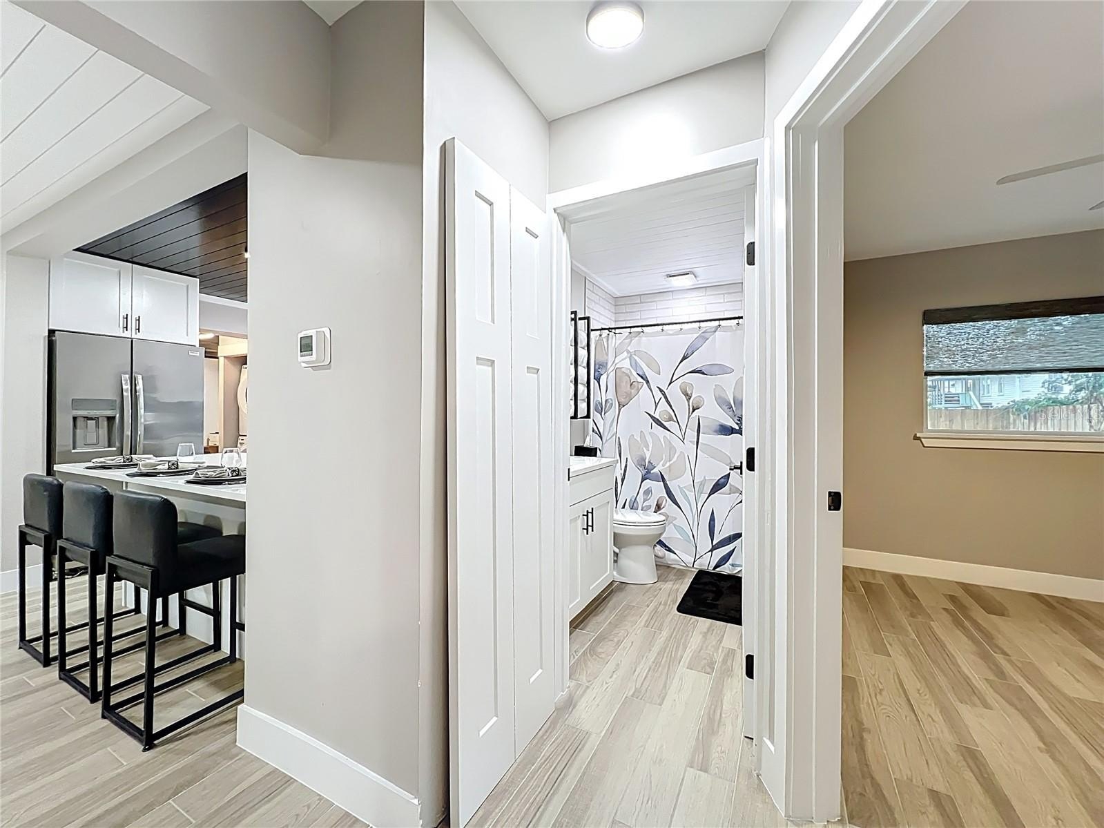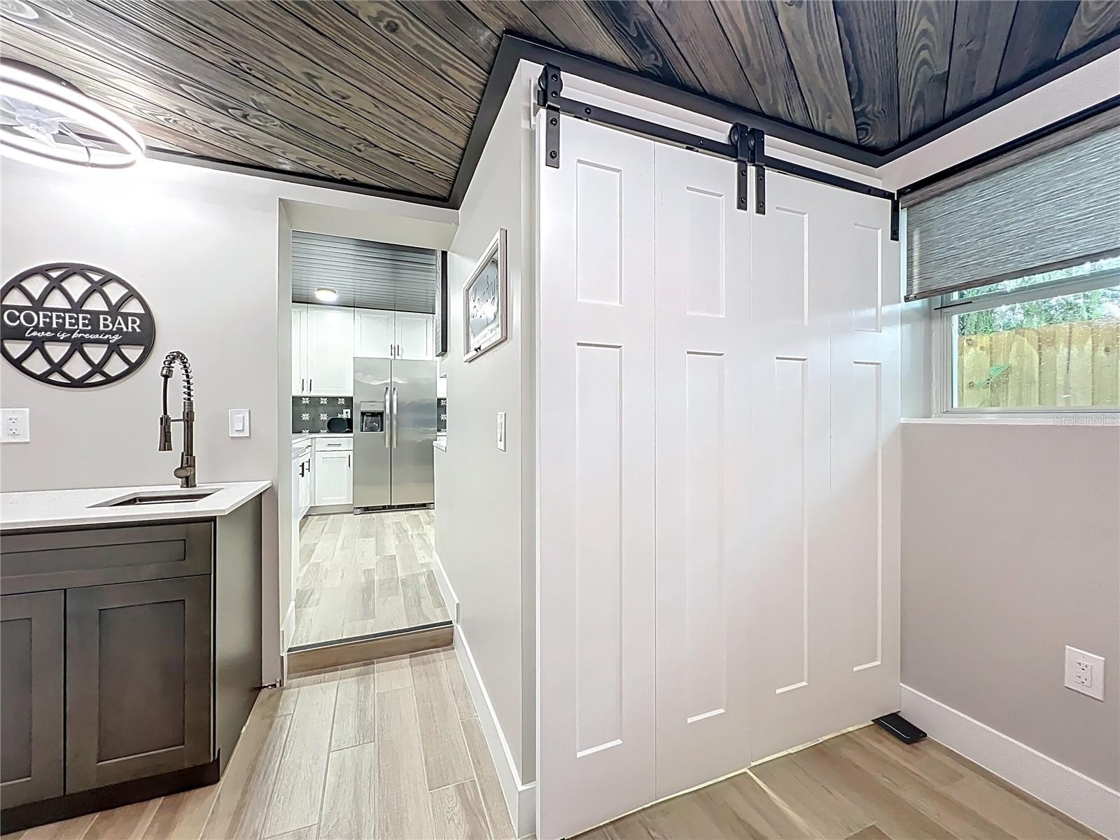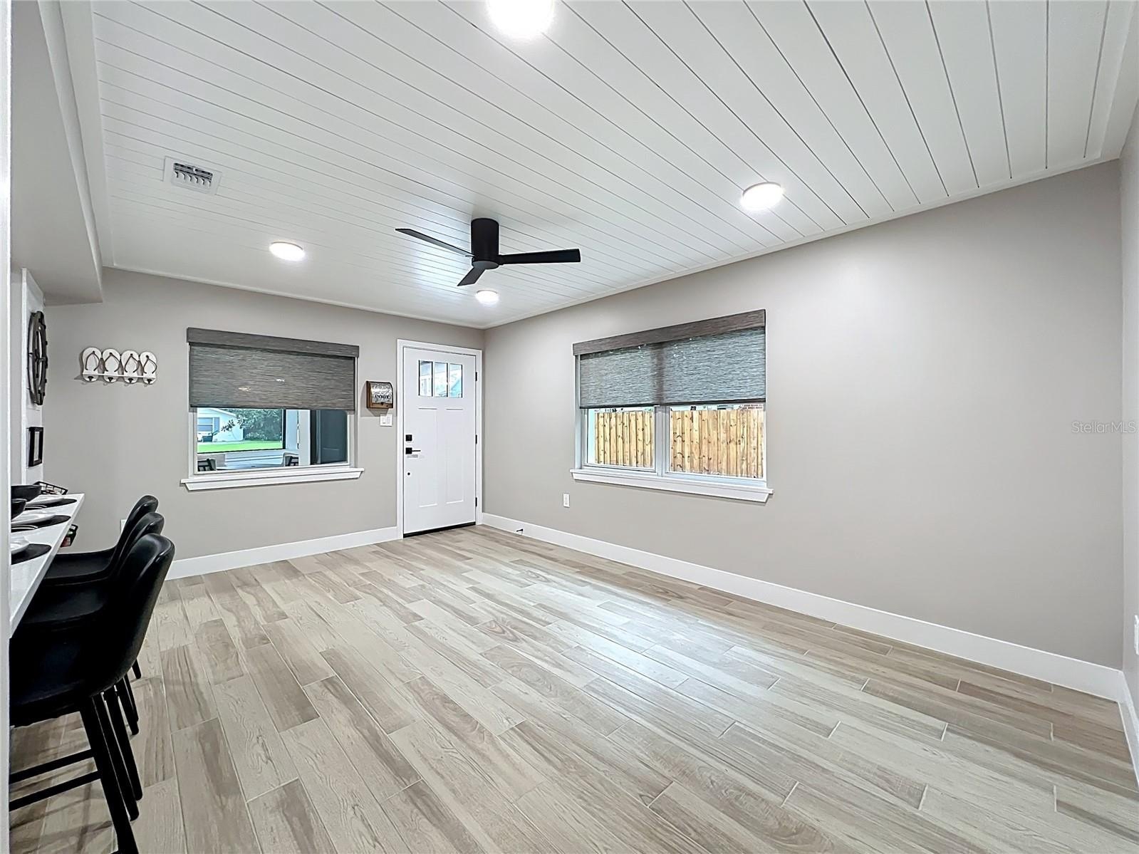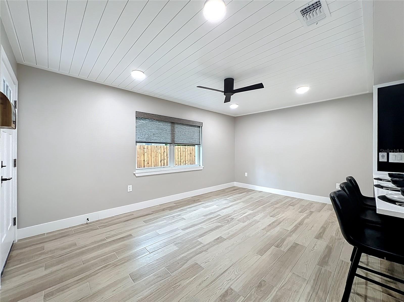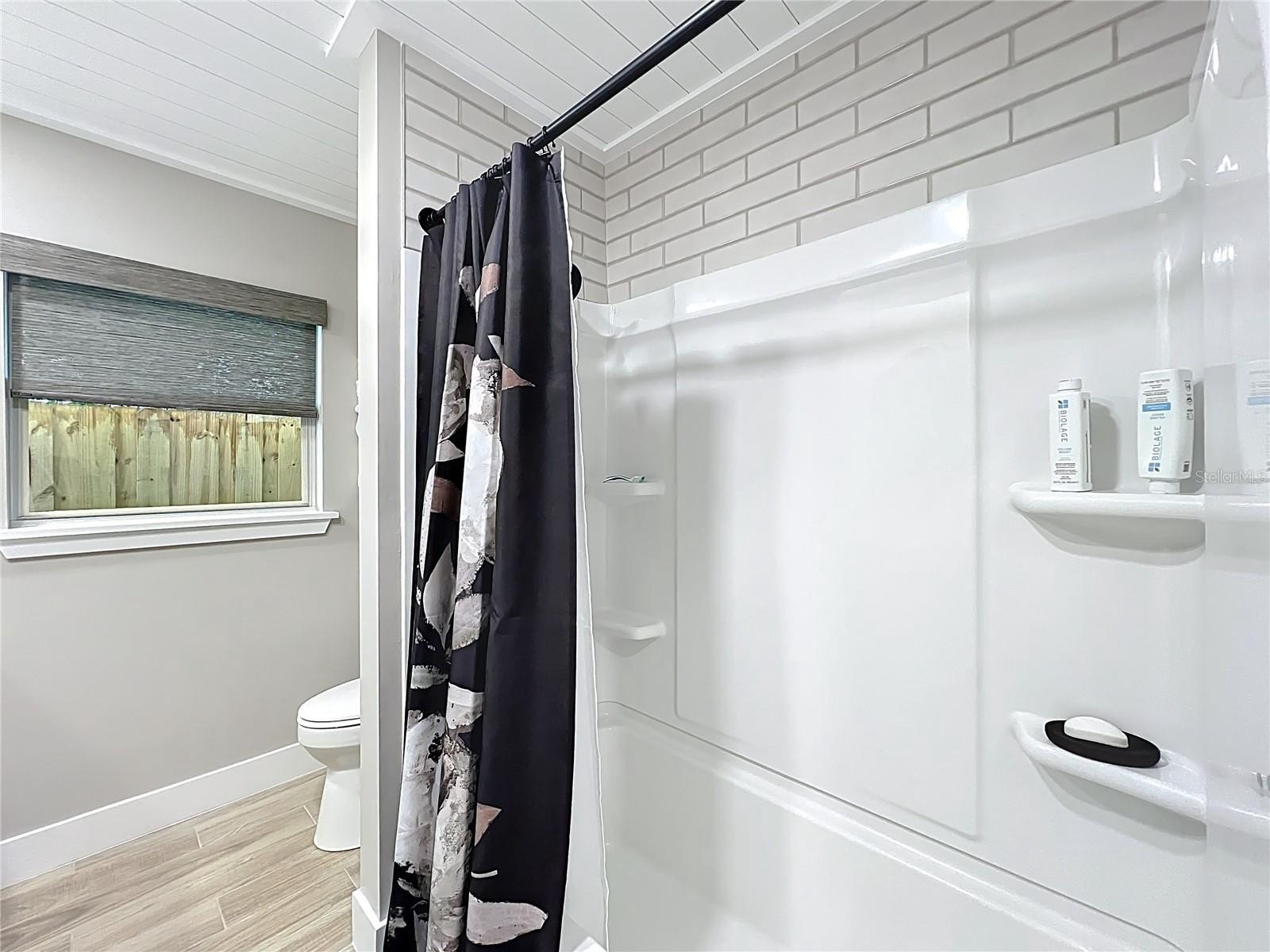 The custom epoxy floors, ceiling fans and a set of table and chairs make the screened in porch area an exceptional place to relax after a long day of work. There are also water closets with new water heaters and additional storage in the screened in porch areas.