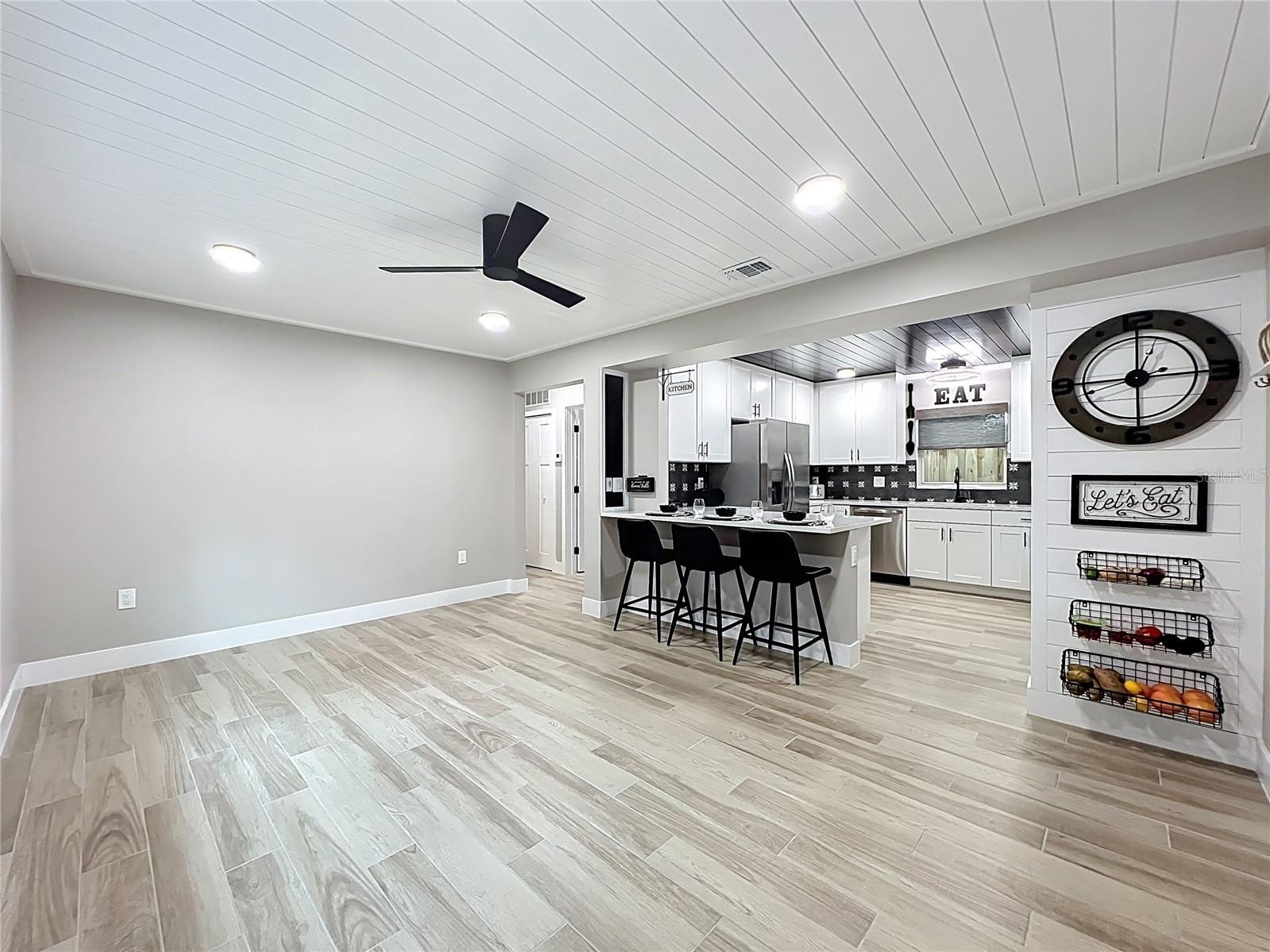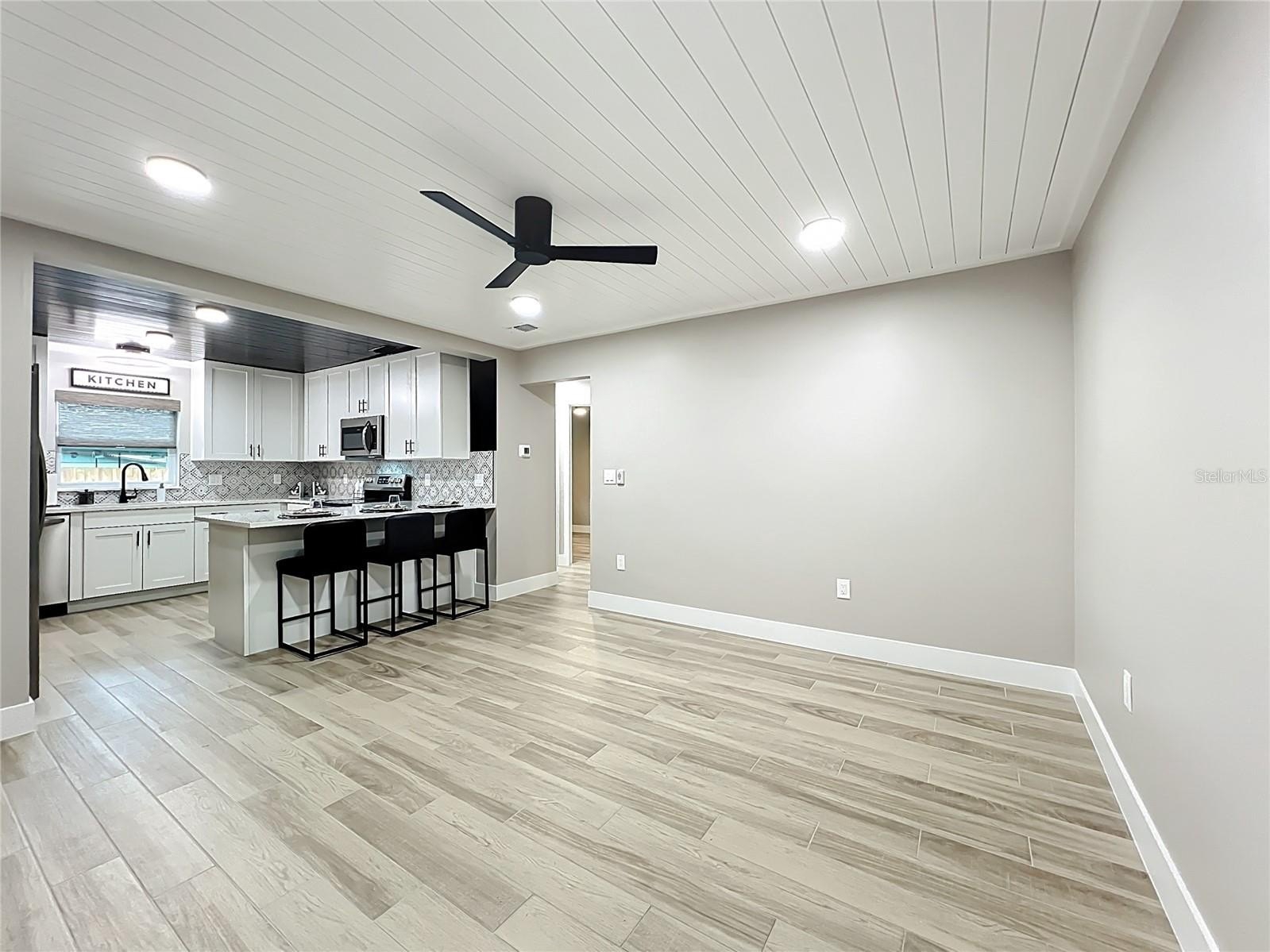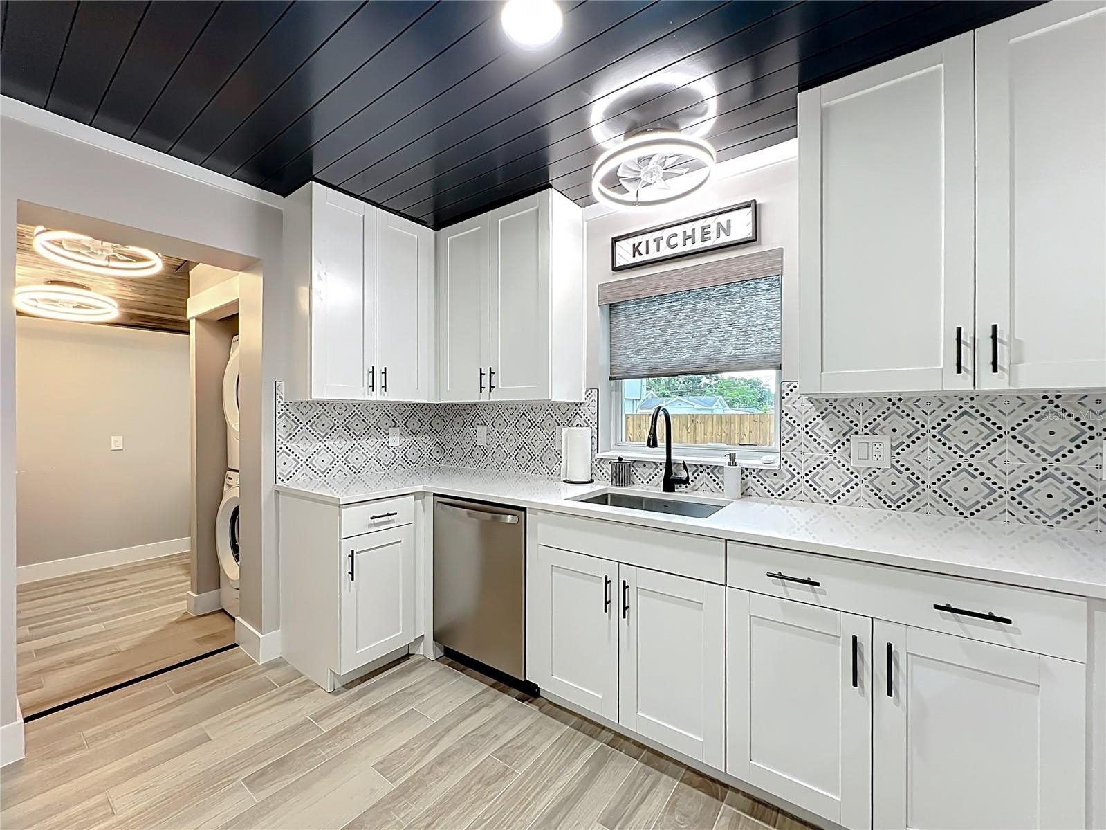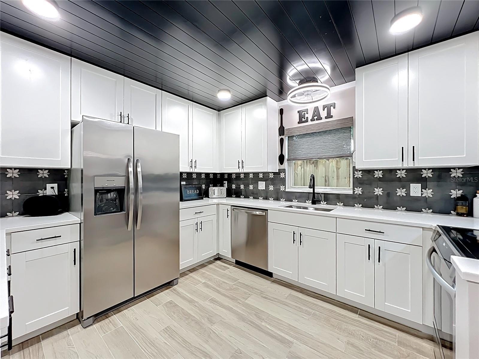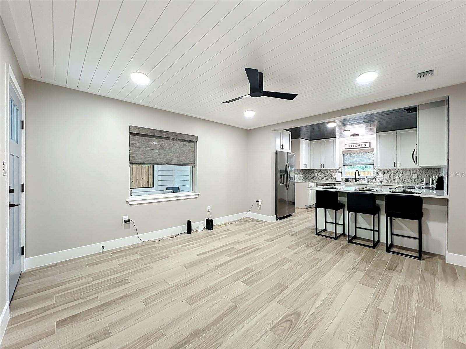 The exterior has cement siding to further enhance the solid block walls of this 1960’s home. New paint, fascia, soffits, gutters and downspouts, along with a new wood privacy fence make this home just “pop”.