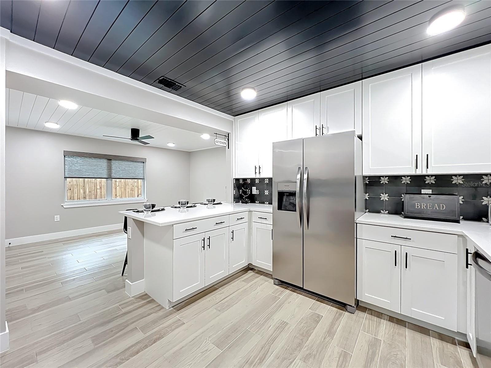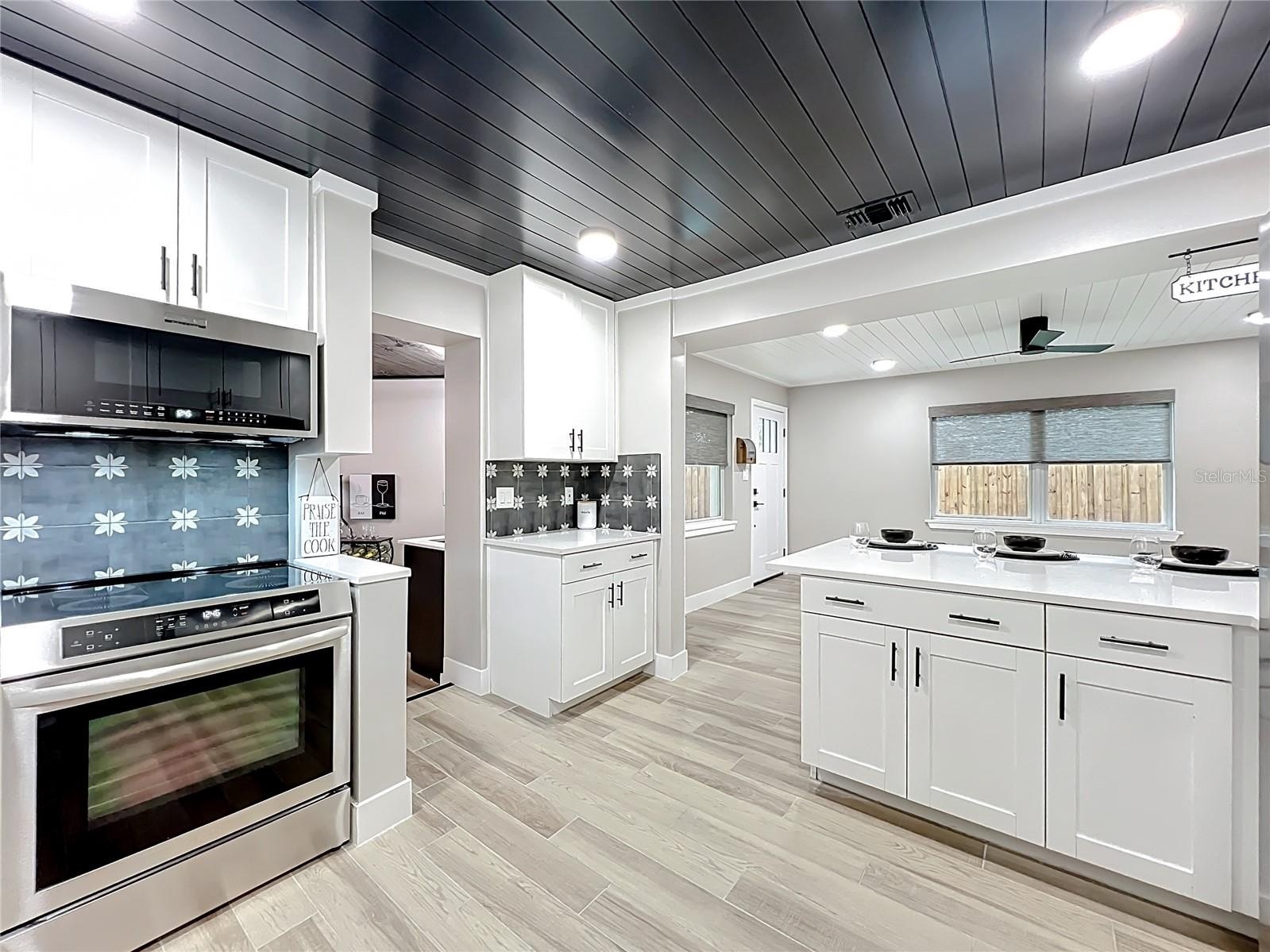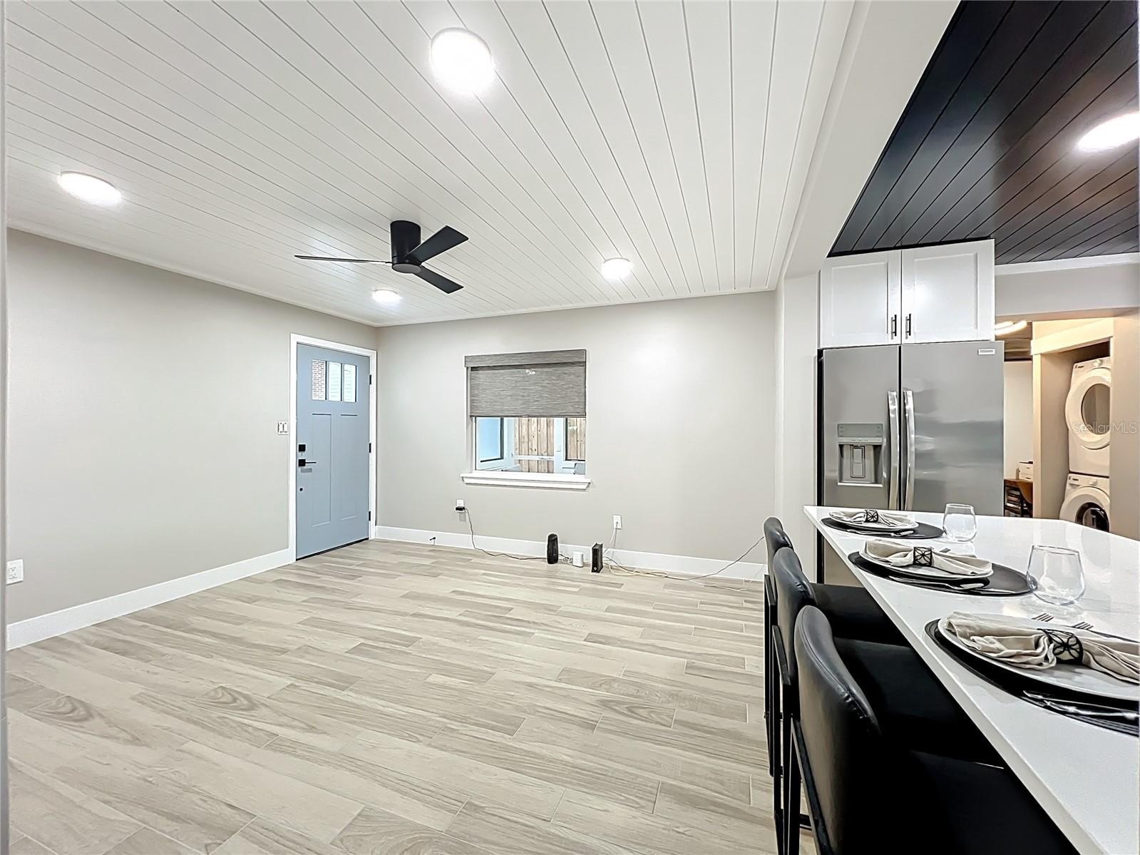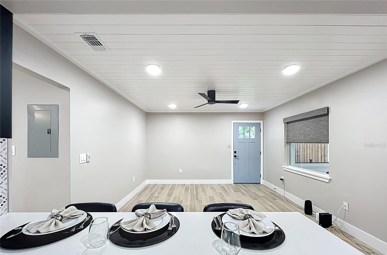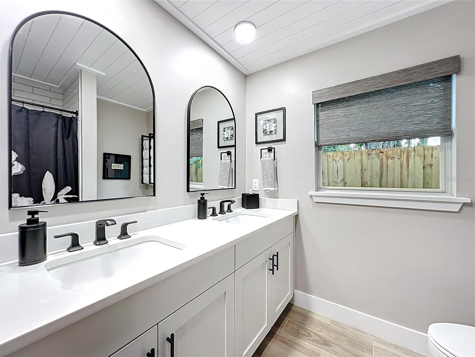 Both kitchens, bathrooms, living rooms, bonus rooms and screened in porches have custom shiplap ceilings.