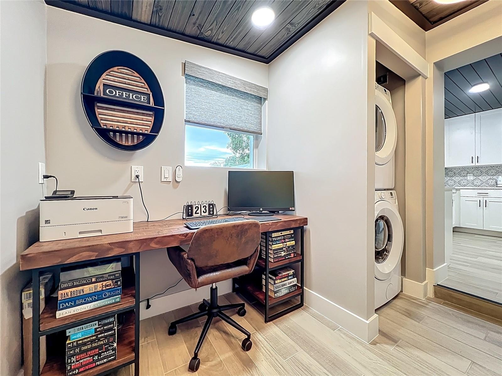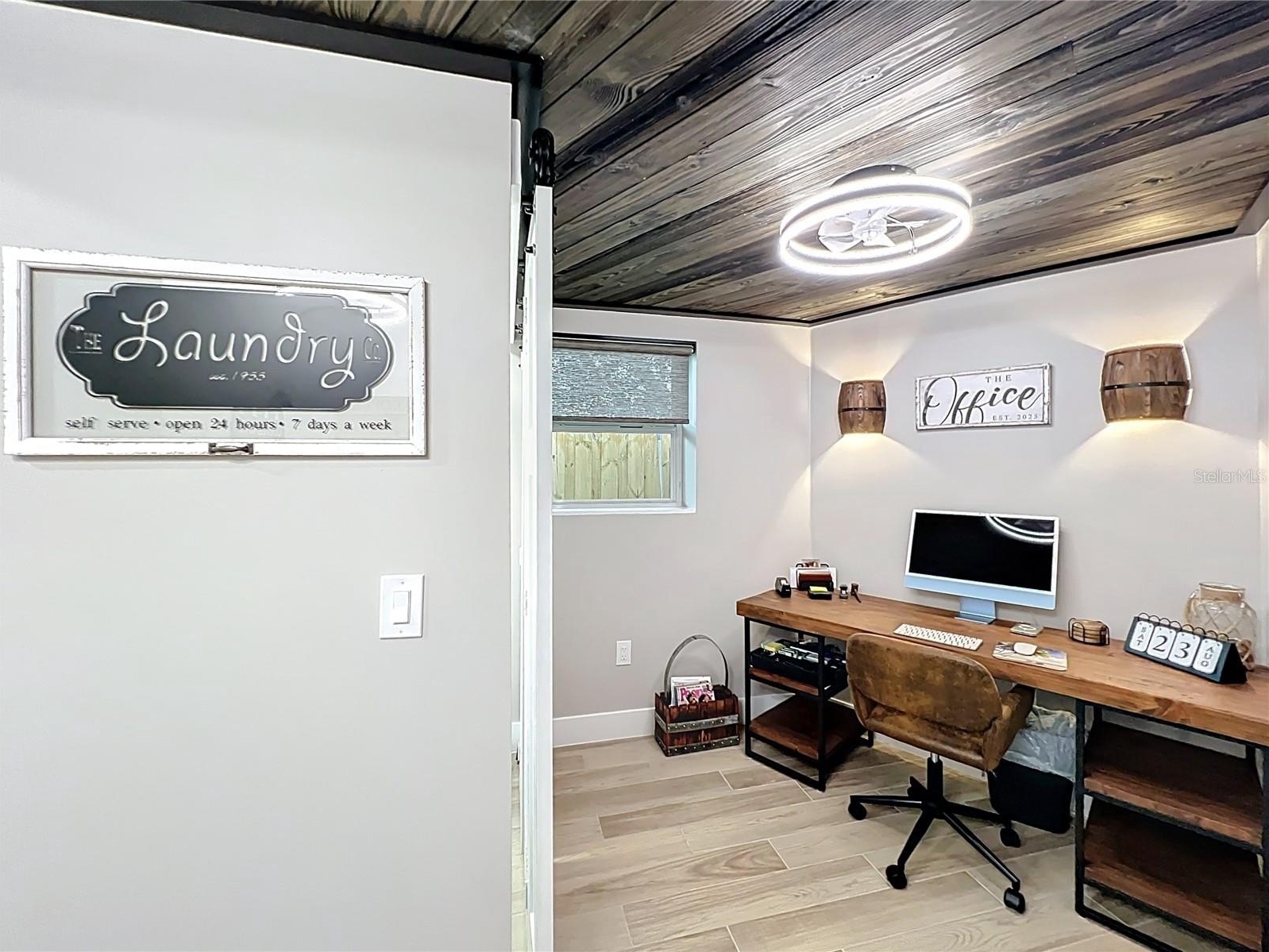 The bonus rooms include a laundry room with washer and dryer, an office and a lounge area.