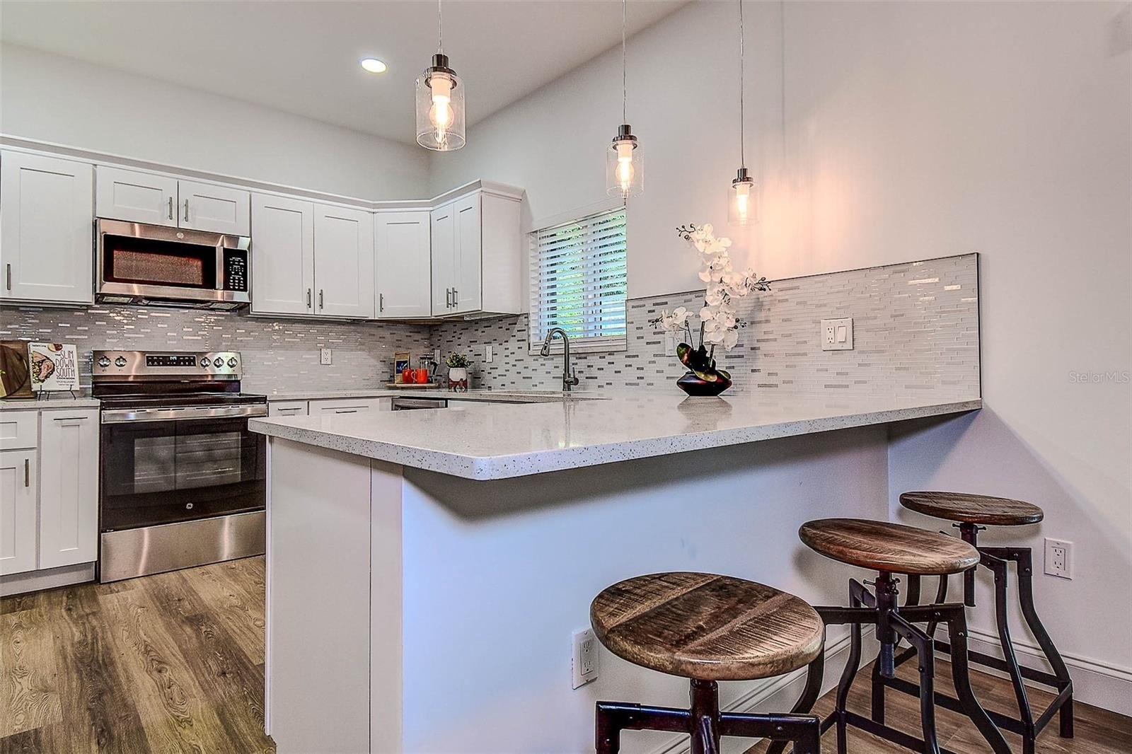 The airy VAULTED CEILINGS make the open layout feel even bigger and cooler, while the kitchen comes loaded with QUARTZ COUNTERTOPS, ALL WOOD CABINETS, and MATCHING STAINLESS STEEL GE APPLIANCES that’s perfect for entertaining (or just spreading out your DoorDash when cooking isn’t happening). High IQ home with SMART door lock and SMART thermostat !