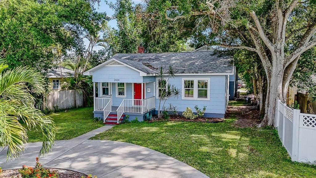 Historic Kenwood District – Artistry & Enchantment Await Experience the charm of the Historic Kenwood District in this move-in ready, updated, and stunning property featuring a 3-bedroom, 1-bathroom main home and a detached 1-bedroom, 1-bathroom guest house/ADU perched above a 2-car rear-entry garage. Nestled on a spacious lot with lush tropical landscaping and fantastic curb appeal, this property is perfect for homeowners seeking versatility and style! Key Highlights: No HOA, No Flood Zone, No Evacuation Zone – peace of mind and freedom! Major Updates: New roof (2015), PGT windows (2015), AC units (2017 & 2021), and full renovations (2015). Ideal Location: Minutes to Downtown St. Pete, Grand Central, The Edge District, I-275, and Gulf Beaches. Main Home: Step inside to find a bright, welcoming space with refinished original hardwood floors and timeless architectural details. The renovated kitchen features granite countertops, upgraded custom cabinetry, recessed lighting, and stainless steel appliances. A spacious family room, cozy dining area, and updated bathroom add to the charm. The interior laundry room off the kitchen is a convenient bonus. Guest House / ADU: Perfect for guests, in-laws, or rental income! This private second-level apartment offers a 1-bedroom, 1-bathroom layout, entry flex room (ideal for a home office), updated kitchen and bath, a dining area, and access to a private patio. The rear apartment has its own electric meter. Garage & Lot: Enjoy a spacious 2-car garage with alley access, plus a generous yard surrounded by tropical landscaping for outdoor enjoyment. This home truly blends historic character with modern upgrades, offering flexibility, style, and unbeatable location. Whether you’re looking for a primary residence, a home with a rental opportunity, or a multi-generational setup, this property has it all! Schedule your private tour today and see why this Historic Kenwood gem is the perfect place to call home!