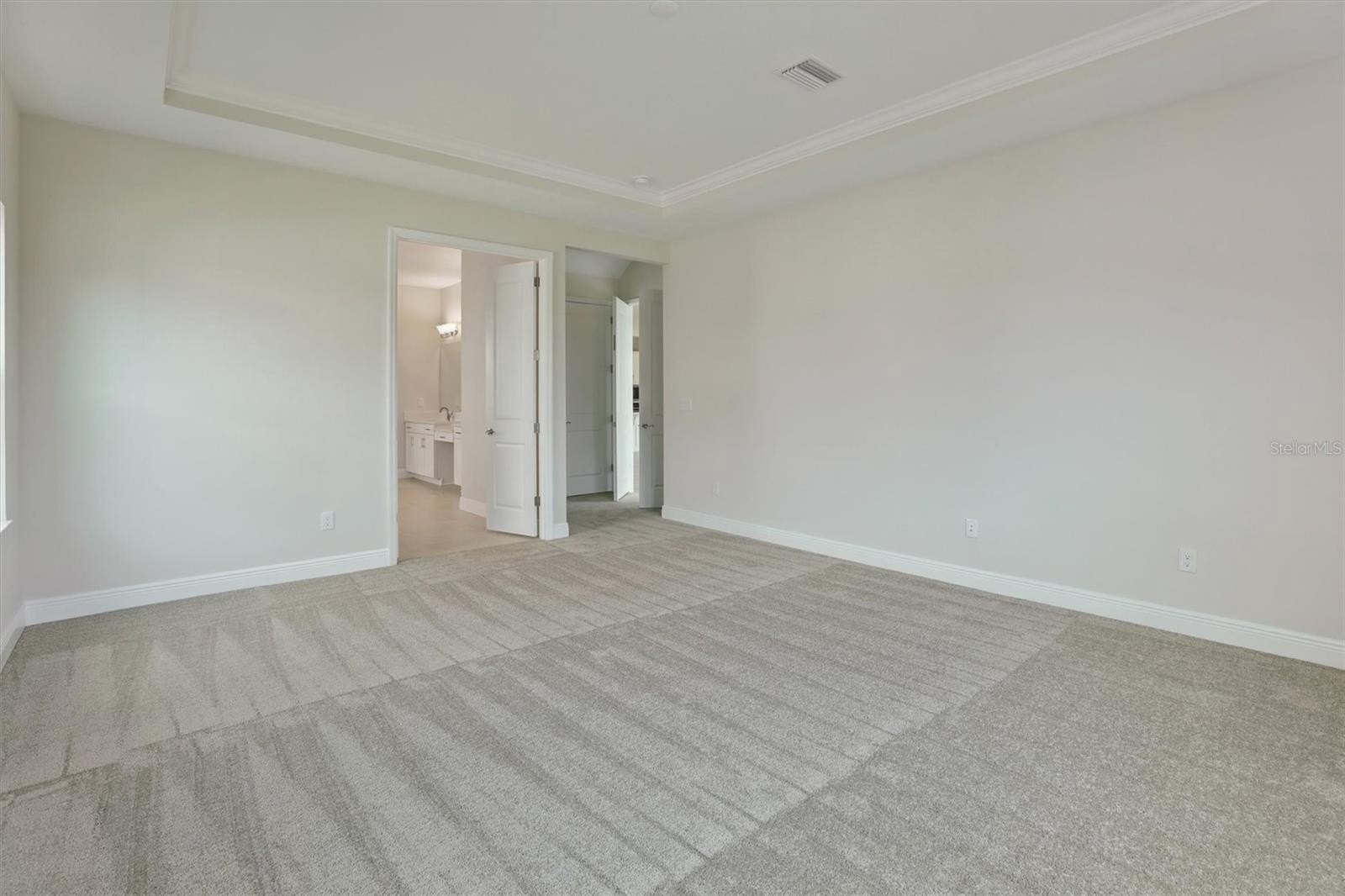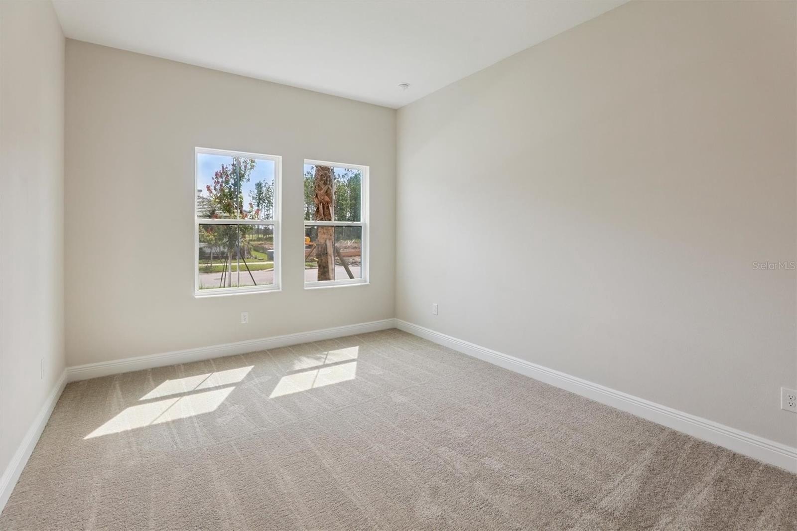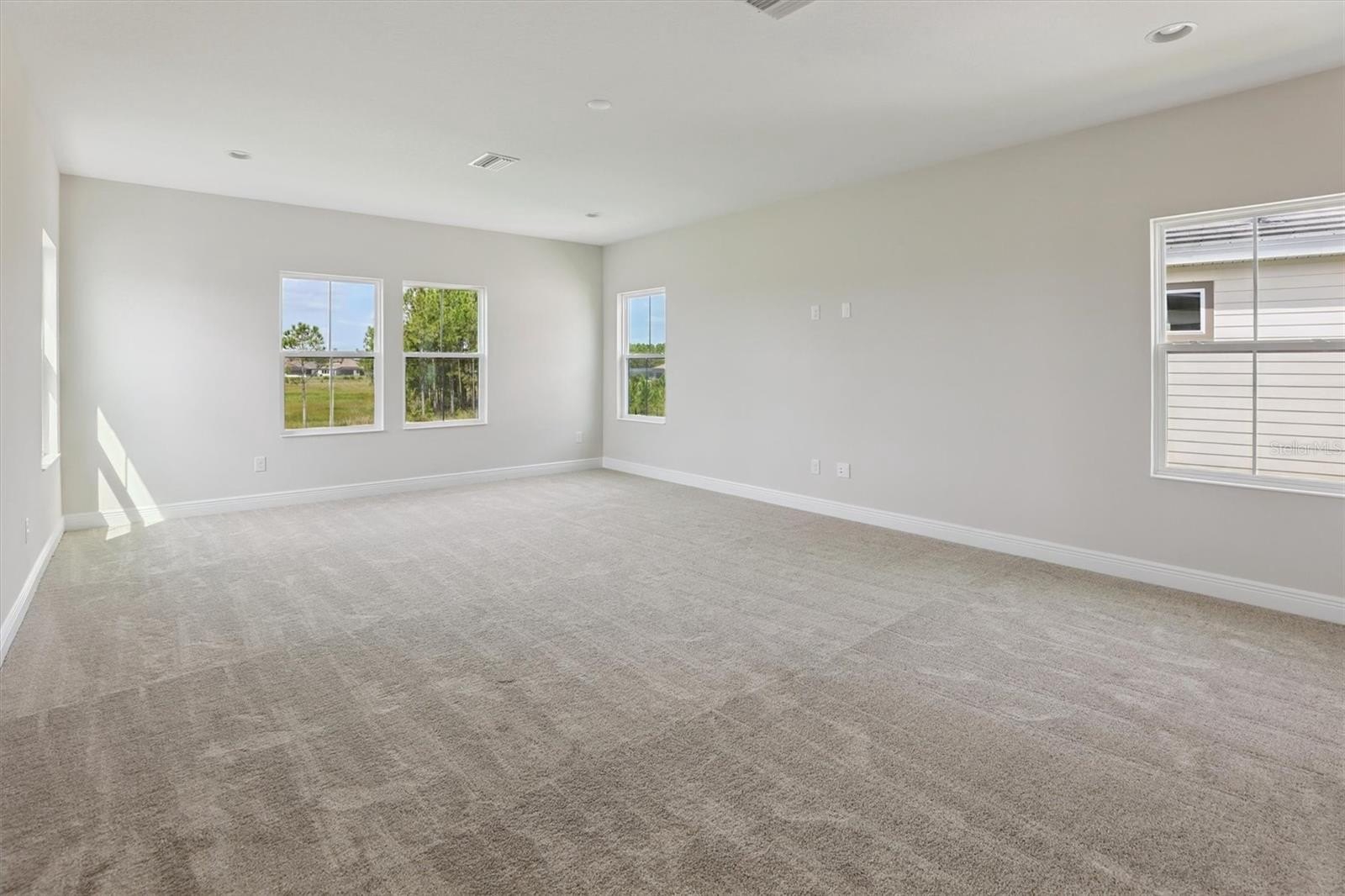 This Cedar Key II home is ready for move-in and features Sonoma Duraform Linen cabinets, Frost Whte MSI Quartz countertops, and Odyssey Renew Birch WLT flooring. The bright, breezy layout flows seamlessly from the foyer into the expansive living spaces. With impressive 12-foot ceilings in the foyer, formal dining room, grand room, and gourmet kitchen, the home offers a strikingly open atmosphere. The lavish downstairs owner's retreat has a double door entry, spacious walk-in closets, and a luxurious owner's bath. Additionally, the home includes ample secondary bedrooms, a generously sized laundry room, and expansive outdoor living space with a covered lanai. Upstairs, you'll find an extended bonus room, an extra bedroom, and a bath.