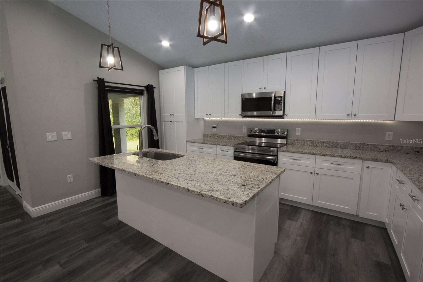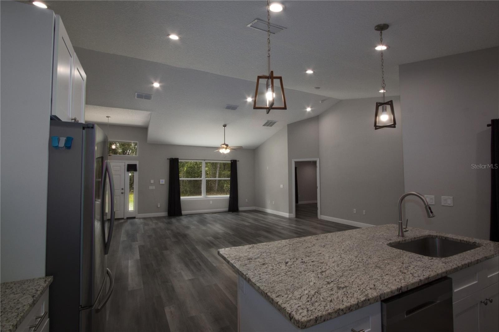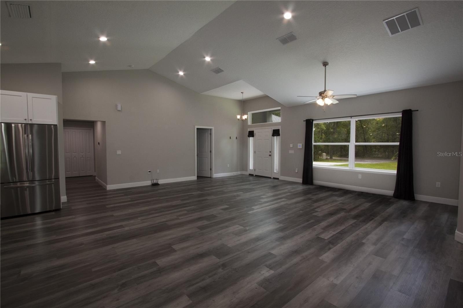 Stunning 4 bedroom Custom Smart Home on Private Wooded 1 1/4 Acre Lot Between Orlando and Daytona. Nestled in a serene, wooded area, this meticulously designed 4-bedroom, 2-bathroom custom smart home offers the perfect blend of luxury, technology, and comfort. Located on a spacious 1 1/4 acre lot, this home is ideal for those who crave privacy and modern convenience without sacrificing accessibility. Situated conveniently close to I-4 between Daytona Beach and Orlando, you’ll enjoy easy access to both the beach and world-class theme parks, all while living in your private oasis. Key Features: Custom Smart Home Technology: Effortlessly control lighting, air conditioning, and security cameras with your voice, computer, or any smart device. The house is fully equipped with cutting-edge technology for maximum comfort and security. High-Speed Connectivity: Upgraded For The Future With CAT 6 wiring throughout the home for blazing-fast, hardwired internet — up to 10Gb, perfect for gamers, remote professionals, or streaming households. Security & Peace of Mind: This home comes with a Ring security system featuring 4 high-definition cameras, providing you with 24/7 surveillance. Additionally, the electric is run underground to help reduce storm related outages Whole Home Water Softener: To prevent issues caused by hard water Spacious & Open Living Areas: The expansive great room with cathedral ceilings creates an airy and inviting atmosphere. Perfect for gatherings, relaxation, or simply enjoying your surroundings. Chef’s Dream Kitchen: The large kitchen boasts ample cabinet and counter space, as well as plenty of outlets to accommodate all of your appliances. Whether you’re cooking a family dinner or hosting guests, this kitchen is sure to impress.
