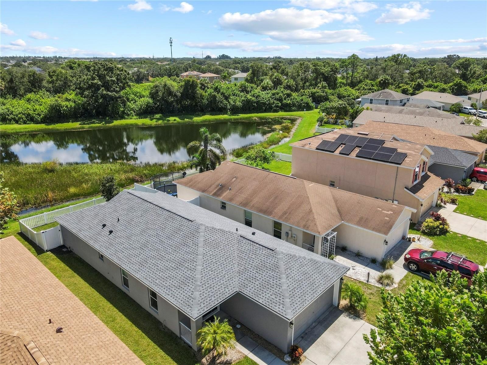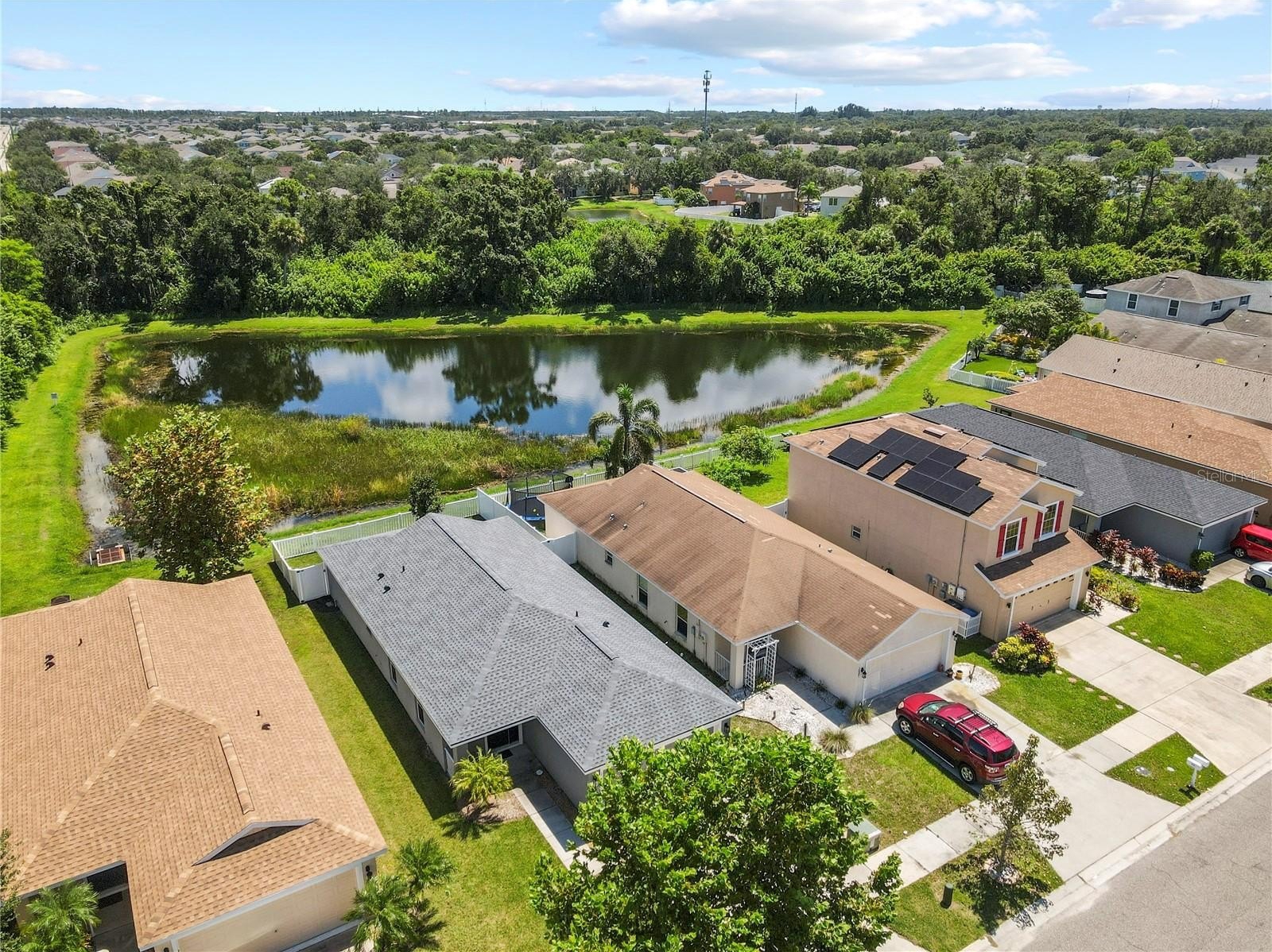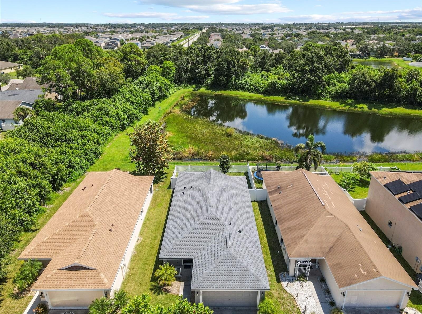 Beautiful Home with Lake & Preserve Views in a Flood Zone X500 with low HOA with no CDD fees—a rare find! Welcome to this charming 3-bedroom, 2-bathroom single-family home in a peaceful Ruskin community. Thoughtfully updated and move-in ready, this home offers modern finishes and tranquil surroundings. Inside, you’ll find an inviting open layout with luxury vinyl plank flooring installed (2021/2022) and a stylish kitchen featuring granite countertops including modern appliances. The spacious living and dining areas flow seamlessly, creating the perfect setting for everyday living or entertaining. The primary suite and additional bedrooms provide comfort and flexibility for family or guests. Recent updates include a brand-new roof (2025) with a transferable warranty, HVAC (2017), Hot Water Heater (2017), and exterior of home painted (2021). Hurricane shutters are also included and stored in the garage for peace of mind. Step outside to your private backyard patio overlooking a serene lake and preserve, with no backyard neighbors. This is the ideal space to relax and enjoy the natural beauty. Located near E.G. Simmons Park, Little Manatee River State Park, Bahia Beach Nature Preserve and waterfront dining at Sunset Grill. This home also offers quick access to I-75 and US 41 for easy commutes to Tampa, St. Pete, and Sarasota / Bradenton. Don’t miss your chance to call this Ruskin retreat your new home. Schedule your showing today!