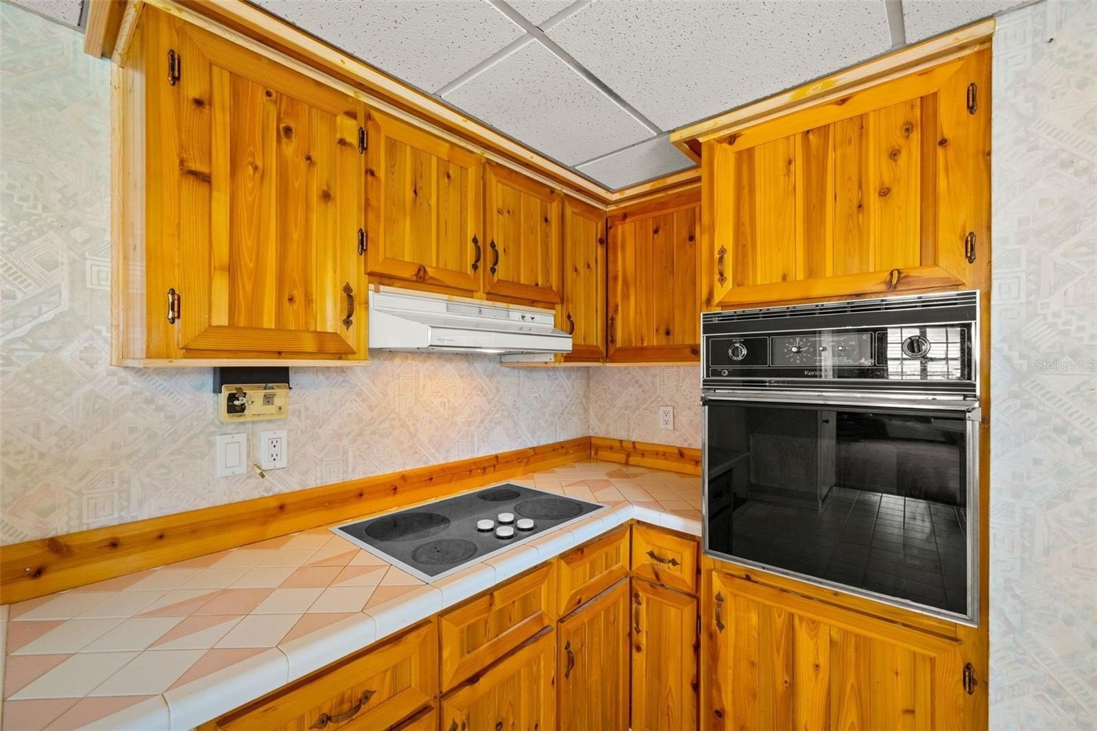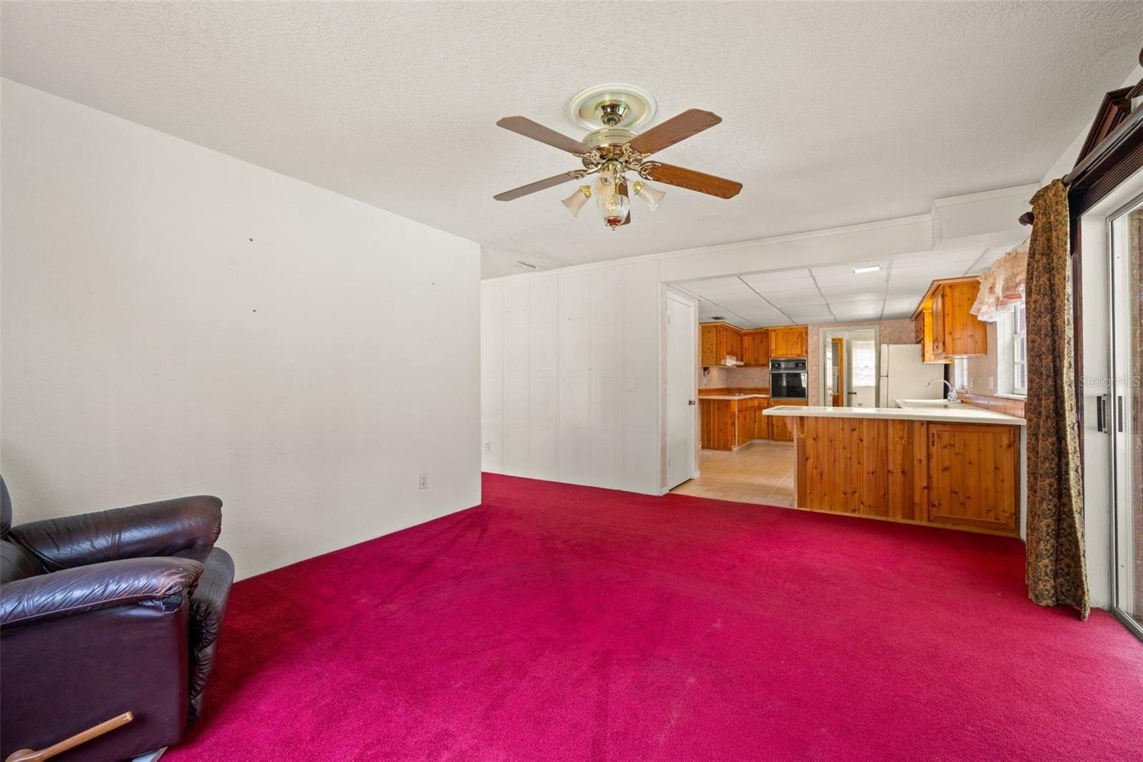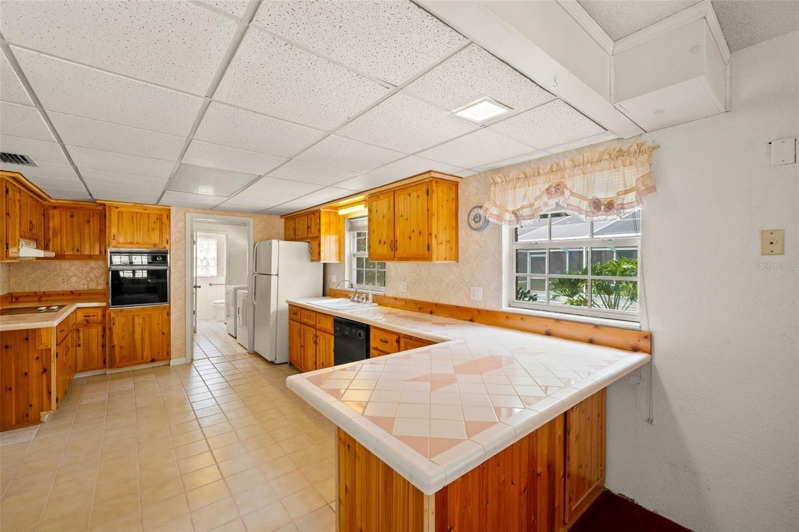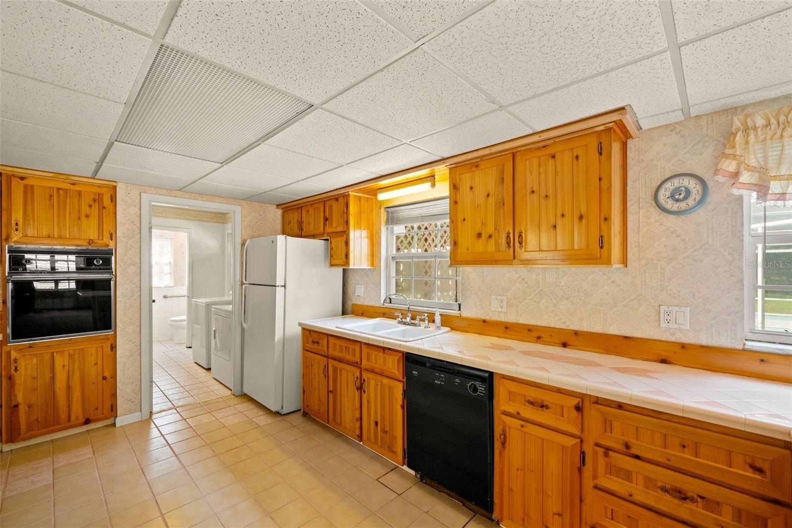 Welcome to this inviting two-story home featuring 3 bedrooms, 2 bathrooms, and a sparkling pool, perfect for Florida living. The main floor offers a functional layout with a bright kitchen boasting wood cabinetry, tile flooring, tiled countertops, and ample storage. The kitchen opens to the living room, where you’ll find cozy carpeting, a ceiling fan, and sliding glass doors leading to the screened lanai and pool area.