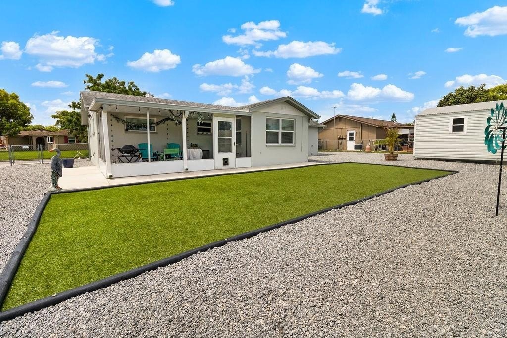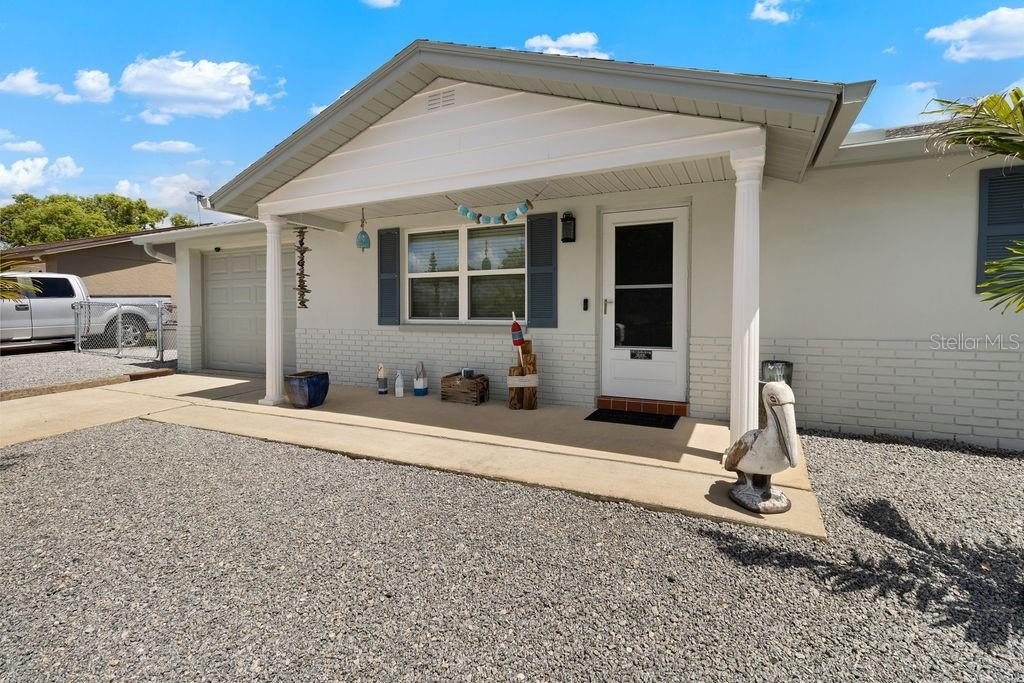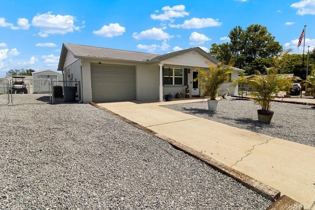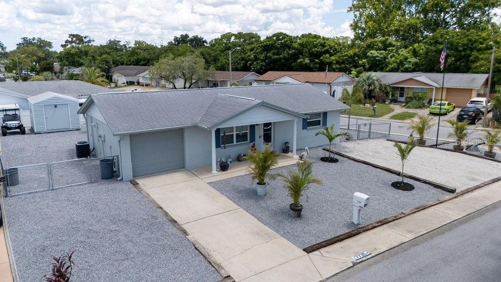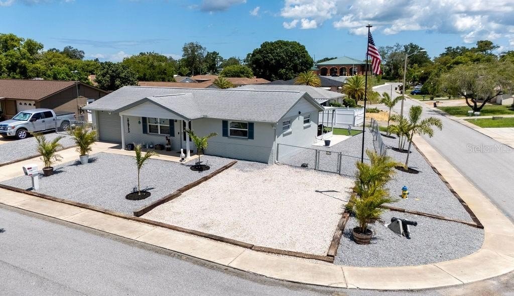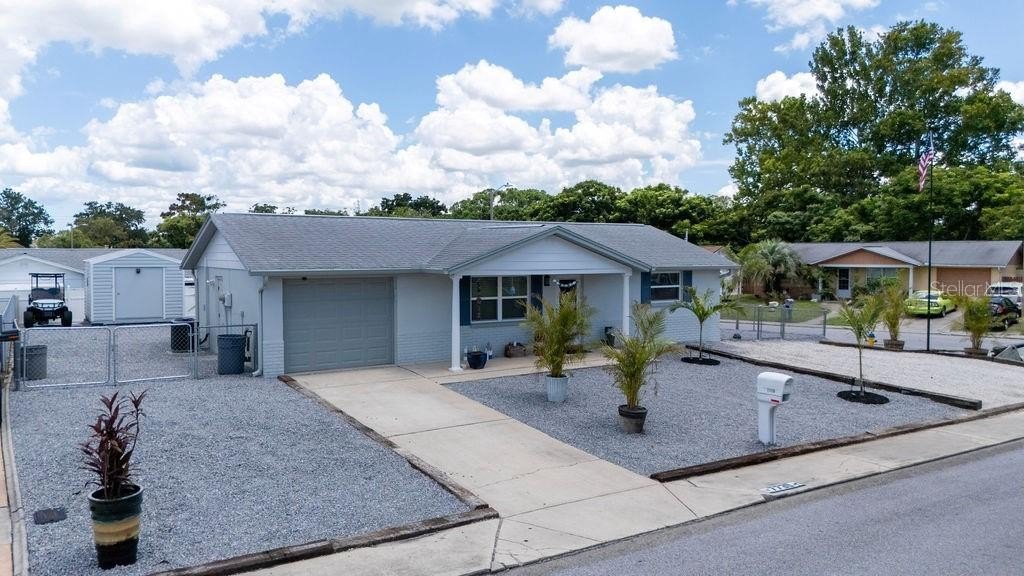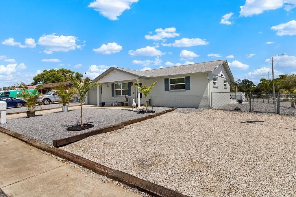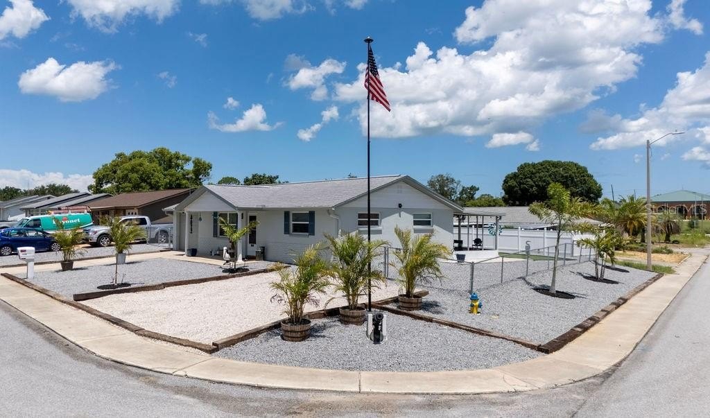 Motivated seller. Charming and move-in ready, this 2-bedroom, 1-bathroom single-family home sits on a beautifully landscaped corner lot with new palm trees and low-maintenance granite rock accents. Located in a peaceful, well-established neighborhood with no HOA, this property offers both privacy and freedom. The freshly painted exterior adds great curb appeal, while the interior provides cozy, functional living space—perfect for anyone seeking a Florida lifestyle without the upkeep. You'll also enjoy plenty of off-street parking, making it easy to accommodate guests or multiple vehicles. Conveniently close to parks, shopping, and dining, this gem combines comfort, value, and location. Don’t miss your opportunity!