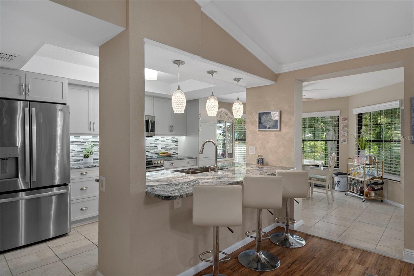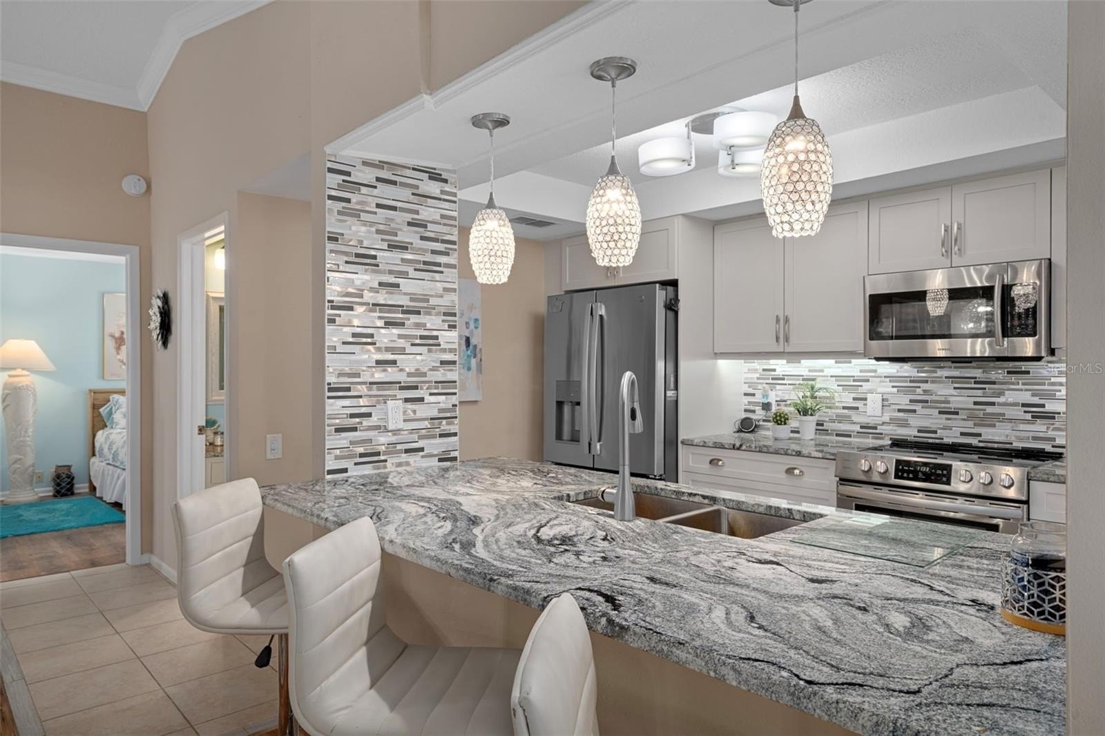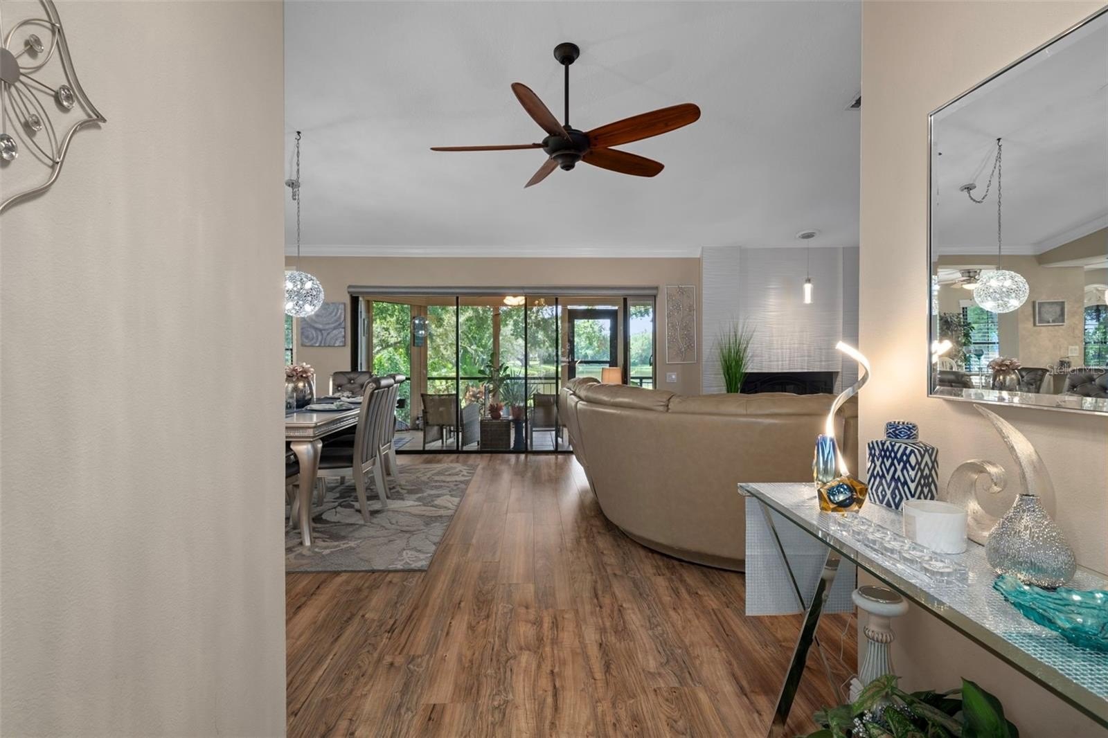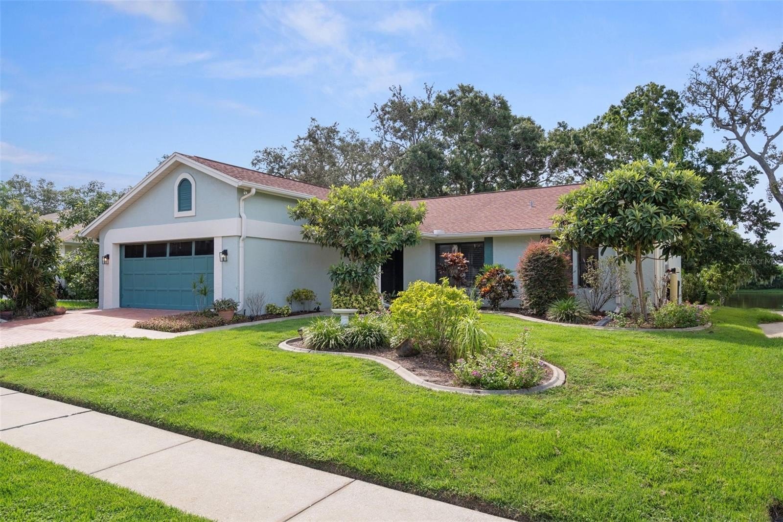 Welcome to Gulf Trace – one of the most sought-after communities in the area! This beautifully updated 3-bedroom, 2-bath, 2-car garage 1,662 sq/ft home is the Florida dream you've been waiting for and best of all, no flood insurance required! High & dry! From the moment you arrive, you'll be impressed by the lush landscaping, great curb appeal, and breathtaking pond and fountain views that create a serene, resort-like atmosphere right in your own backyard. Step through the stately caged front entry into a warm and inviting foyer that opens to a bright and spacious open-concept living area. The kitchen is a true showstopper – fully remodeled with shaker-style cabinets, granite countertops, a stylish backsplash, stainless steel appliances, and a beautiful breakfast bar with additional seating, perfect for entertaining. AC (2016) Water Heater (2016) The living room features a custom-remodeled fireplace, creating a cozy yet modern space to relax. The large primary suite is a peaceful retreat, complete with private patio access and stunning pond views. Enjoy your spa-like en-suite bath with dual granite vanities, a makeup area, and a walk-in shower. The guest bathroom is equally impressive with updated finishes, a tub/shower combo, and sleek glass sliding doors. Updated lightning! Your own laundry room with extra storage! Updated sprinkler system! But the true highlight of this home? The views. Nearly every room captures the beauty of the backyard oasis. Step outside to your screened-in lanai, perfect for morning coffee or evening gatherings. Hurricane shutters are already installed across the back patio for added peace of mind. The professionally designed backyard features elegant pavers that lead to your tranquil pond view – a perfect space for relaxing, entertaining, or simply soaking in the Florida lifestyle. You can be at the gulf of America in a few short minutes drive, 3 beautiful parks with a walking/bike trail, and a dog park. Don't miss your chance to own this incredible home in Gulf Trace – schedule your private showing today!