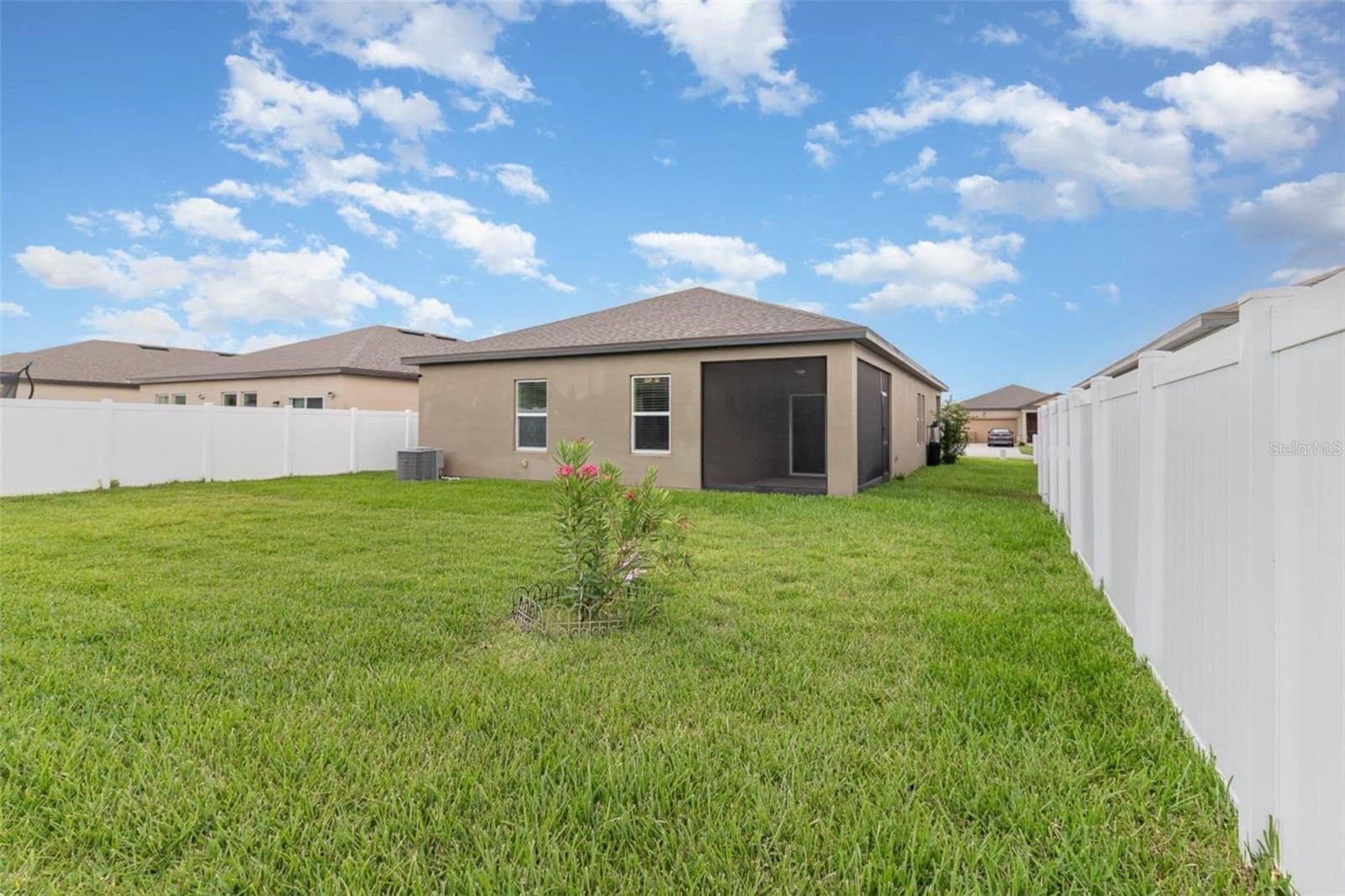 The kitchen features an upgraded backsplash, stainless steel appliances, and a center island that opens to the dining and living areas—perfect for everyday living or casual get-togethers. The primary suite includes a walk-in closet and en-suite bath with double sinks and a walk-in shower, while the two additional bedrooms offer flexibility for guests, family, or a home office. Step outside to enjoy the screened-in covered patio, ideal for relaxing outdoors without the bugs. The backyard is open and ready for whatever you envision—gardening, play, or entertaining. Located in a quiet community with no CDD, low HOA fees, and access to great amenities like a pool, clubhouse, fitness center, and playground. Just minutes from Lake Nona, Medical City, and major highways, this home offers comfort and convenience in one of Central Florida’s fastest-growing areas.