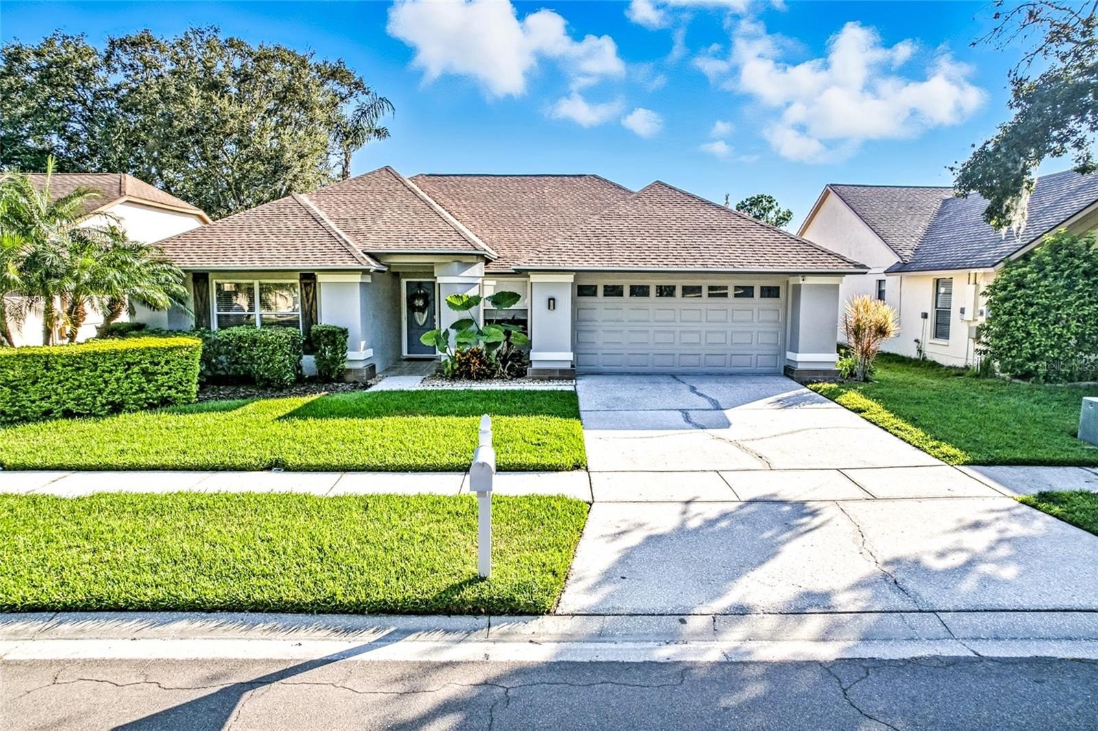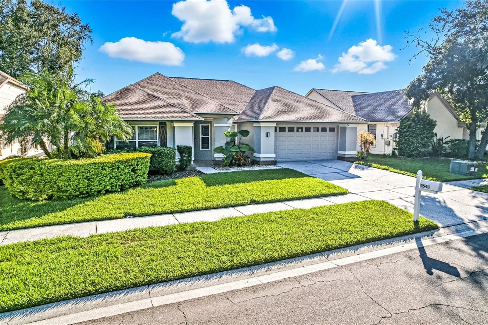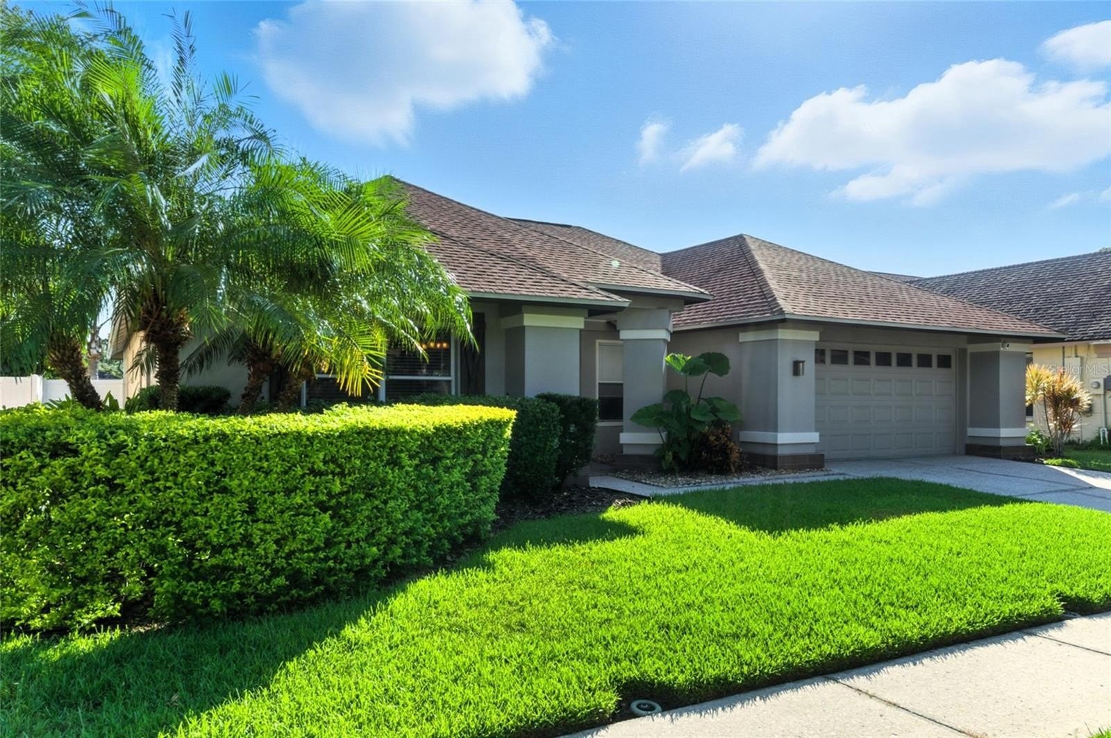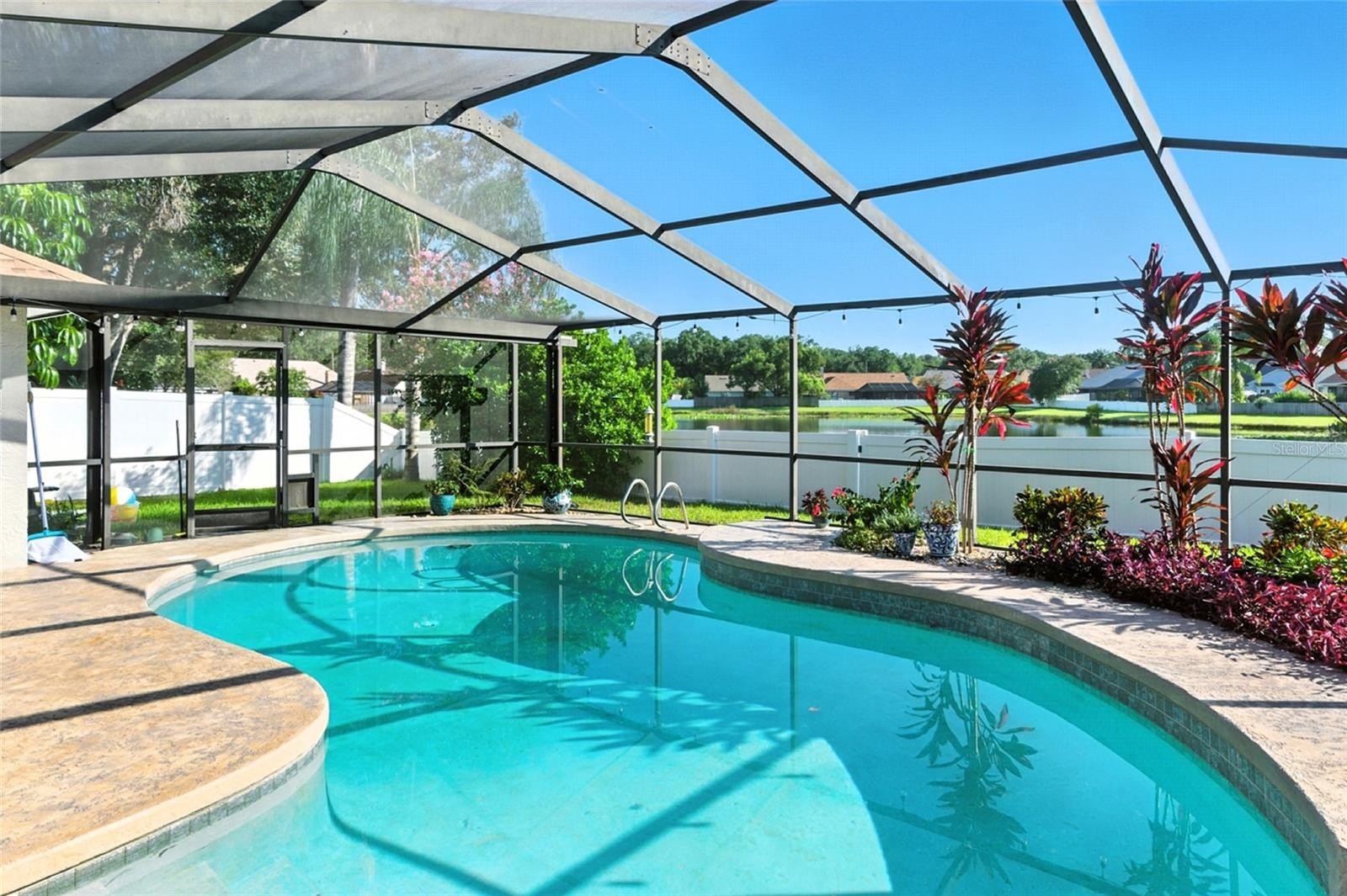 Beautifully Updated Pool Home with Serene Pond Views in Pebble Creek. Step into this meticulously maintained 4-bedroom, 2-bathroom residence featuring a spacious 2-car garage and a sparkling refinished pool—all nestled on a quiet street with a pond view and no rear neighbors. Open-concept layout with high ceilings & a wood burning fireplace in the living room. Gourmet kitchen with granite countertops, maple cabinetry, center island, and a cozy eat-in breakfast nook. Primary bath with a glass block walk-in shower, massaging jets, and modern vanities. No carpet: Porcelain tile in main living areas, hardwood in the primary & one of the bedrooms & luxury vinyl plank in the other 2 bedrooms. Peaceful pond views from the pool that offers a tranquil natural backdrop. Updates: 2025-Pool Pump; 2024-Roof, Water Heater & Dishwasher; 2021-Electric Panel, Garage Door, Pool: Resurfaced, Tile & Screening, Range/Oven; 2020-AC. Pebble Creek has no CDD and a super low HOA fee of $650 per year. Community amenities: pool, tennis courts, pickleball courts, basketball court & playground. Easy access & just minutes to I-75, I-275, Wiregrass, premium outlets, restaurants & medical facilities. Close proximity to the University of South Florida, VA Hospital, Moffitt Cancer Center and downtown Tampa with all it has to offer.